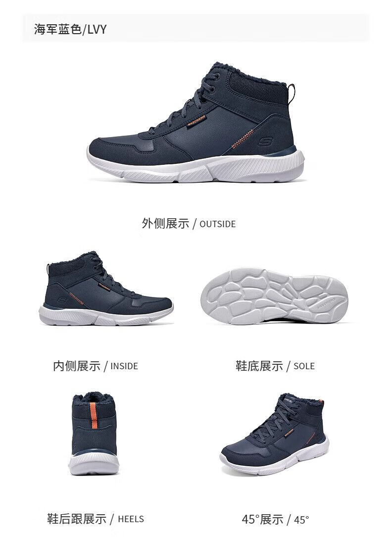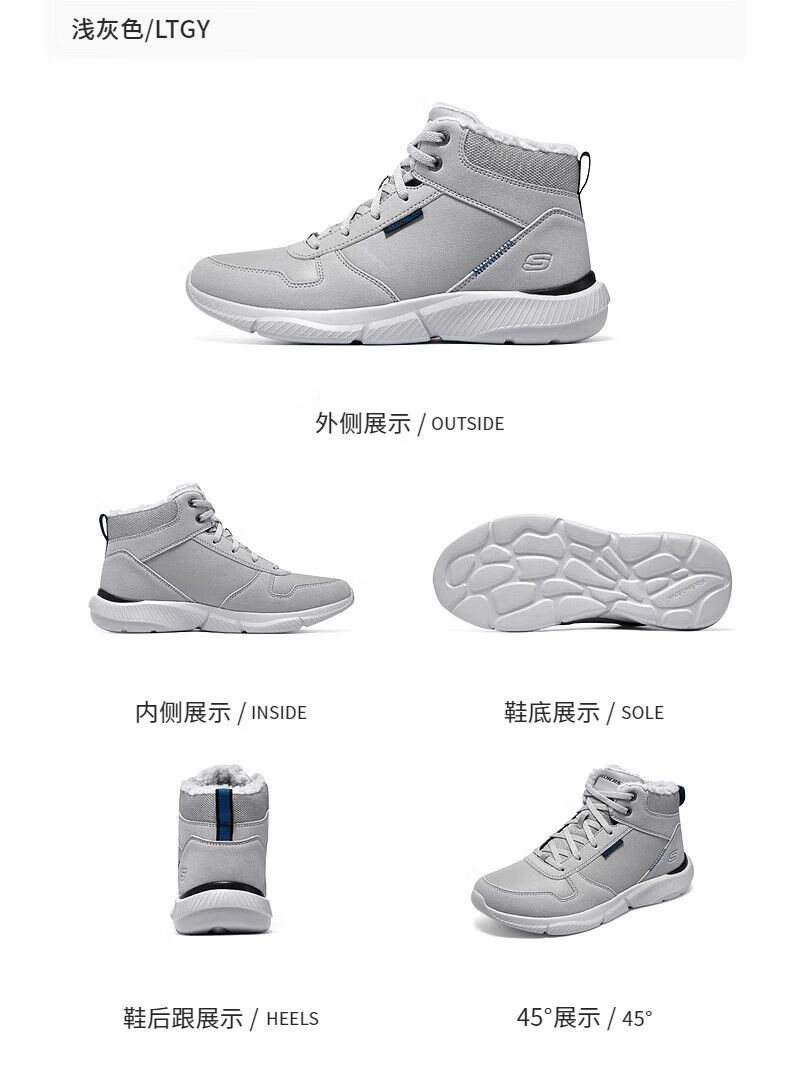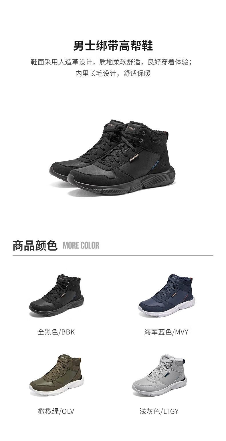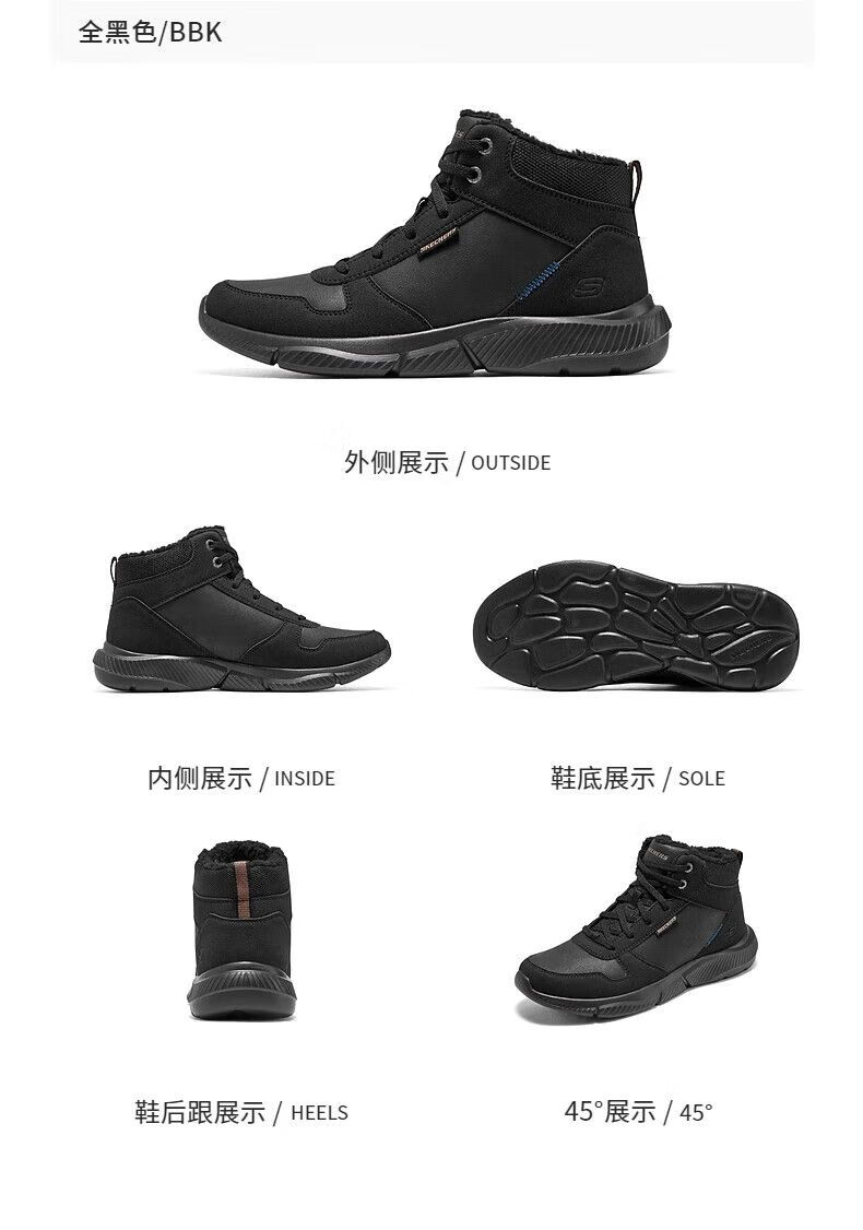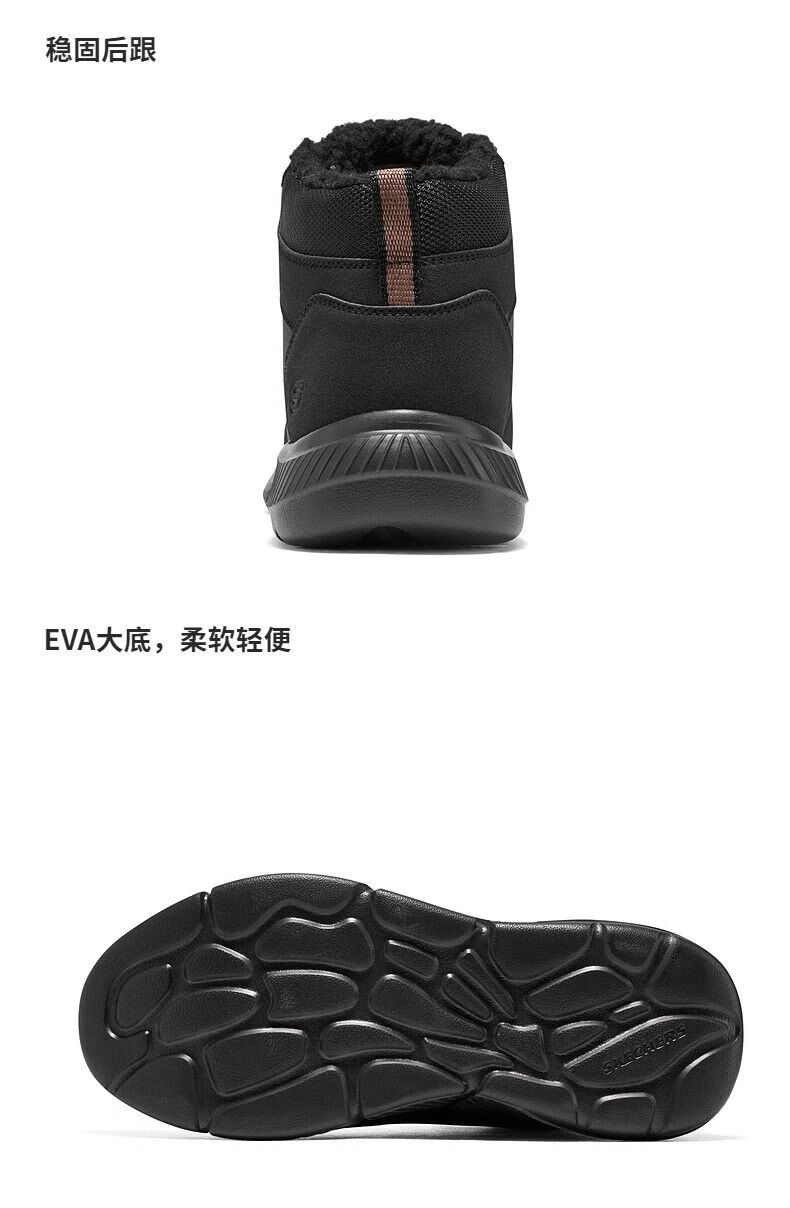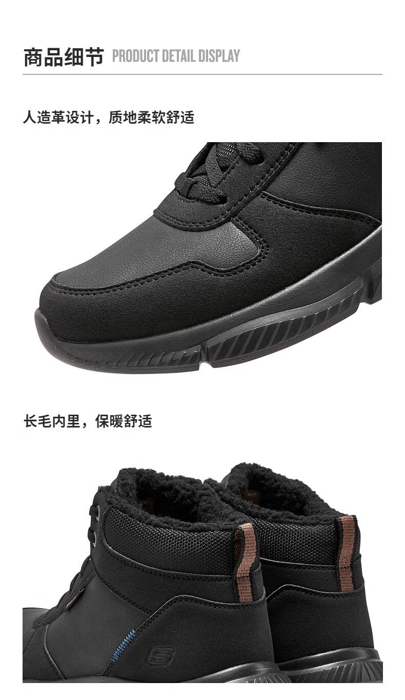 斯凯奇(Skechers)秋季新款男士绑带高帮鞋舒适保暖加绒柔软舒适鞋子 全黑色/BBK 42