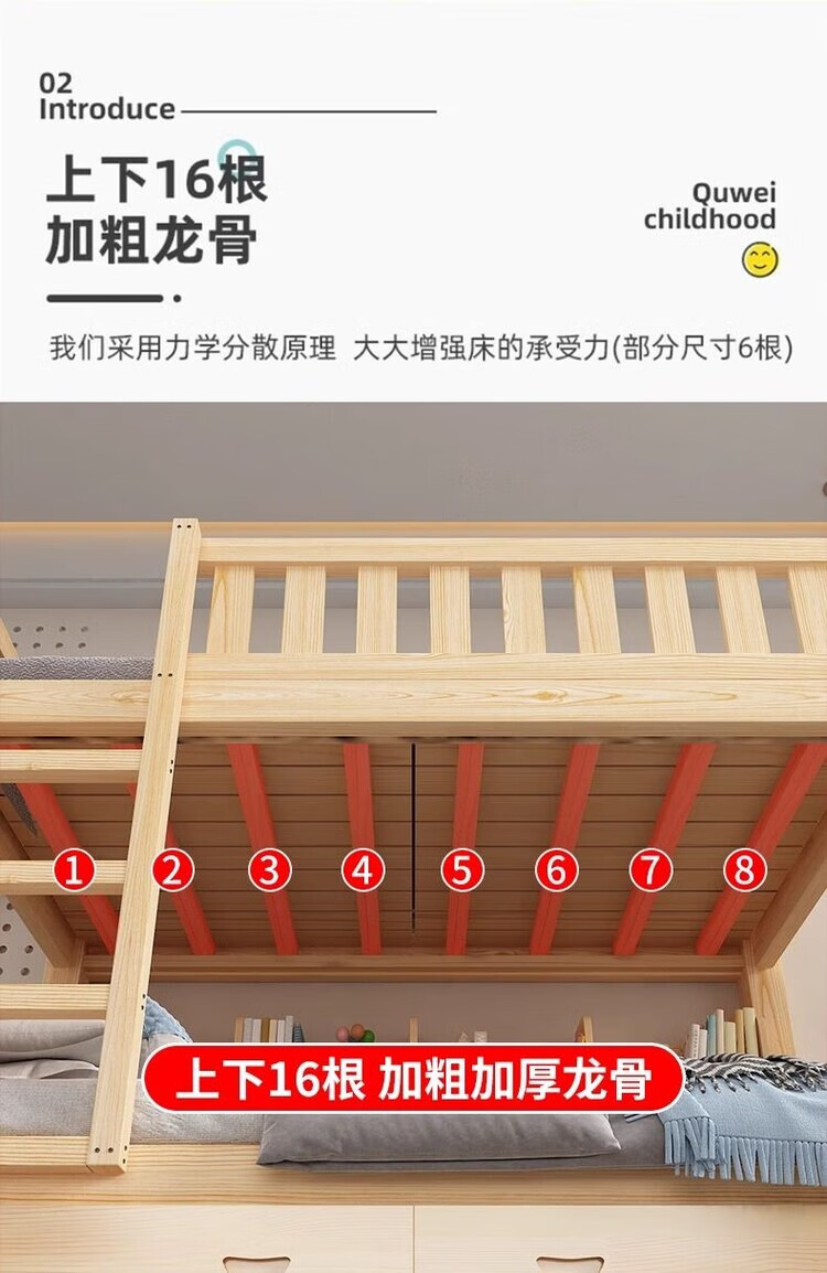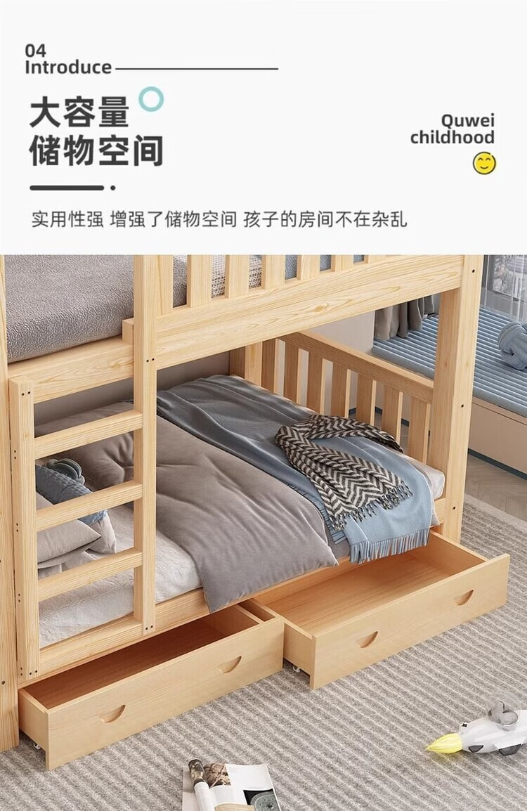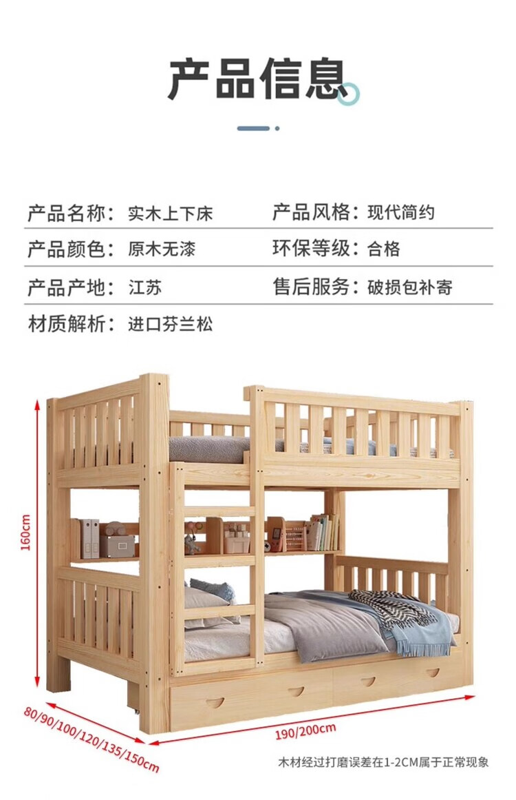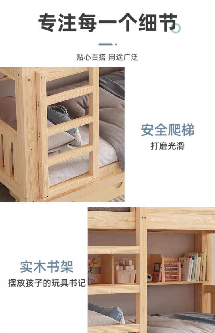 欣慕雅实木双层床成人两层高低床双人床小户型儿童床上下铺床二层子母床 直梯款上下床+抽屉【包上楼】 800mm*1900mm