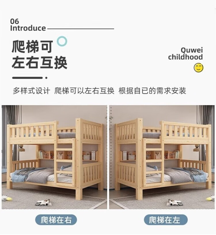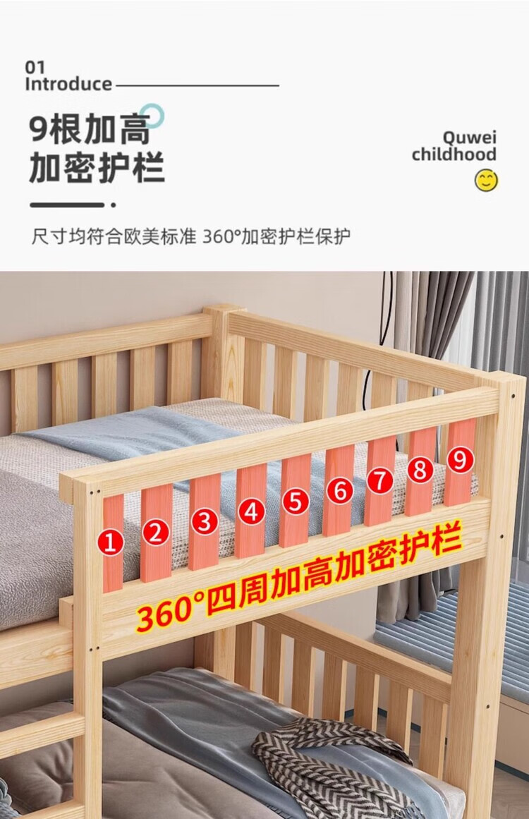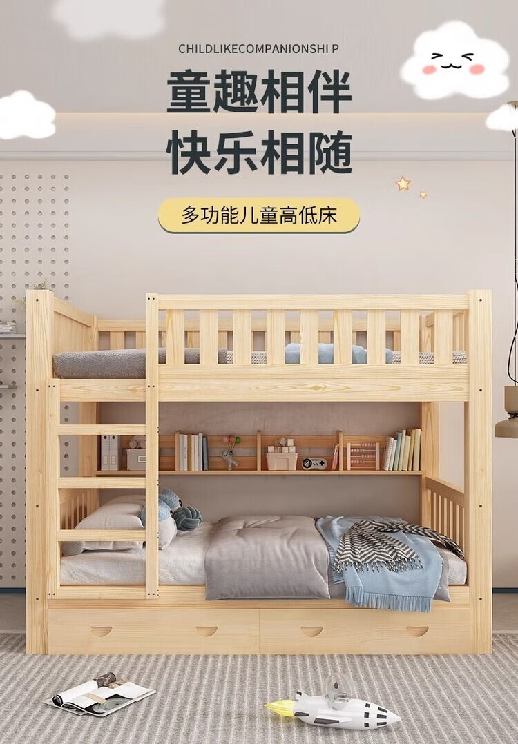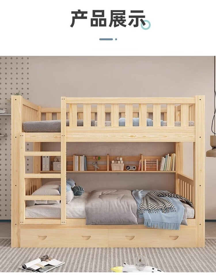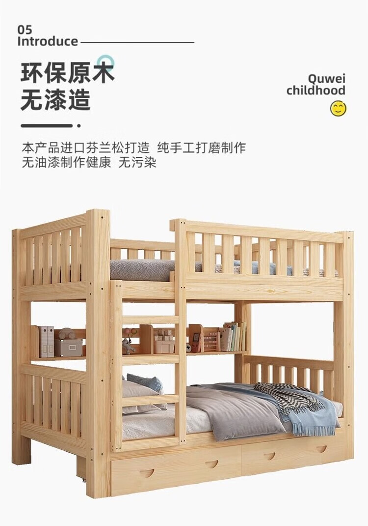 欣慕雅实木双层床成人两层高低床双人床小户型儿童床上下铺床二层子母床 直梯款上下床+抽屉【包上楼】 800mm*1900mm