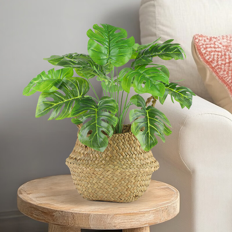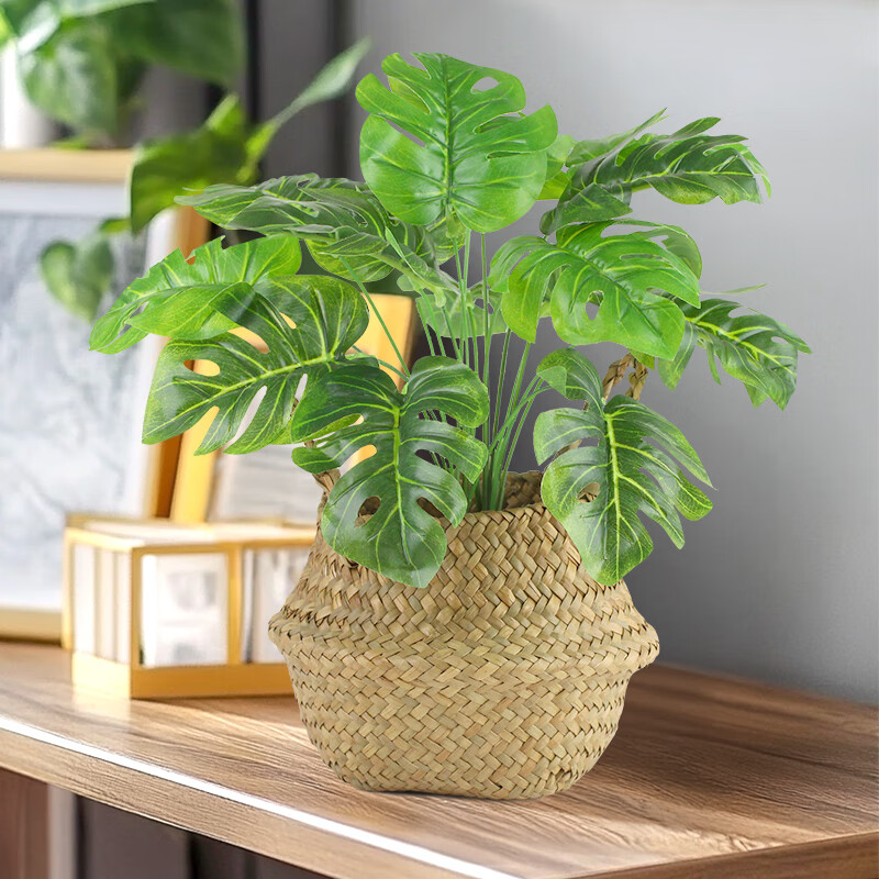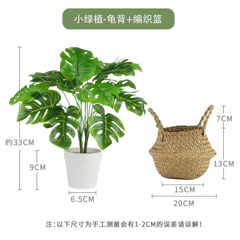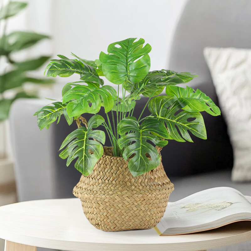 匠心绽放仿真龟背绿植盆栽假绿植北欧风室内装饰摆件2束配手提编织篮20415