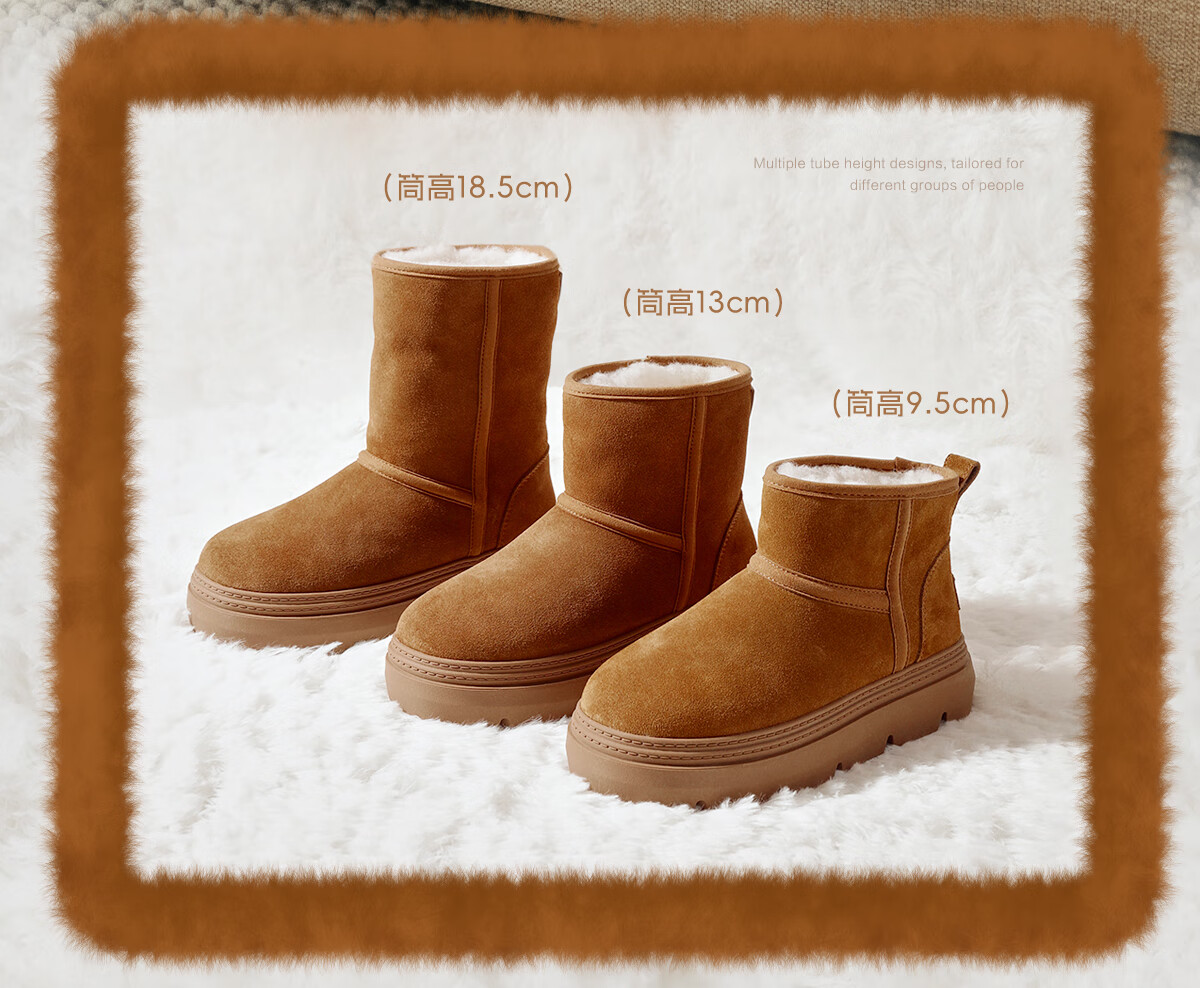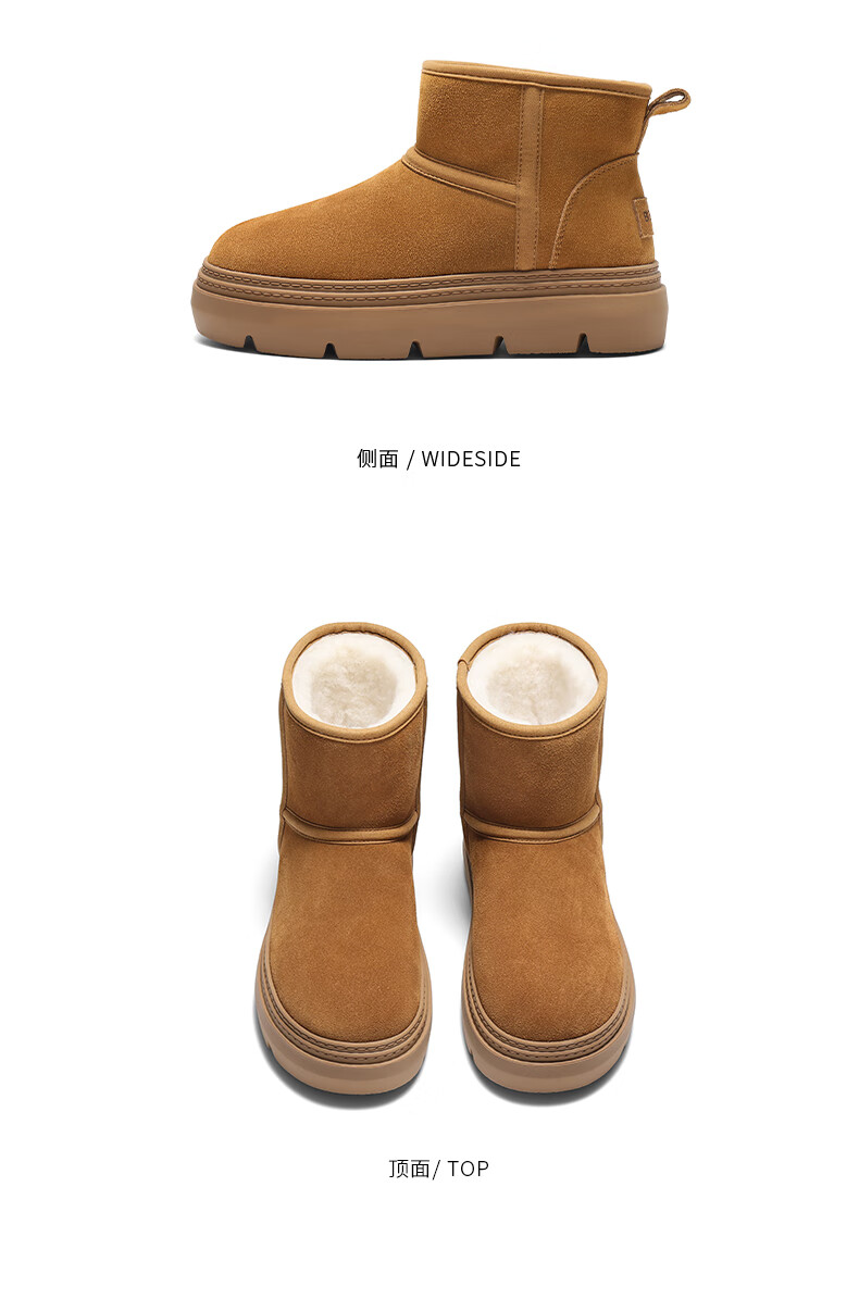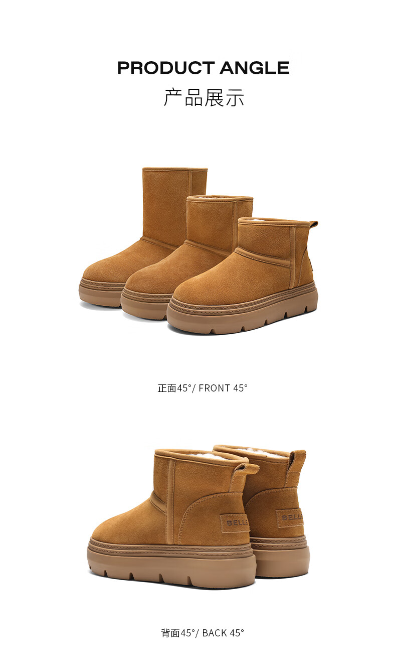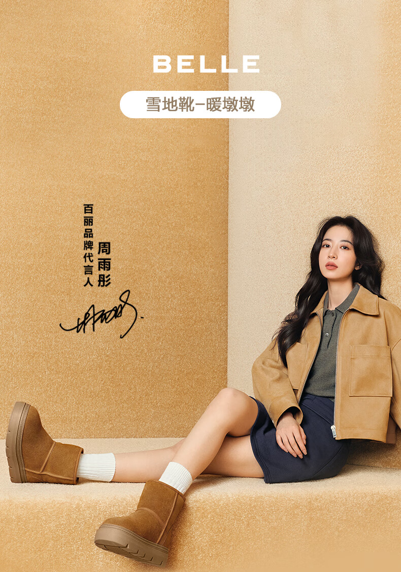 百丽(Belle)孙乐言张凌赫同款暖墩墩雪地靴女25冬新商场款加毛棉鞋E6C1DDD5 棕色-中筒 37 (235mm)