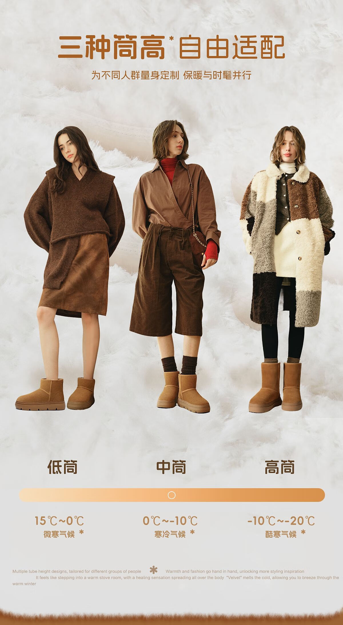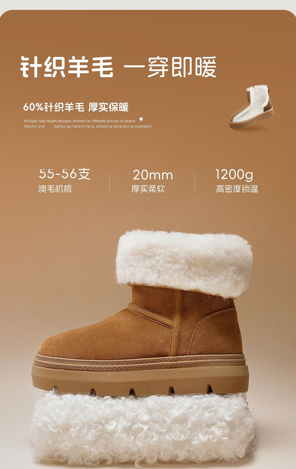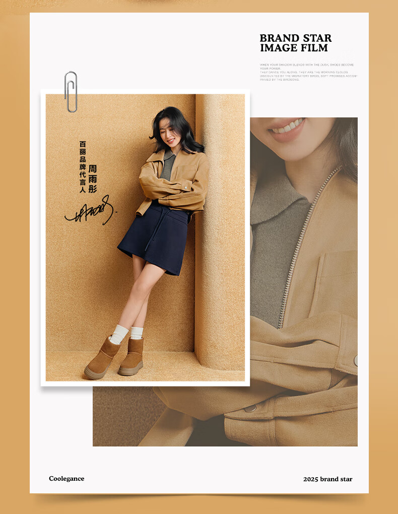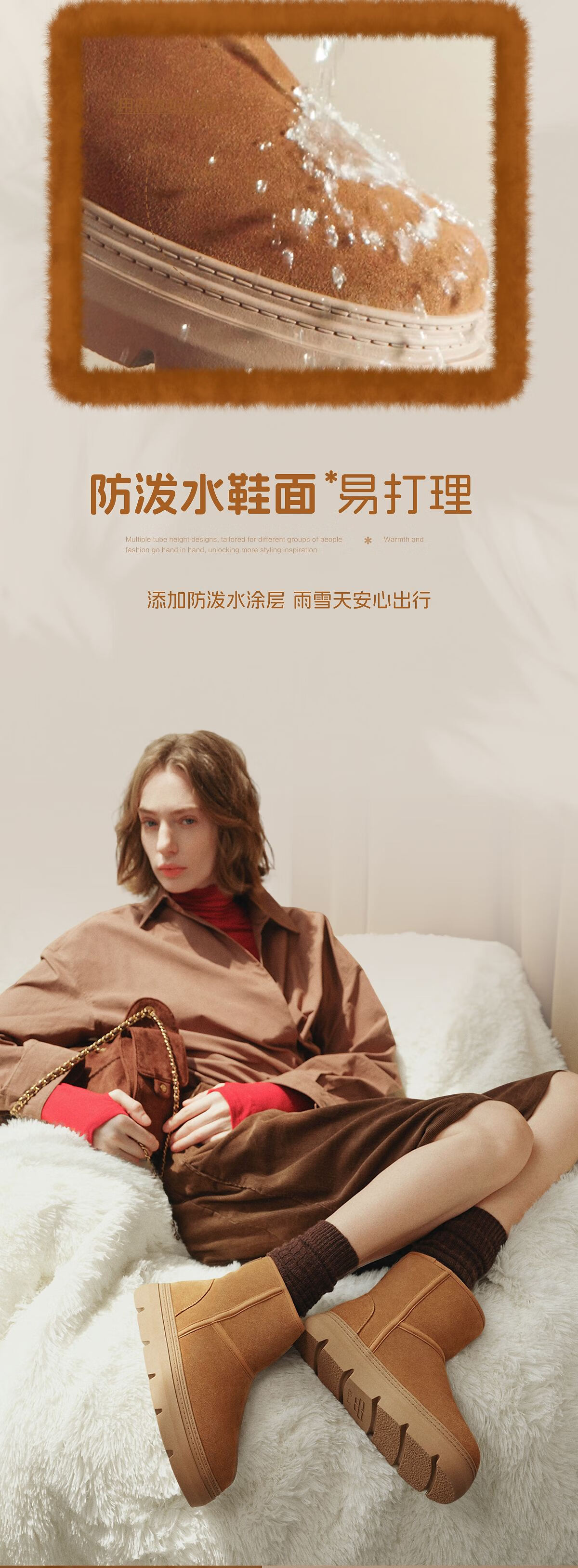 百丽(Belle)孙乐言张凌赫同款暖墩墩雪地靴女25冬新商场款加毛棉鞋E6C1DDD5 棕色-中筒 37 (235mm)