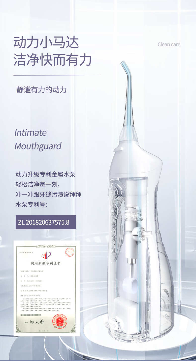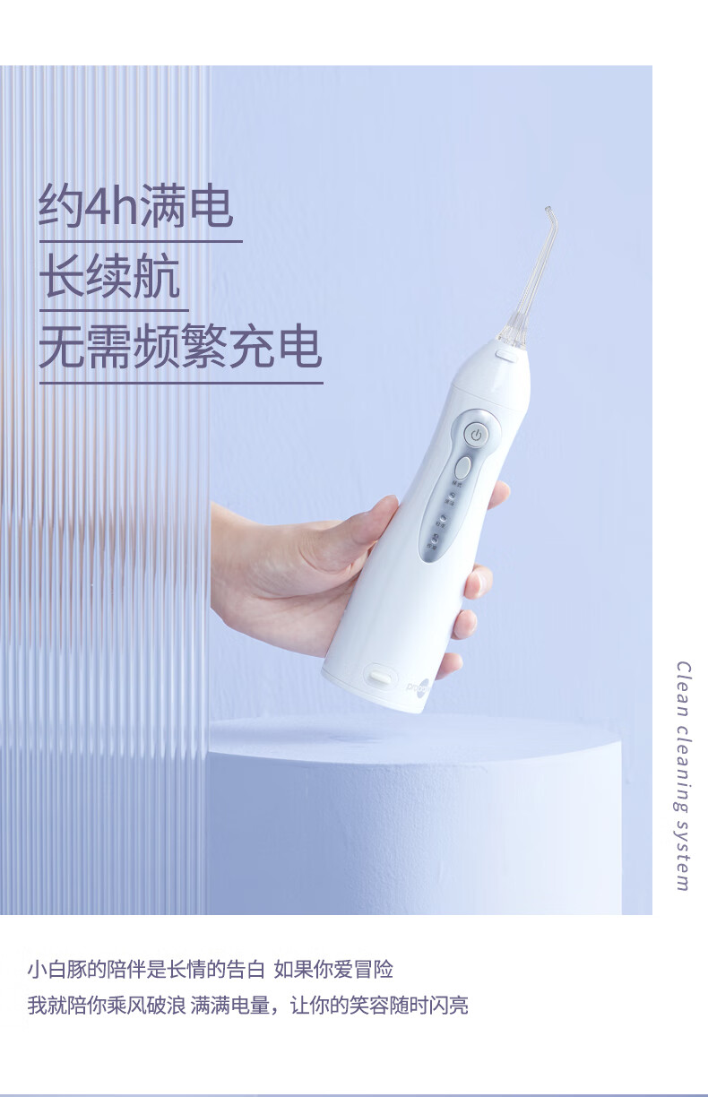 博皓(prooral)便携冲牙器电动洗牙器冲洗器水牙线洁牙器牙齿冲洗器牙结石去除器牙齿清洁正畸冲牙器家用 天蓝