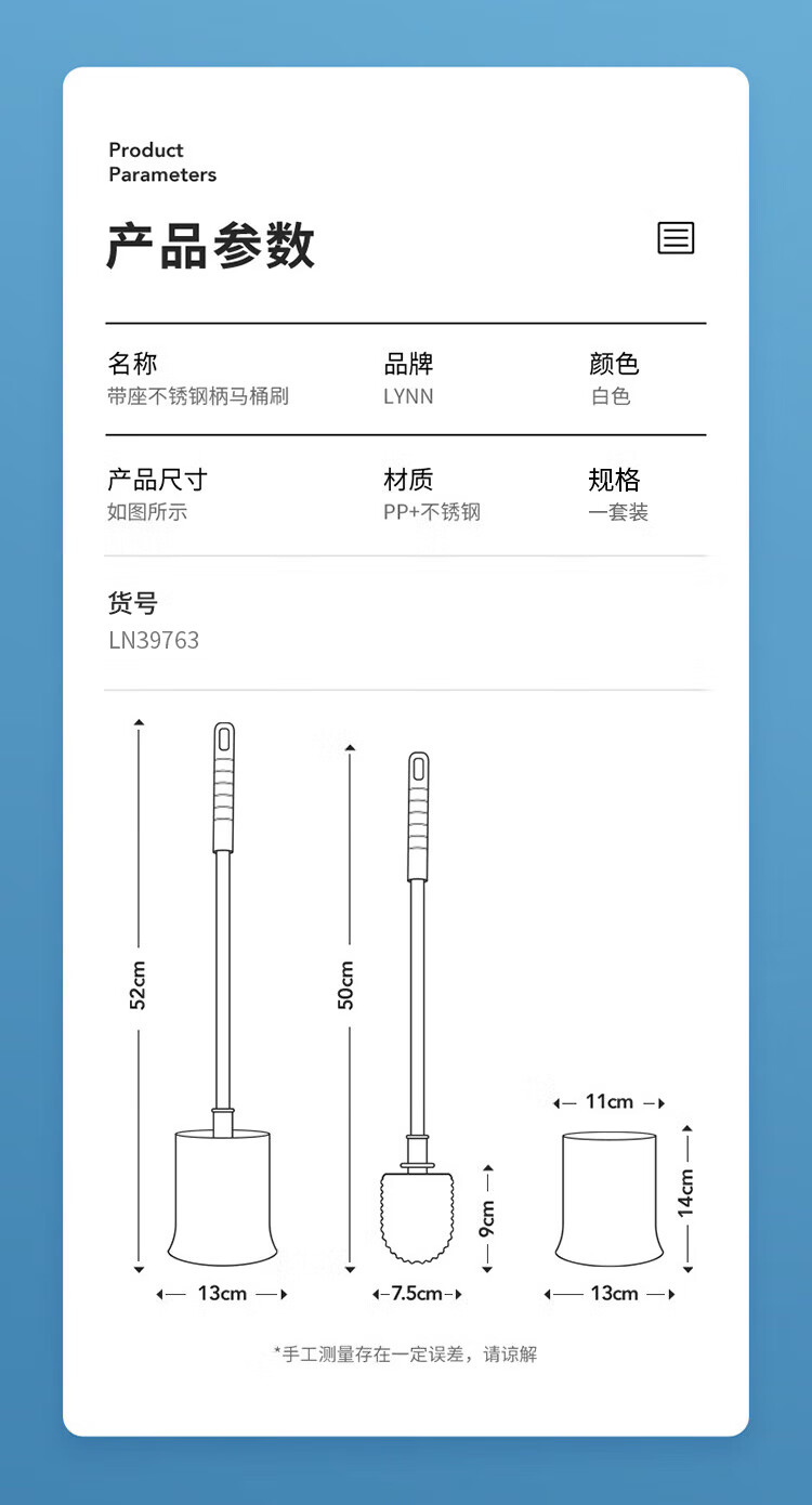 LYNN马桶刷套装厕所清洁刷子卫生间洁厕刷加长不锈钢手柄马桶刷无死角