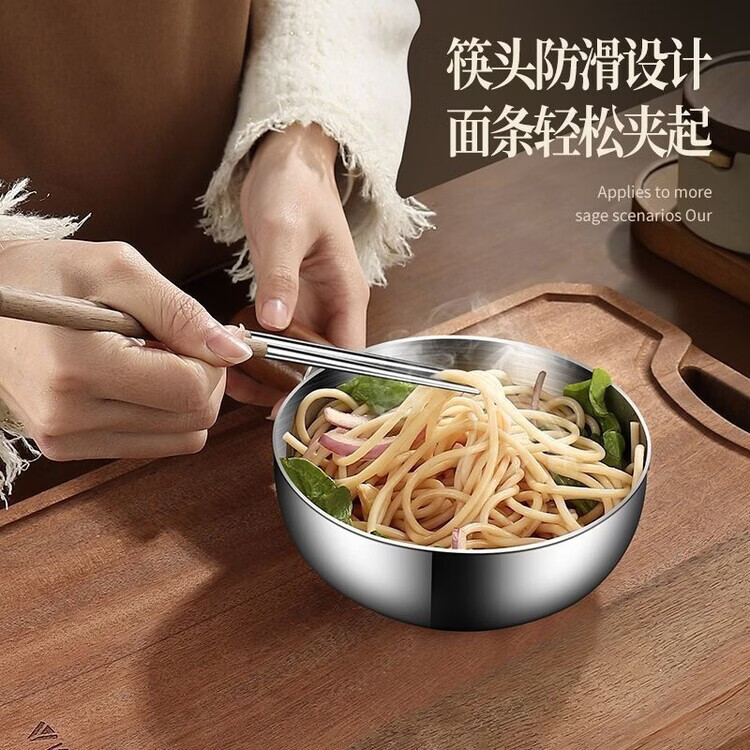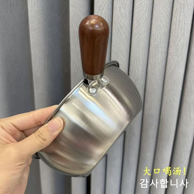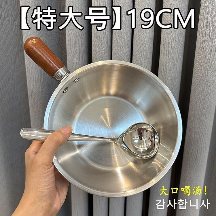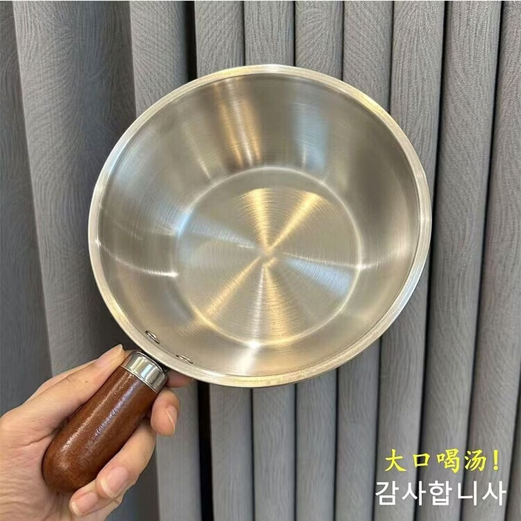 咏夏【19CM特大号】韩式特厚不锈钢大容量泡面碗欧美大食堂碗实木手柄 【特厚款】特大号 19CM单耳木柄碗 单碗
