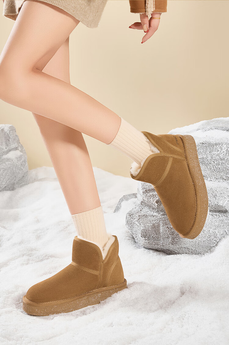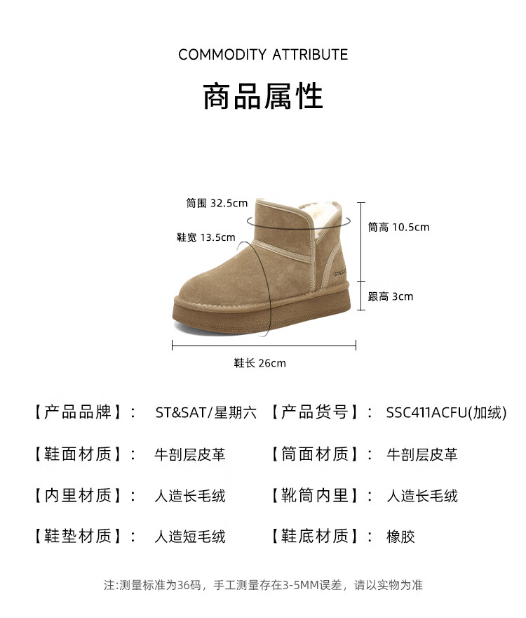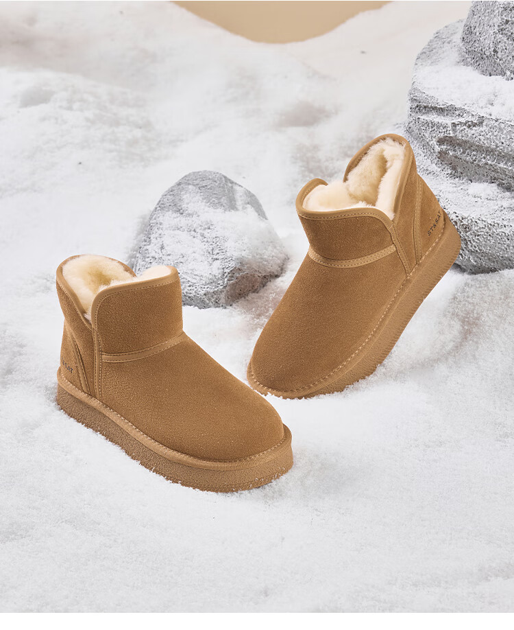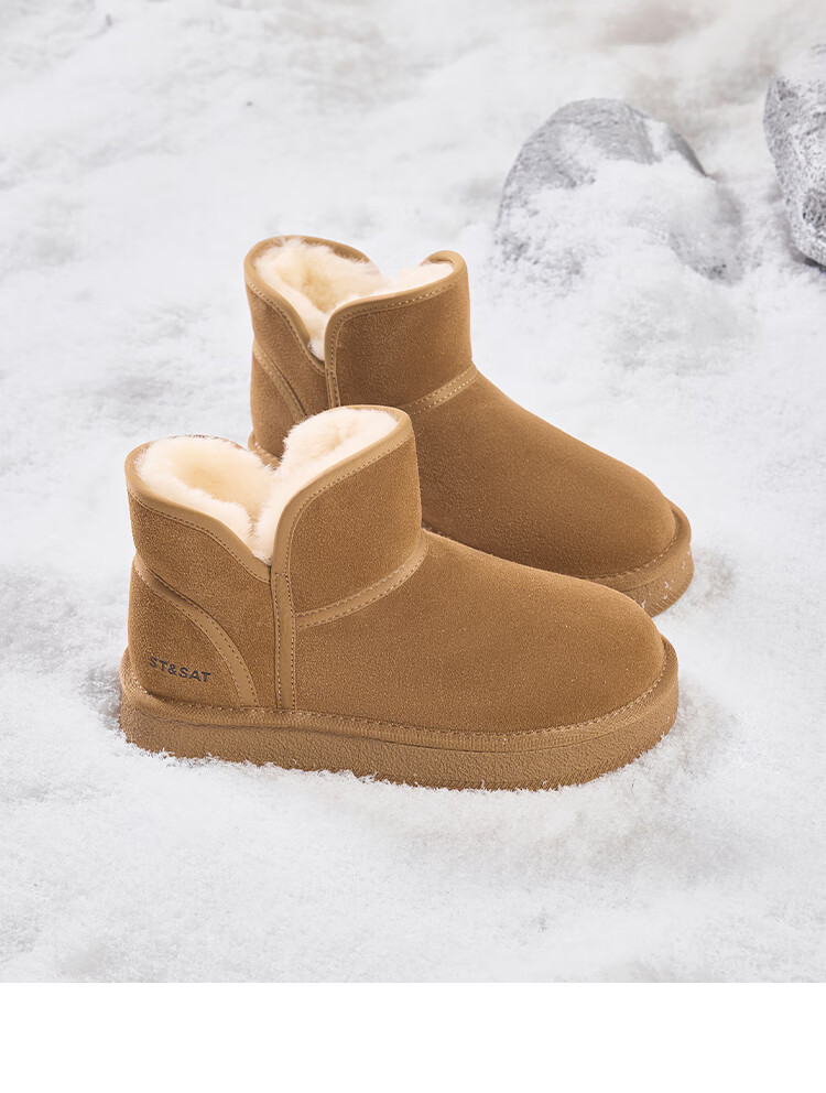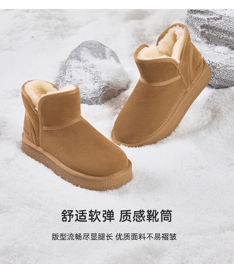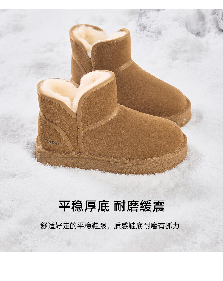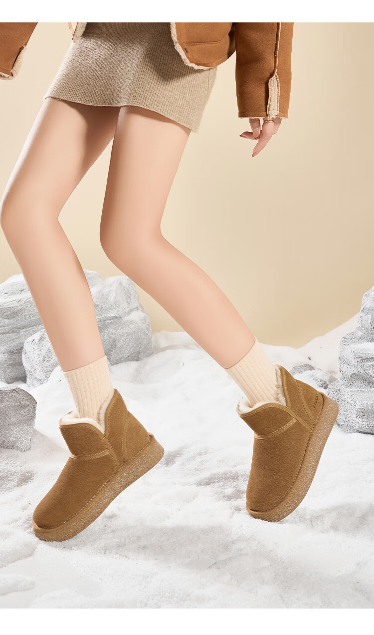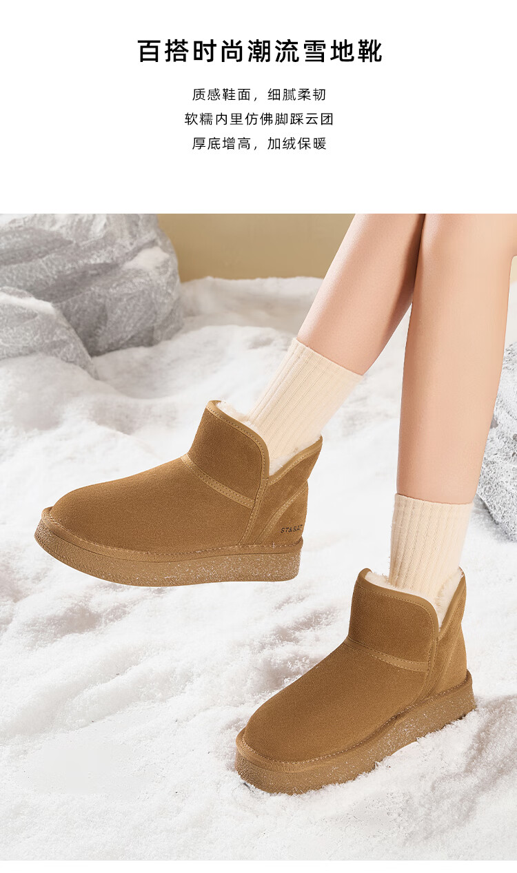 星期六加绒保暖雪地靴2025冬新款厚底百搭女靴短筒毛毛鞋东北棉鞋 驼色 【加绒保暖】 37