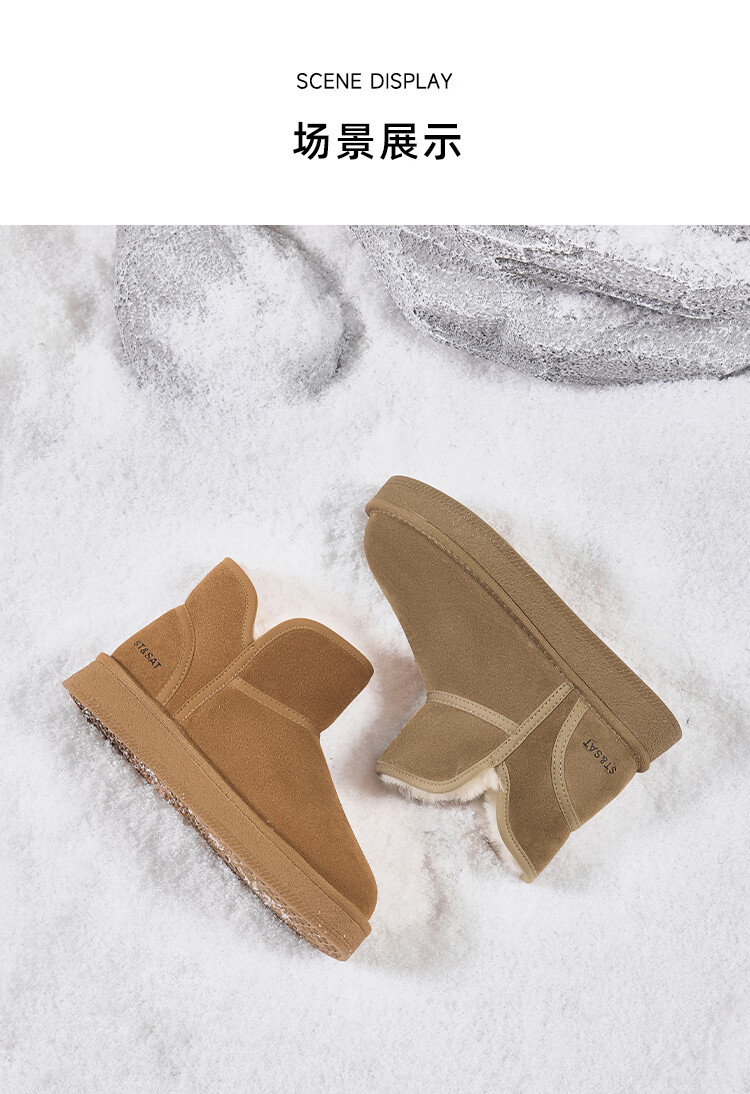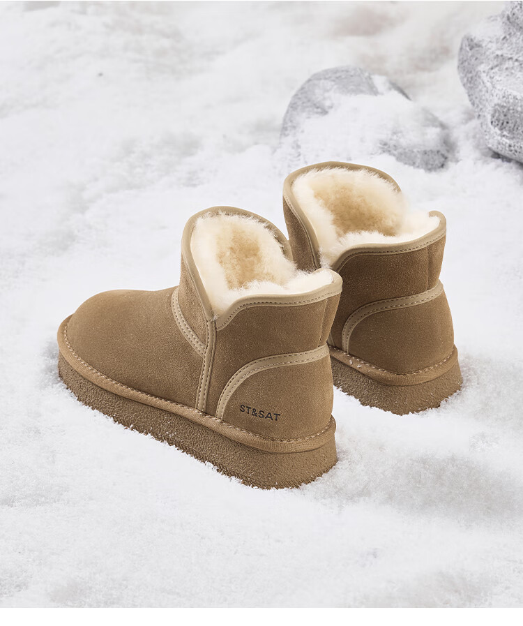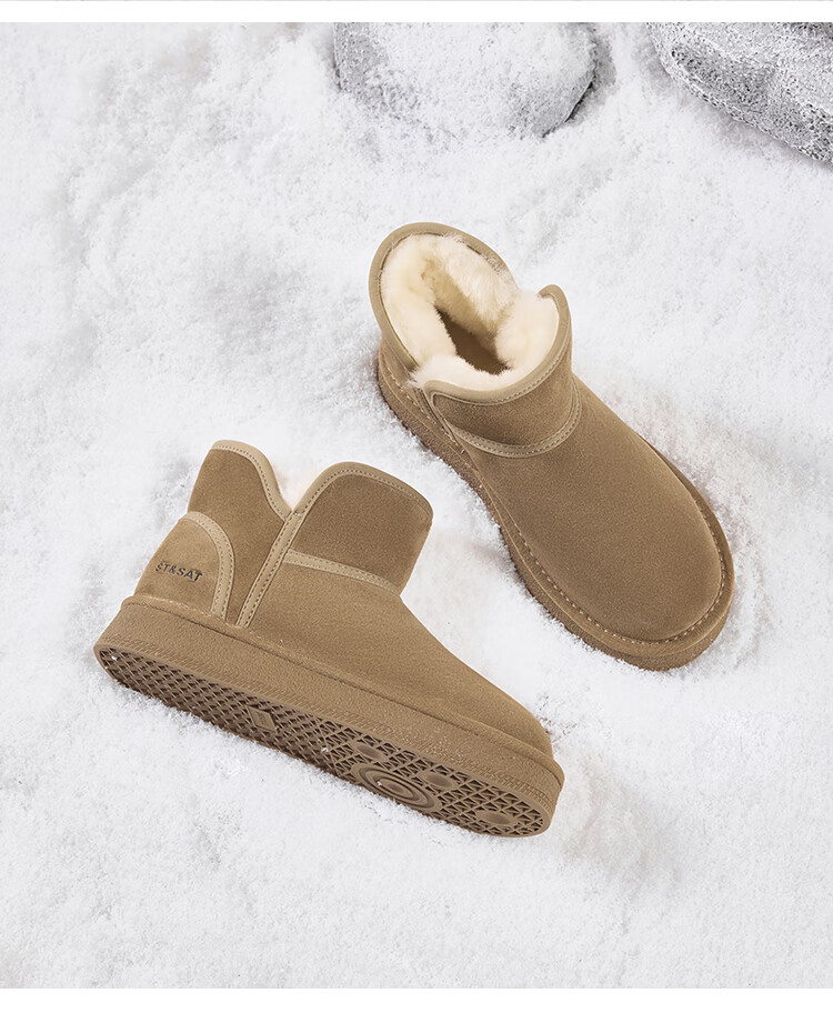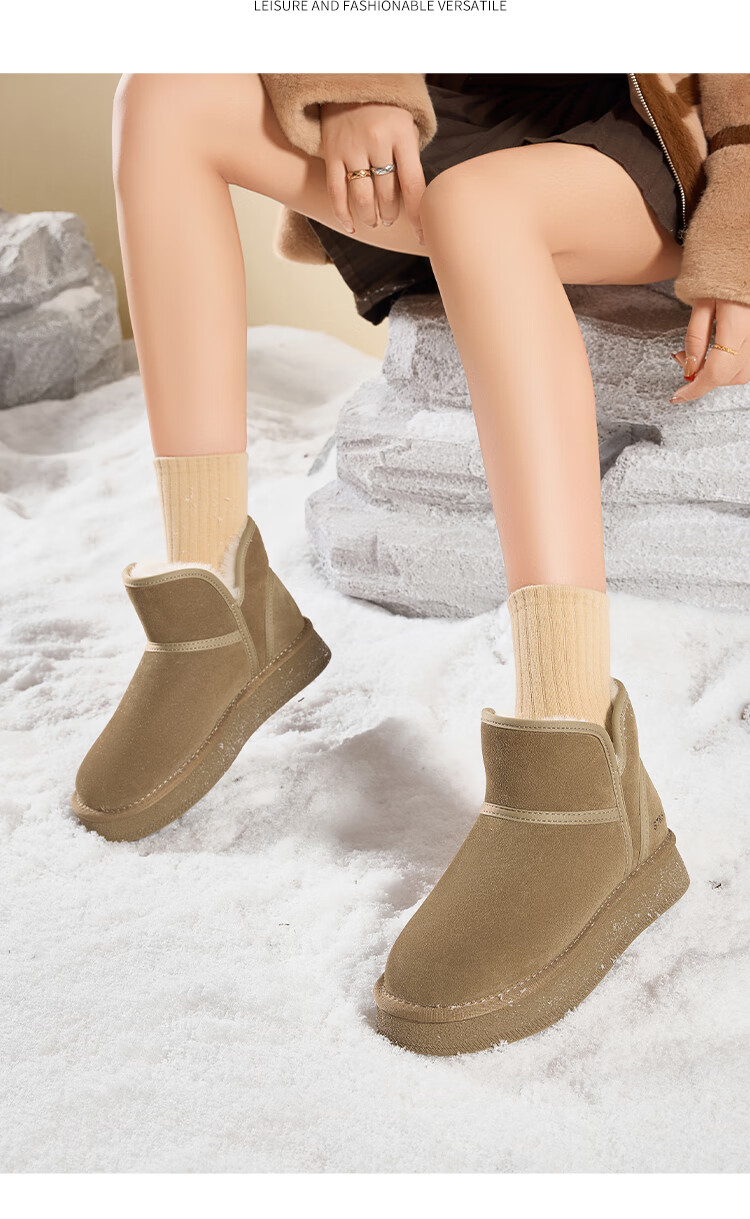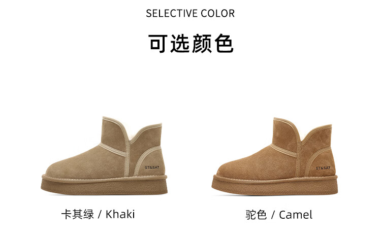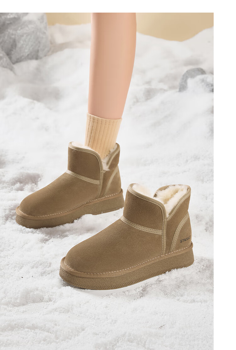 星期六加绒保暖雪地靴2025冬新款厚底百搭女靴短筒毛毛鞋东北棉鞋 卡其色 【加绒保暖】 37