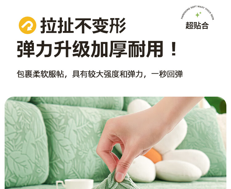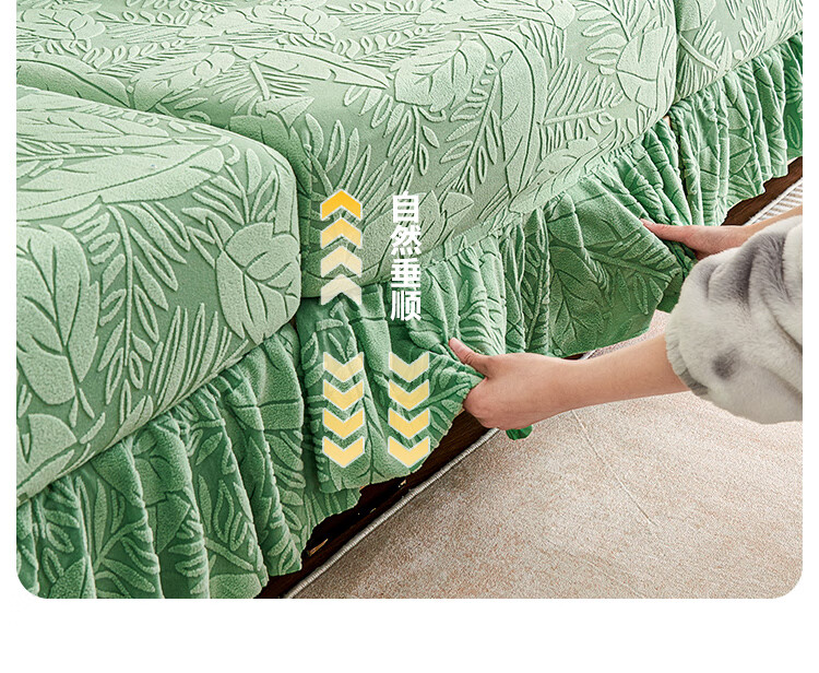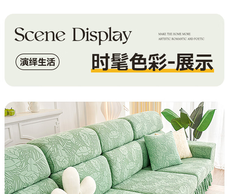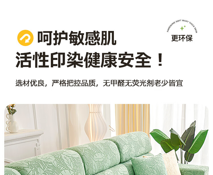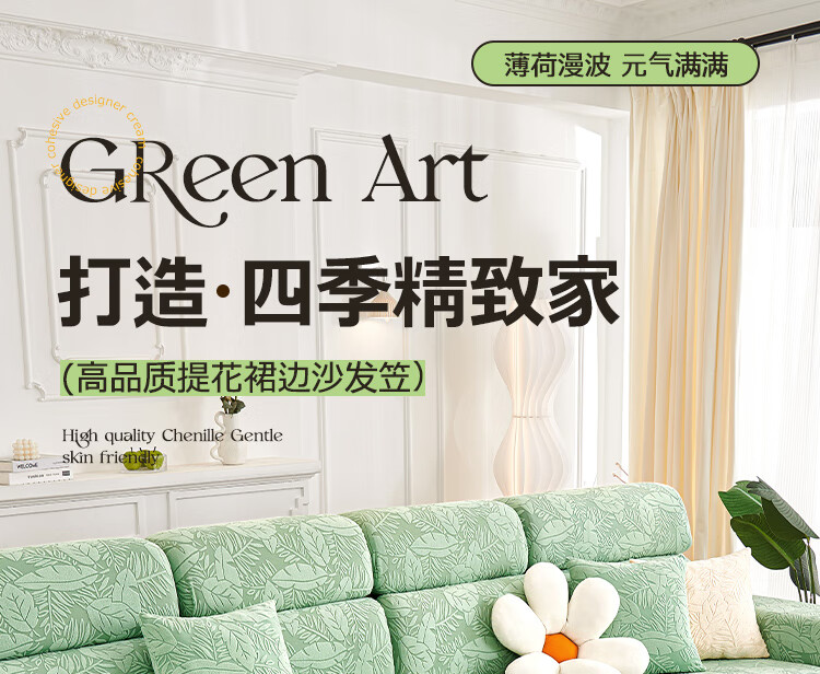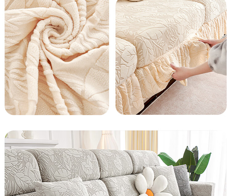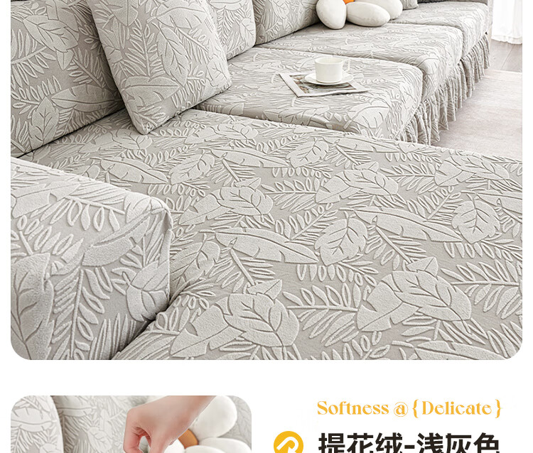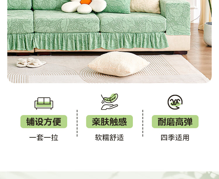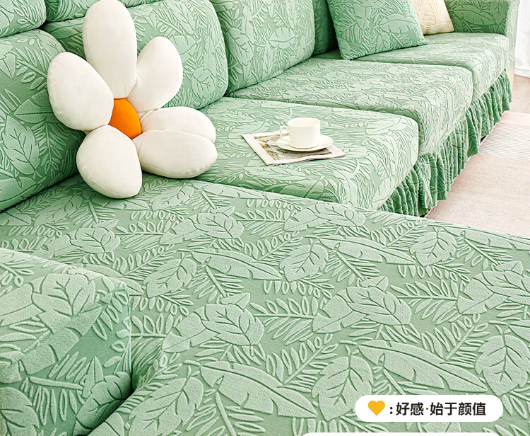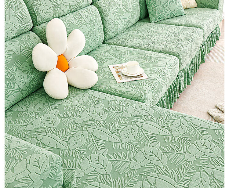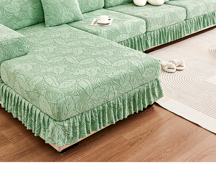 金拾美月提花绒裙边沙发套罩全包万能笠2025新款四季通用沙发垫防猫抓盖布 日丽裙边-薄荷绿 单人加大S宽65-85cm*长65-95cm