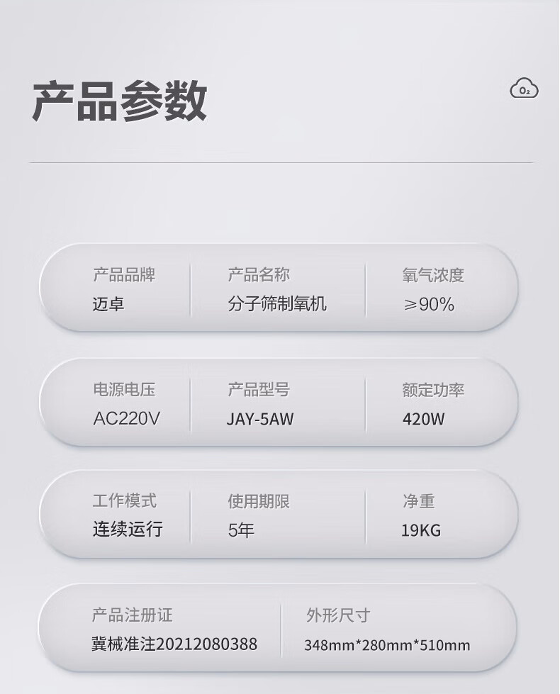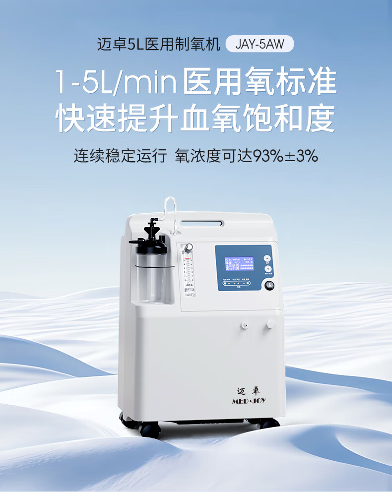 迈卓医用吸氧机JAY-5AW制氧机家用老人家用带雾化静噪轻音72H持续开机