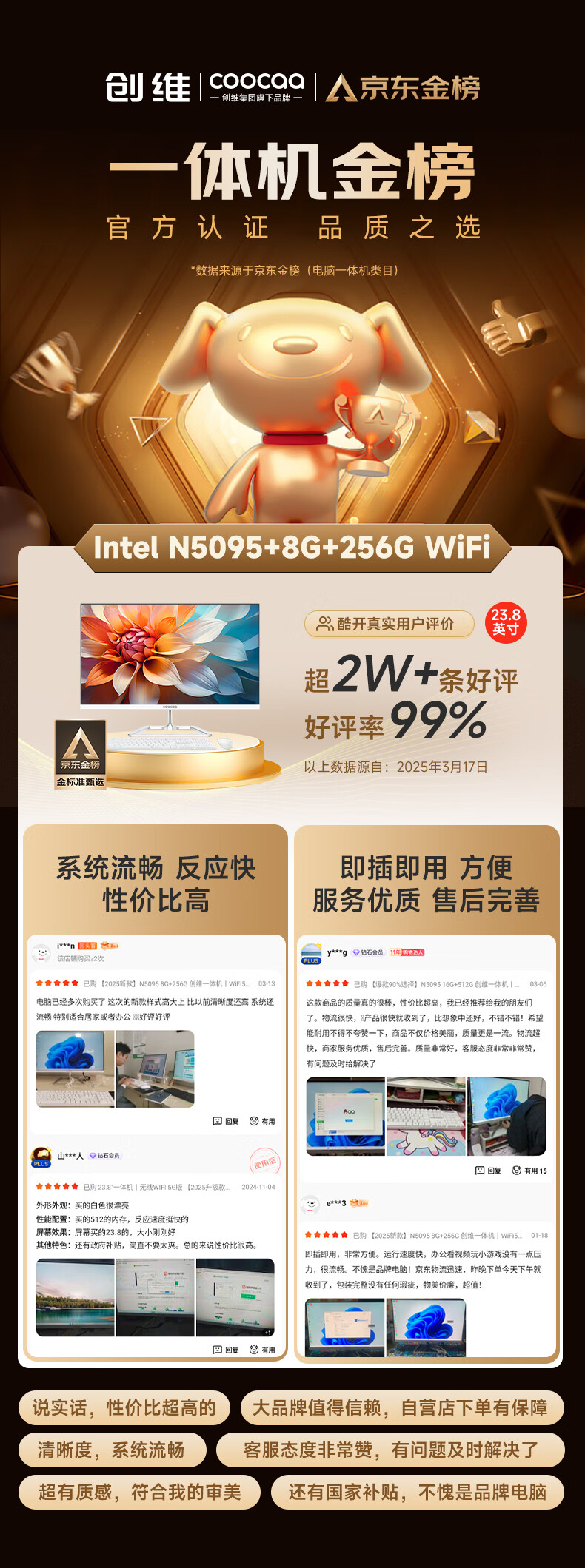 酷开 创维品牌 国家补贴20%商务办公一体机台式电脑家用全套主机(Intel G5400 8G 256G WiFi)23.8英寸