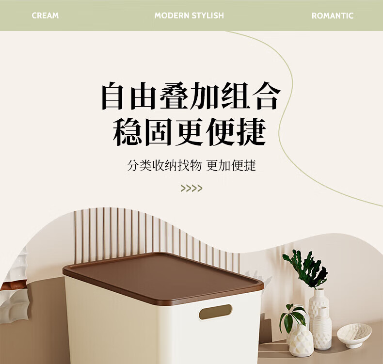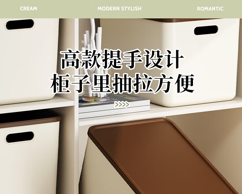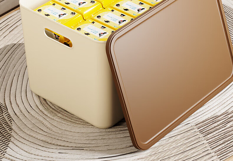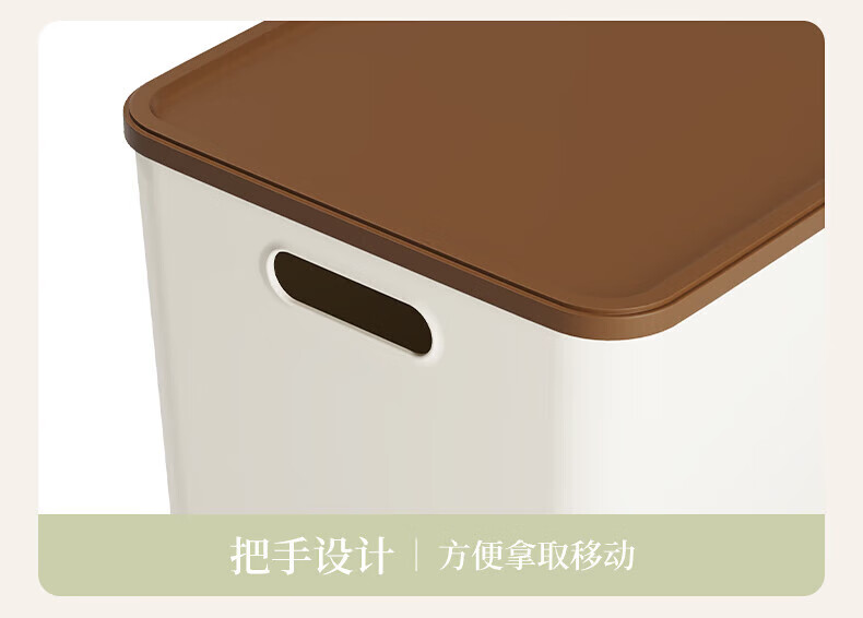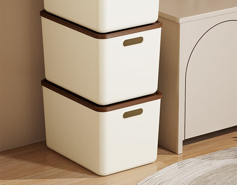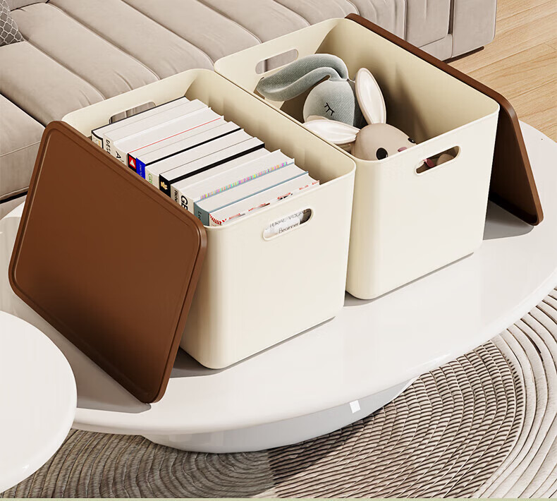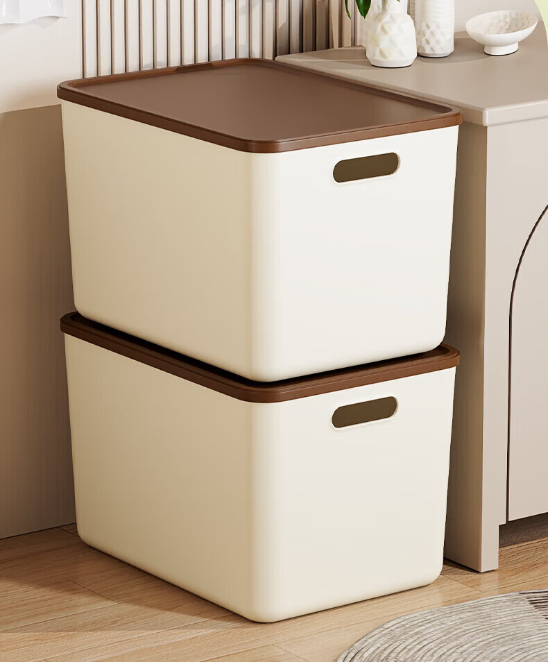 稻草熊收纳箱大号奶油风家用收纳盒塑料整理箱衣服玩具零食卧室储物箱 奶咖色两个装【带盖】