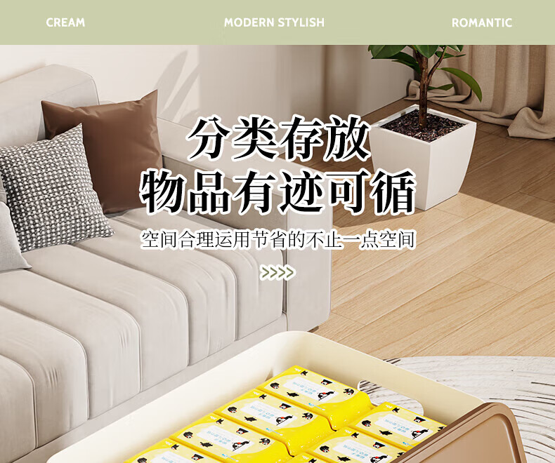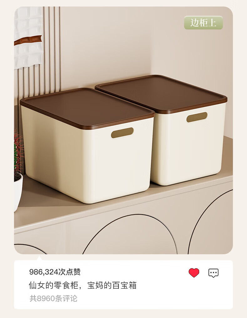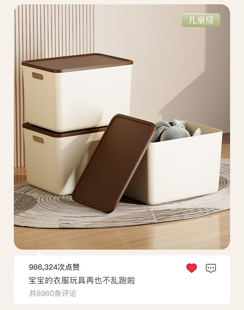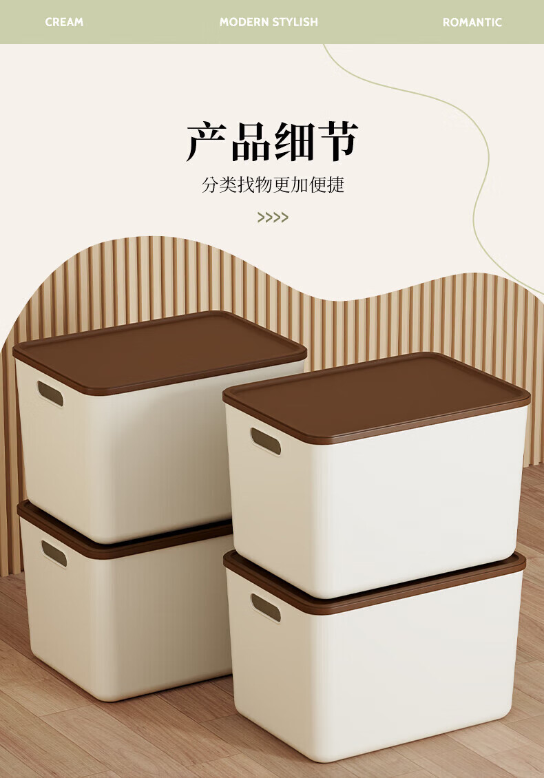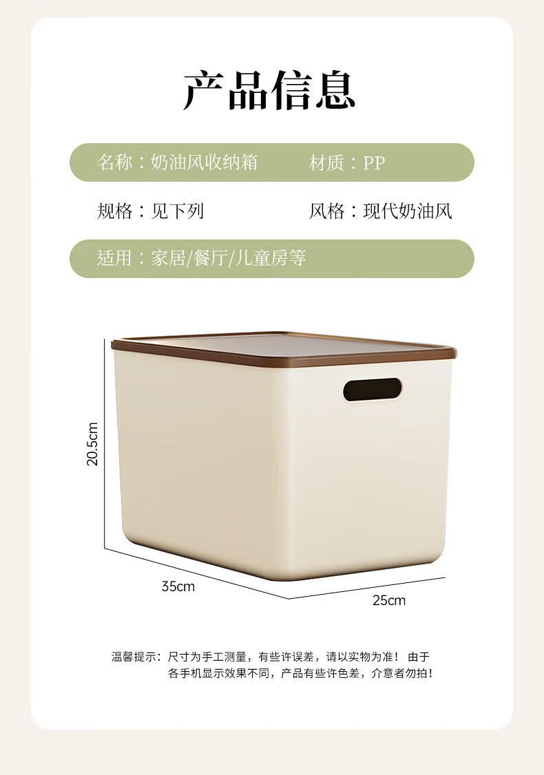 稻草熊收纳箱大号奶油风家用收纳盒塑料整理箱衣服玩具零食卧室储物箱 奶咖色两个装【带盖】
