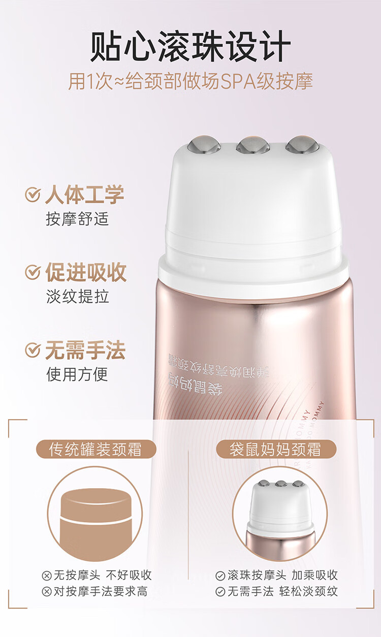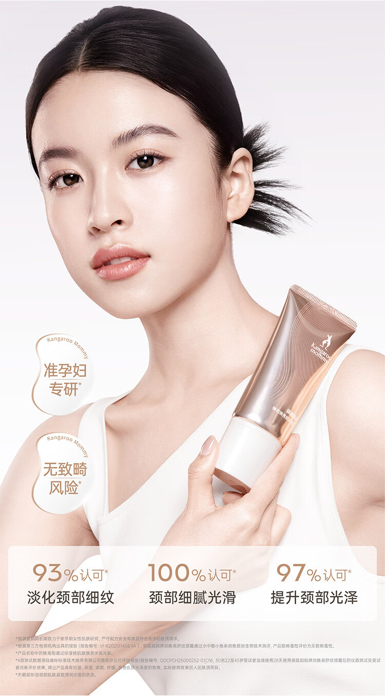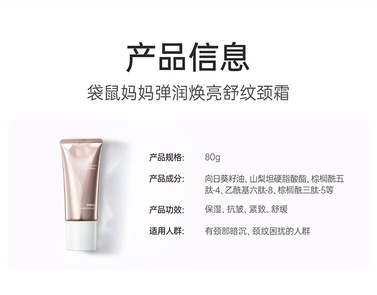 袋鼠妈妈(Kangaroo Mommy)颈纹霜紧致去颈纹脖子提拉颈部保养抗皱按摩颈纹霜 【单支装】舒纹颈霜80g+树莓身体乳10g