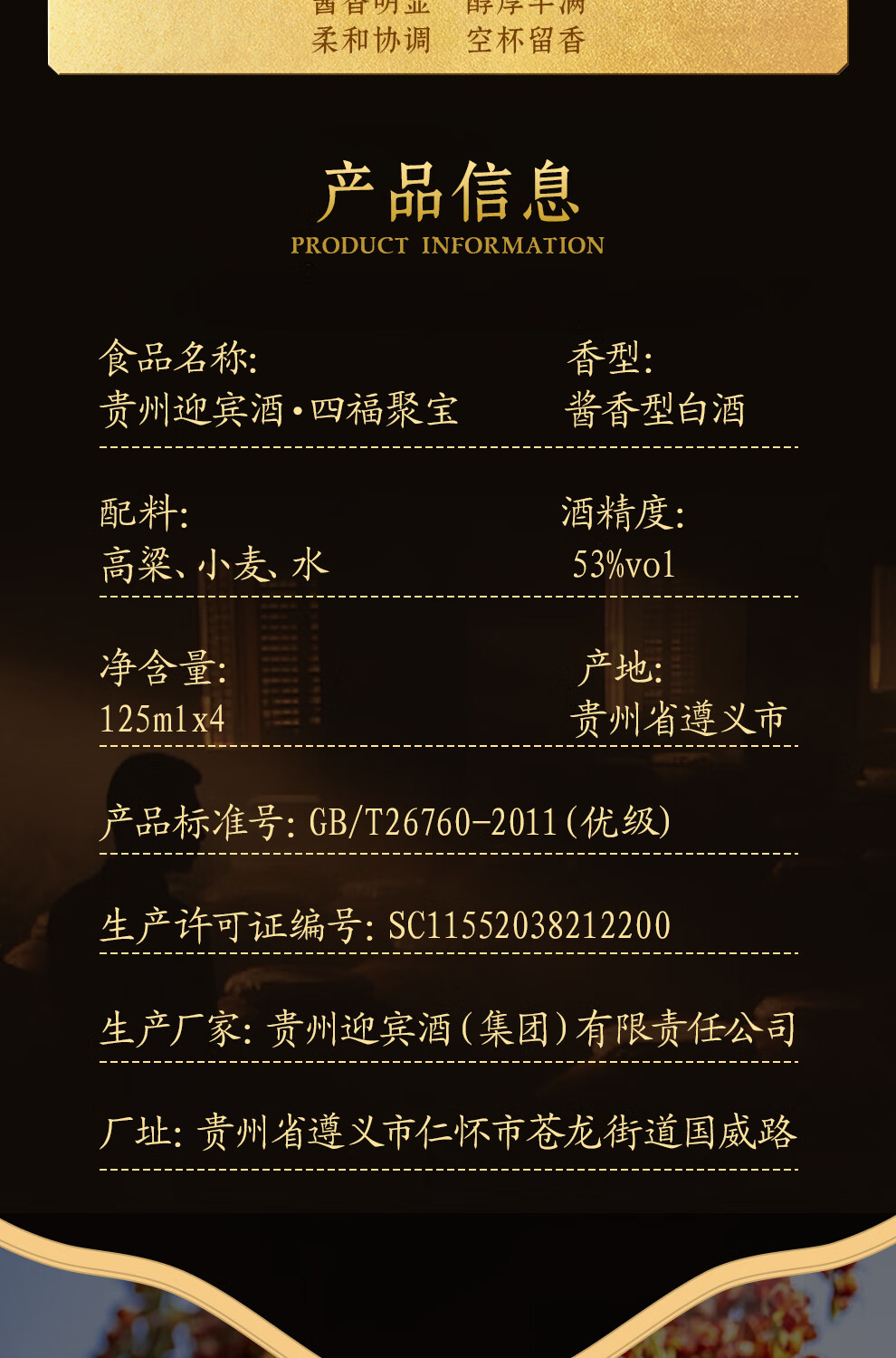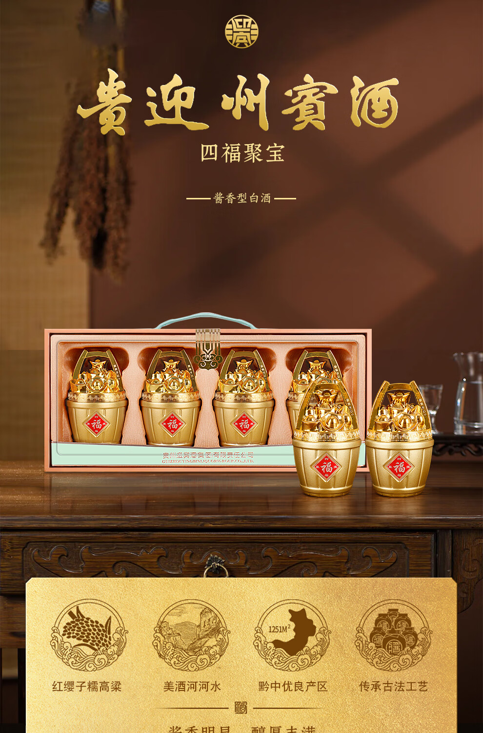 迎宾贵州迎宾 四福聚宝 酱香型白酒 粮食酿造 手提原箱 53%vol 125mL 4瓶