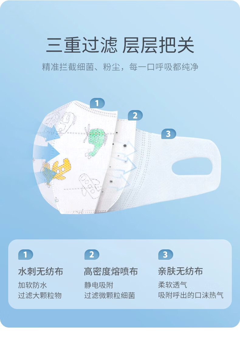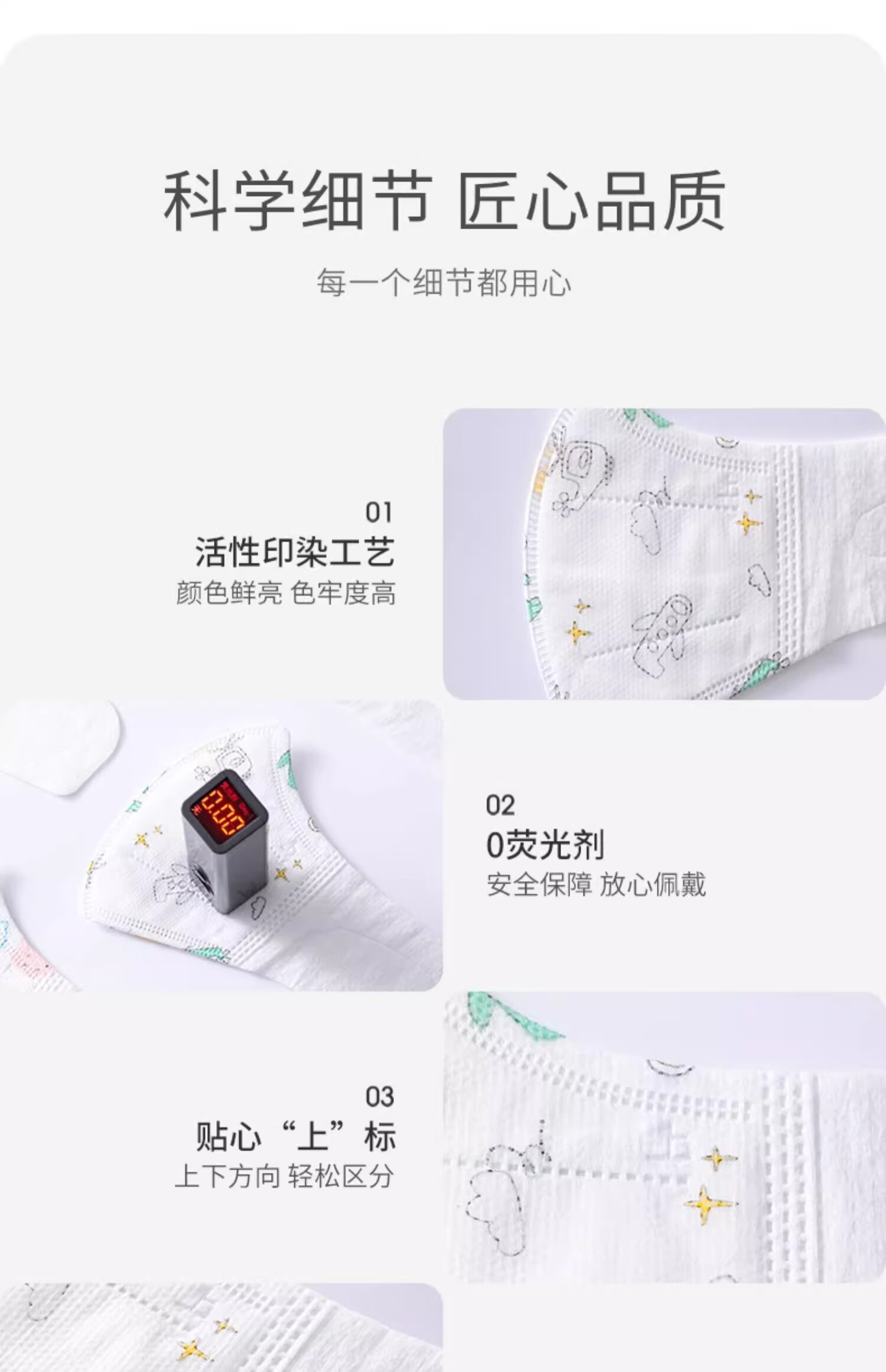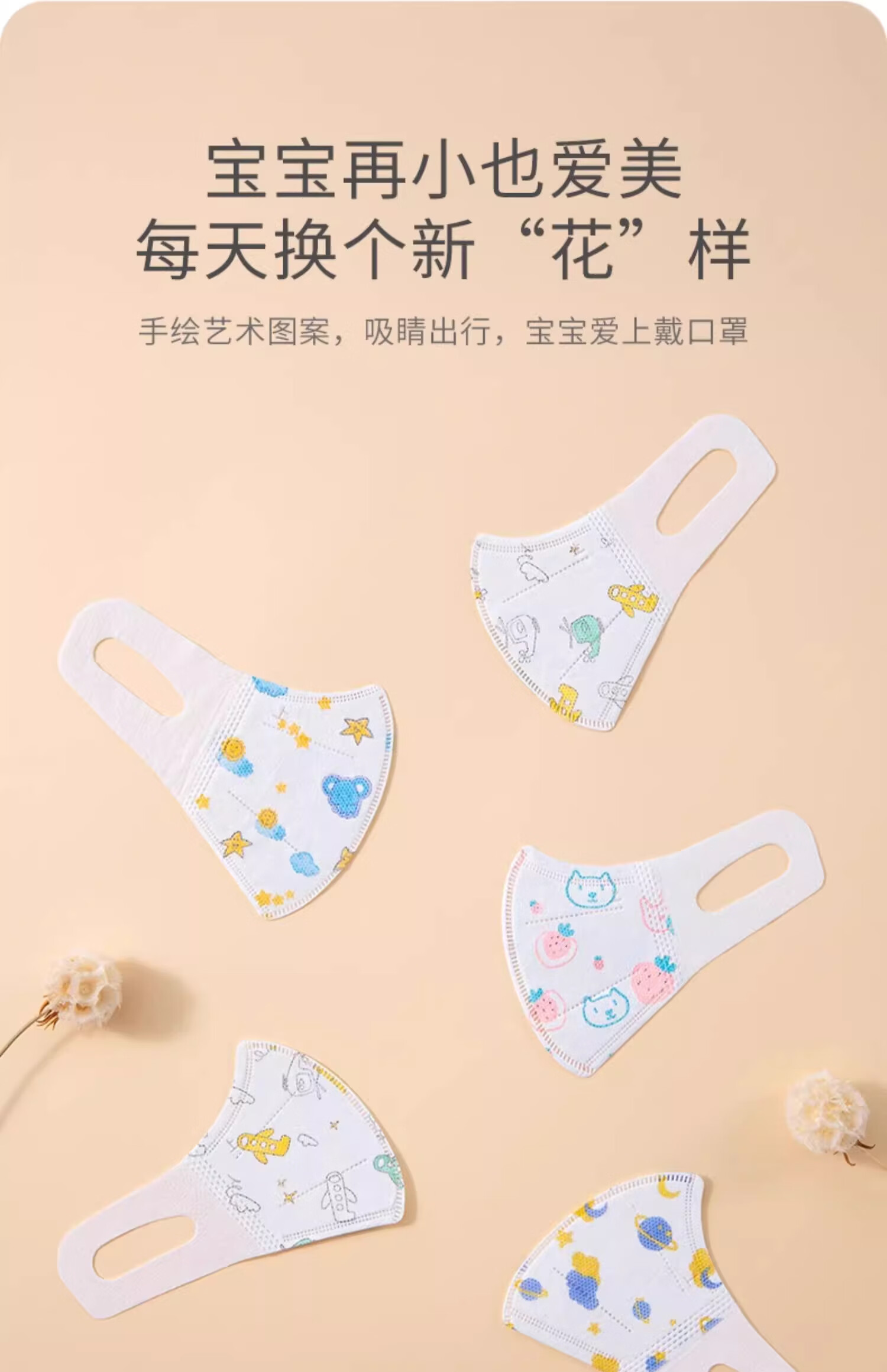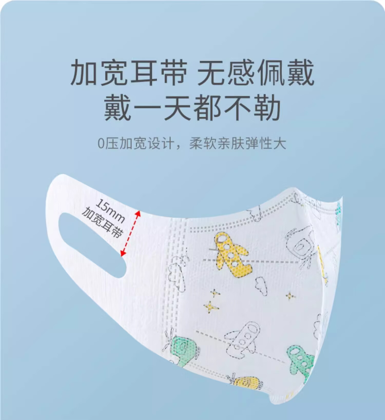 贝肽斯儿童口罩婴儿口罩3D立体一次性宝宝专用三重防护口耳罩 星球 1盒装(32只) S码 0-3(独立包装)