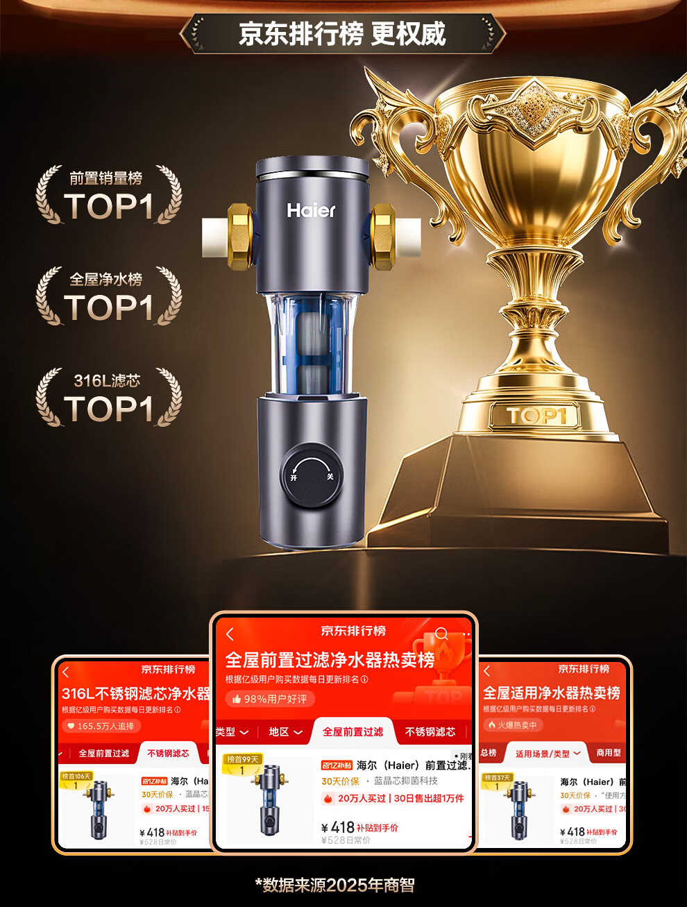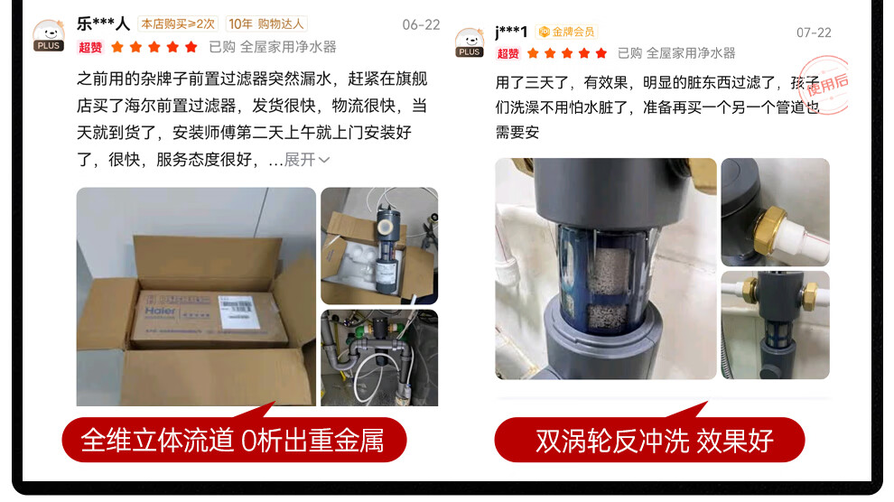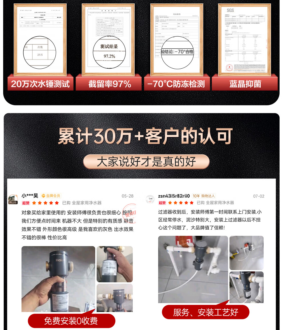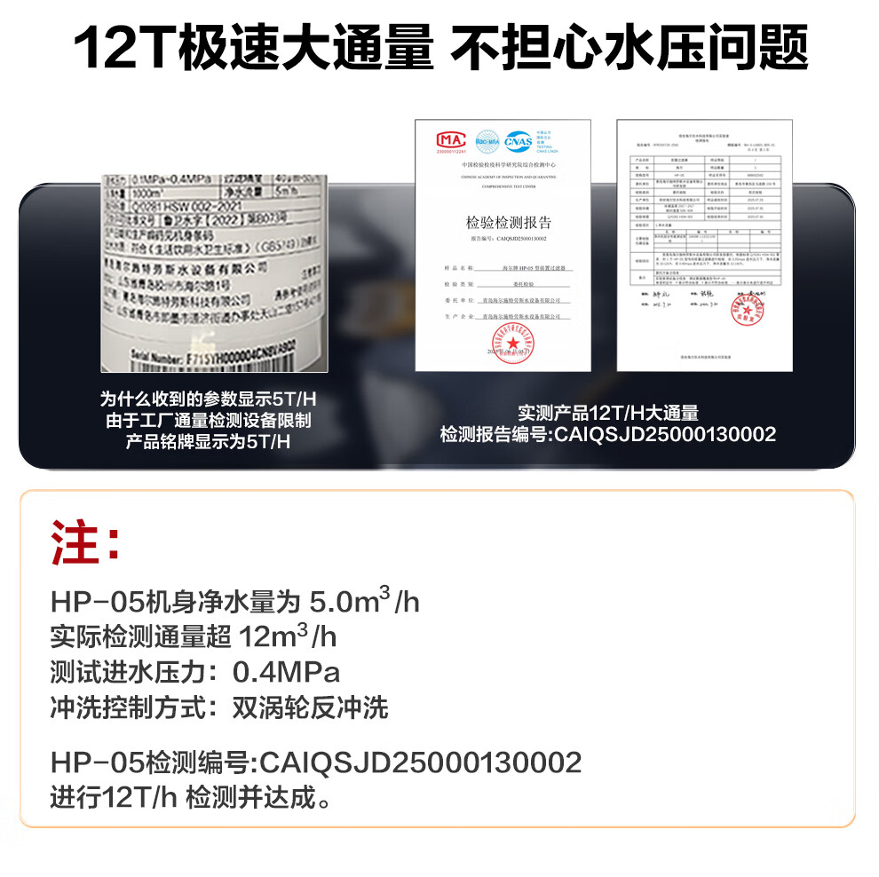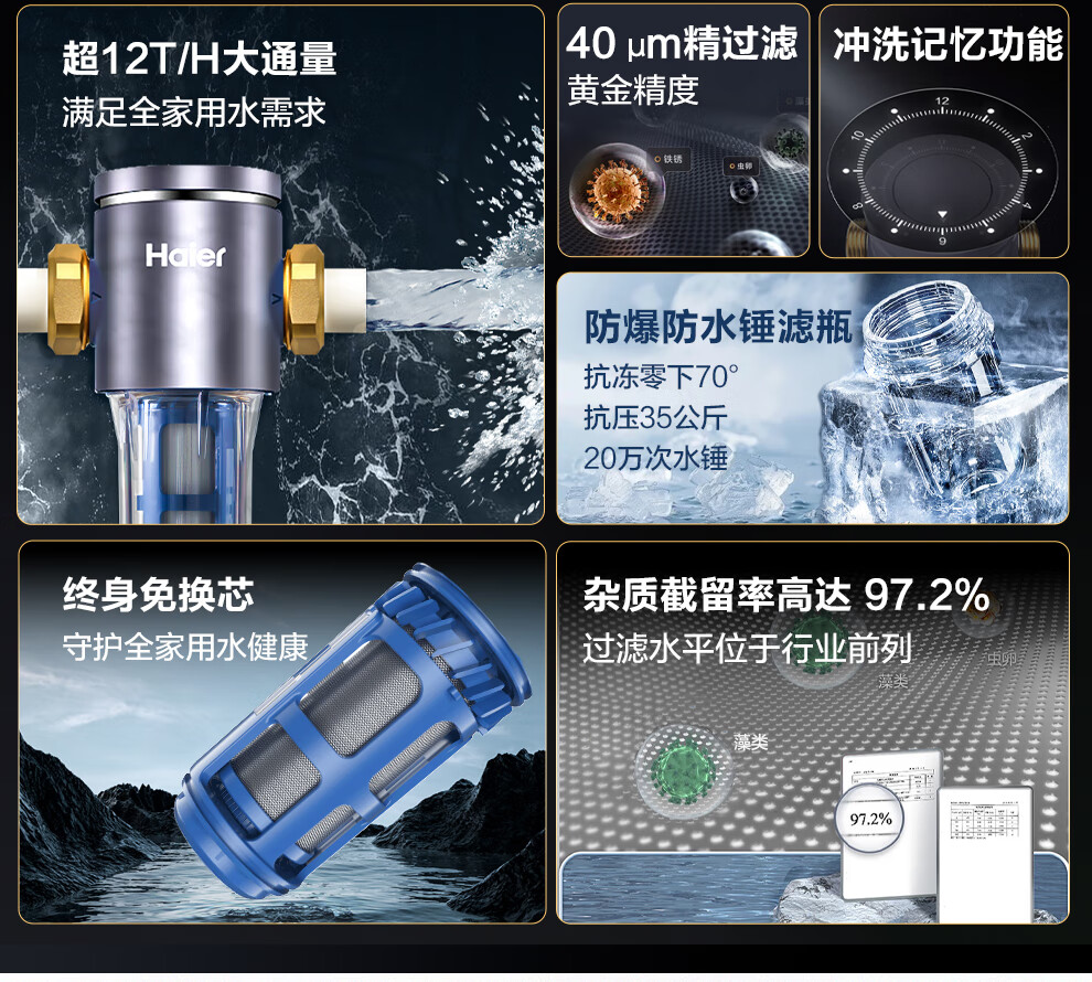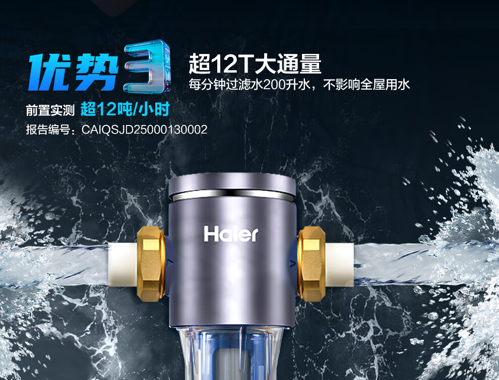 海尔(Haier)前置过滤器全屋家用净水器HP-05升级迭代款40微米双网反冲洗大通量管道过滤器 全屋家用净水器