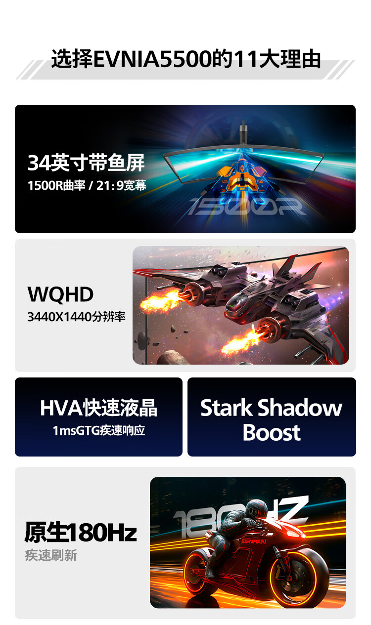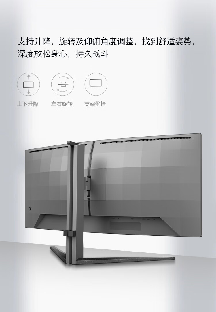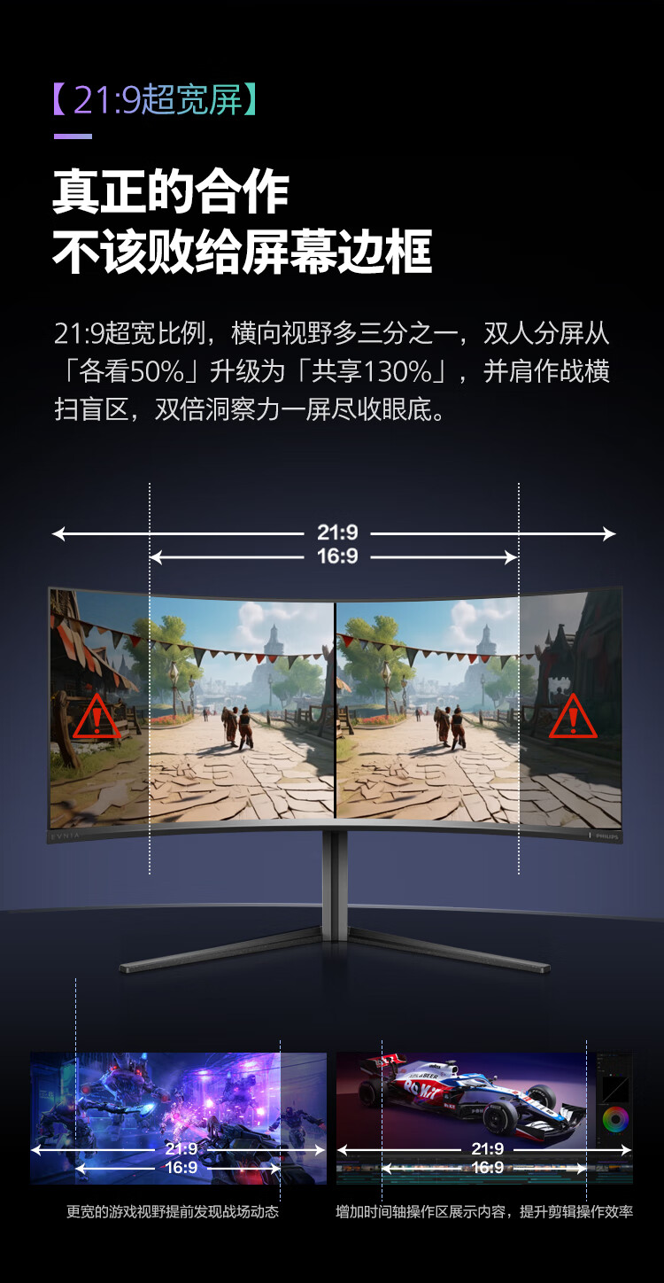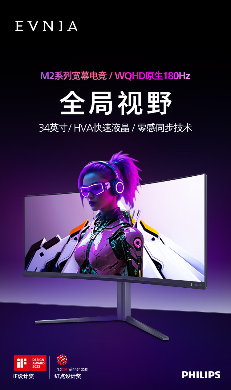 飞利浦EVNIA弈威电竞游戏显示器 34英寸曲面带鱼屏 WQHD准4K HVA 180Hz 1ms HDR400 硬件低延迟34M2C5500