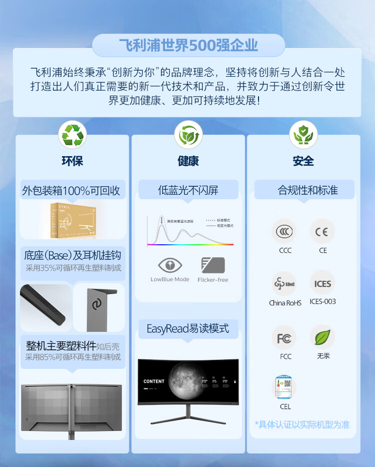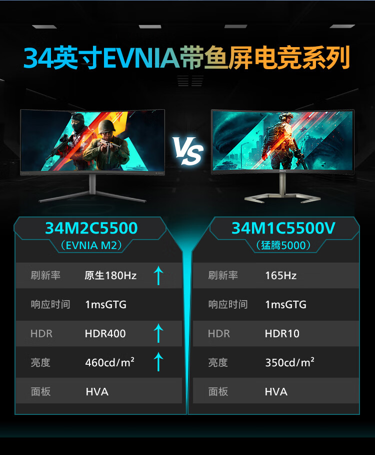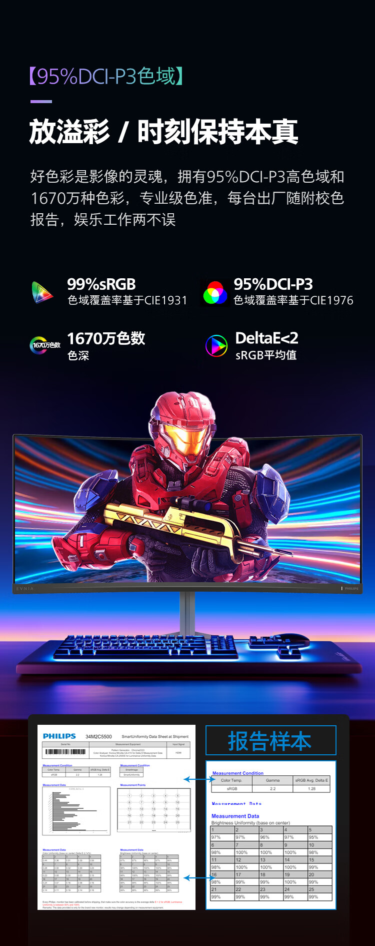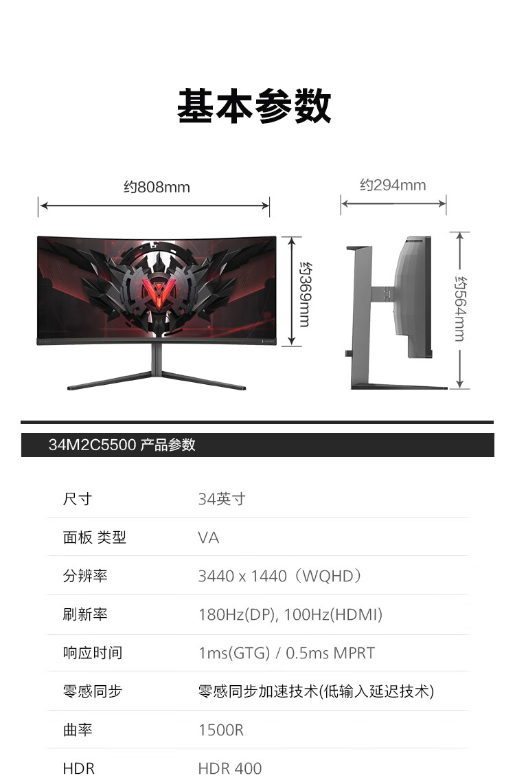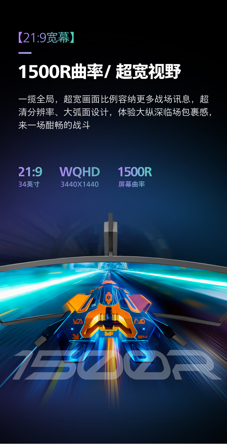 飞利浦EVNIA弈威电竞游戏显示器 34英寸曲面带鱼屏 WQHD准4K HVA 180Hz 1ms HDR400 硬件低延迟34M2C5500