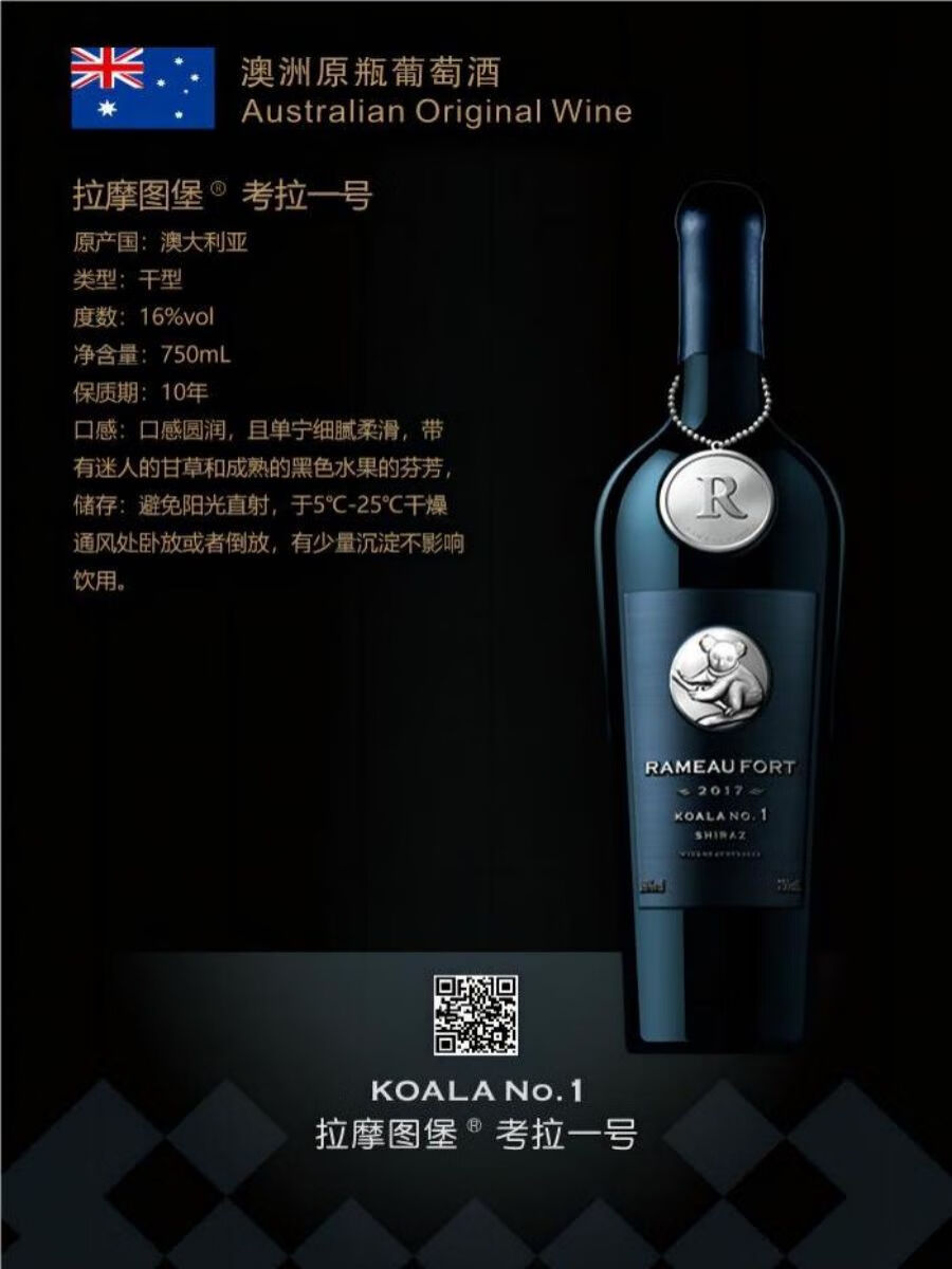 拉摩图堡考拉一号西拉干红葡萄酒2017年16度经典款澳洲原瓶进口蜡封重型瓶 整箱批发