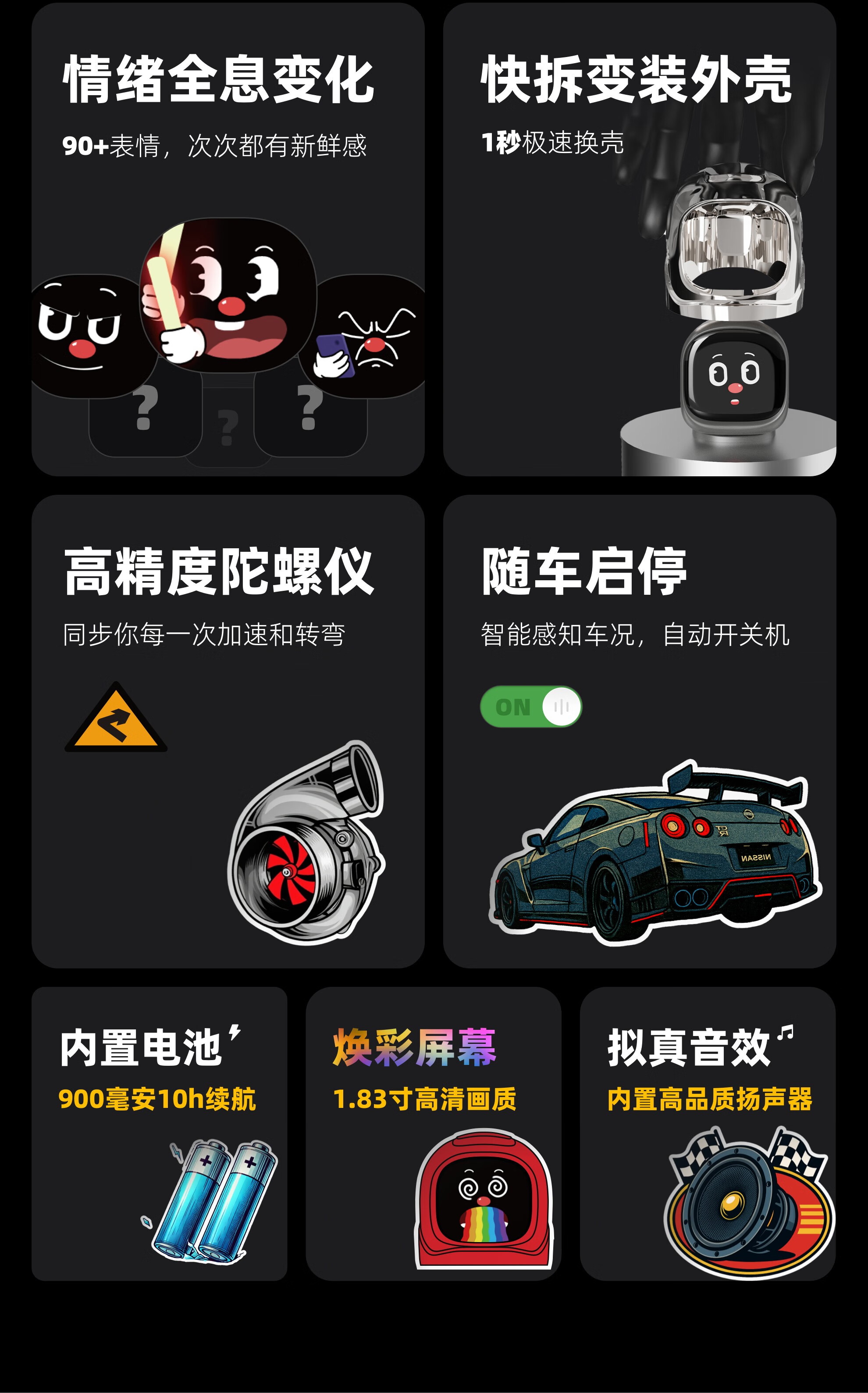 MANGOGO【车载机器人MANGOGO】电子潮玩伴侣 驾驶陪伴宠物男士中控摆件 曜石黑套装【主机+外壳】