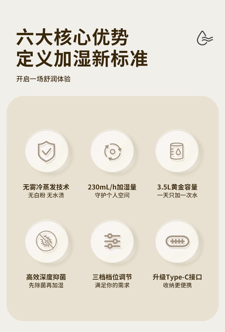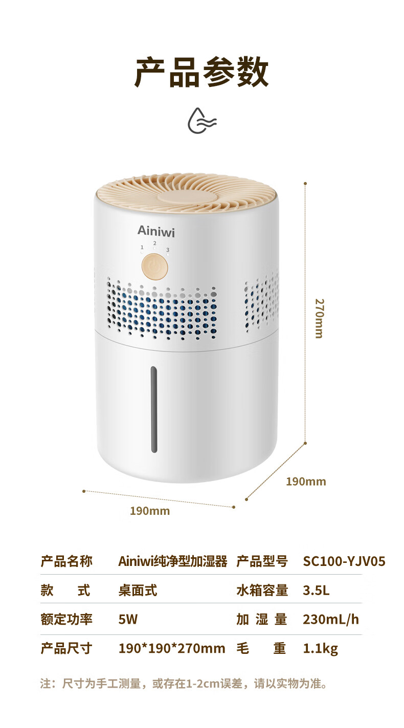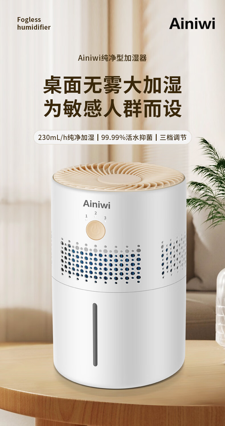 爱尼维(Ainiwi)加湿器家用桌面加湿机智能大容量香薰机静音大雾量办公室增湿器 豪华无雾抑菌款【3.5L】