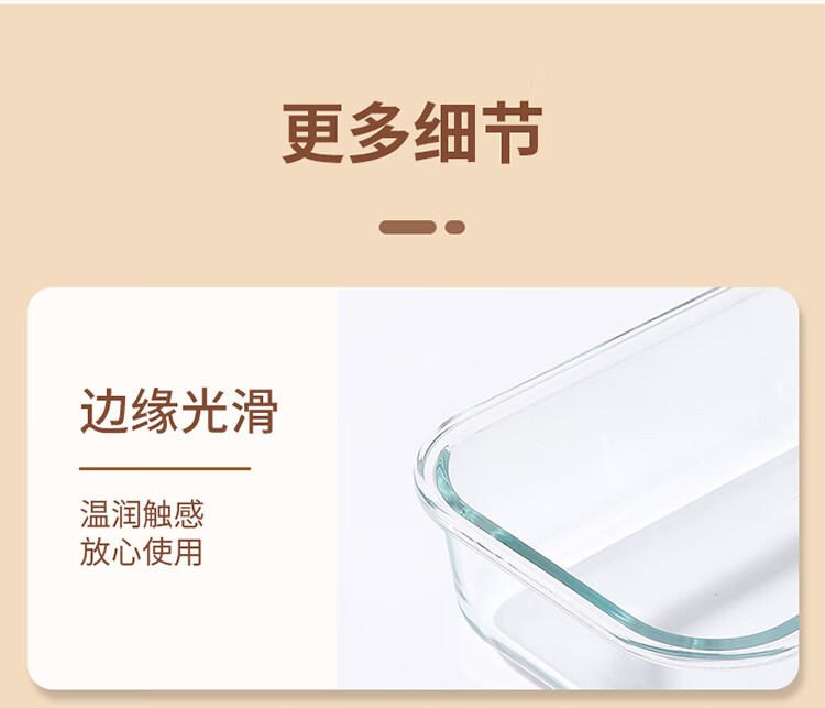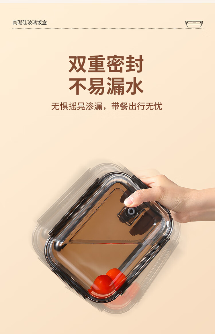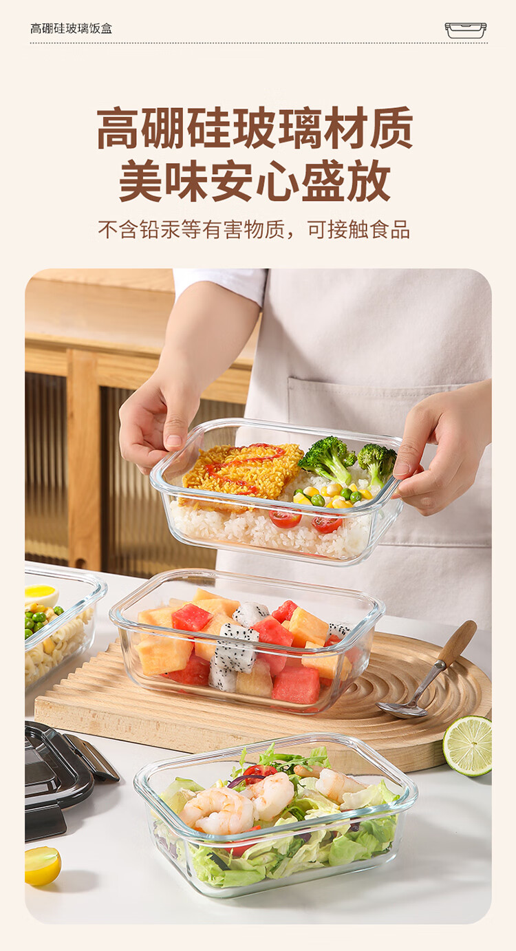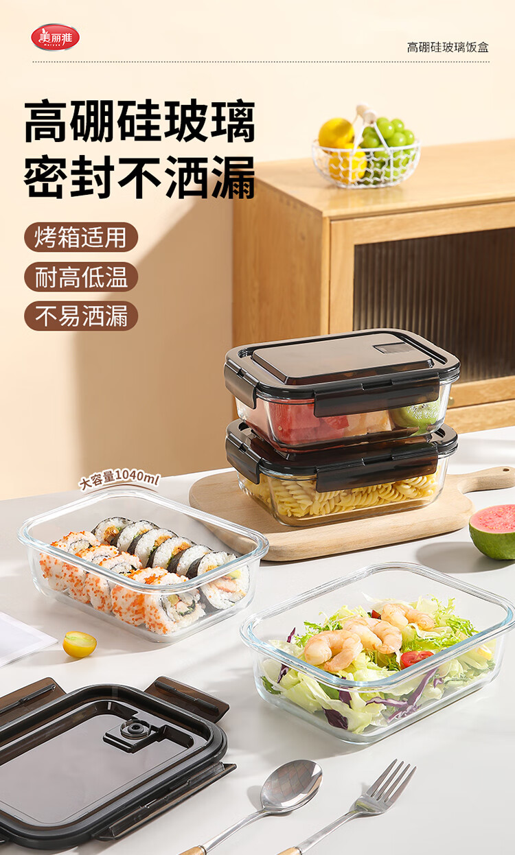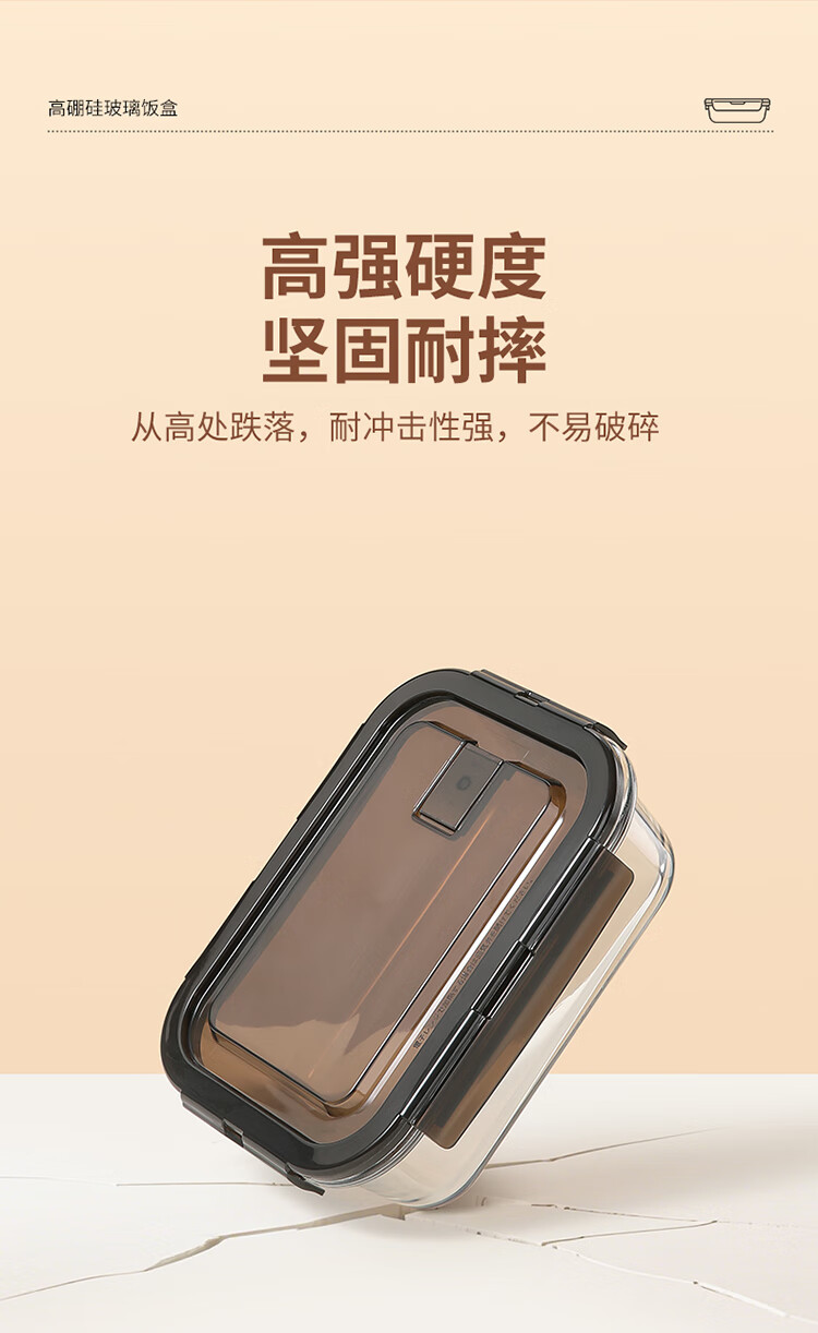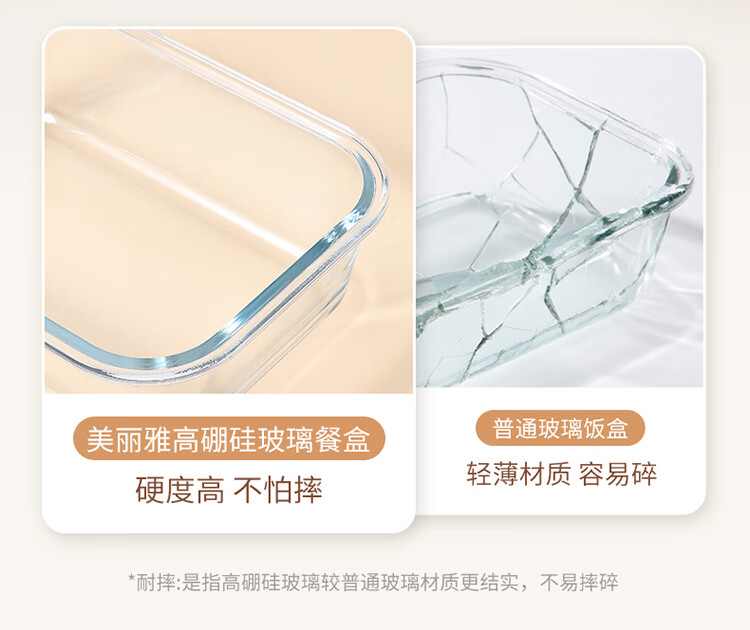美丽雅 饭盒可微波炉 高硼硅玻璃上班族带饭大容量便当保鲜盒 长方形 630ml 单件装