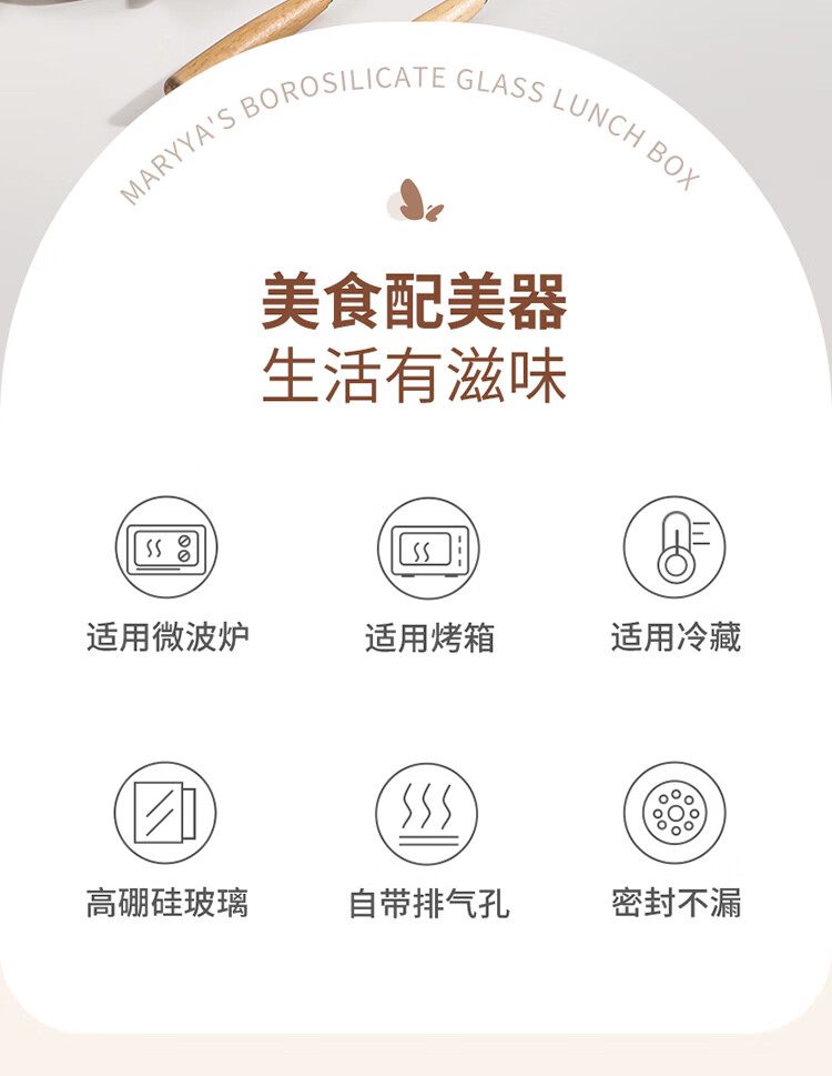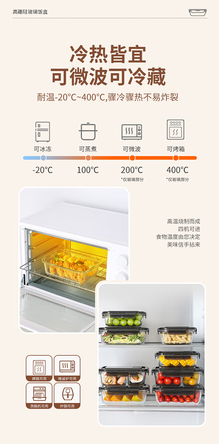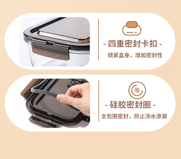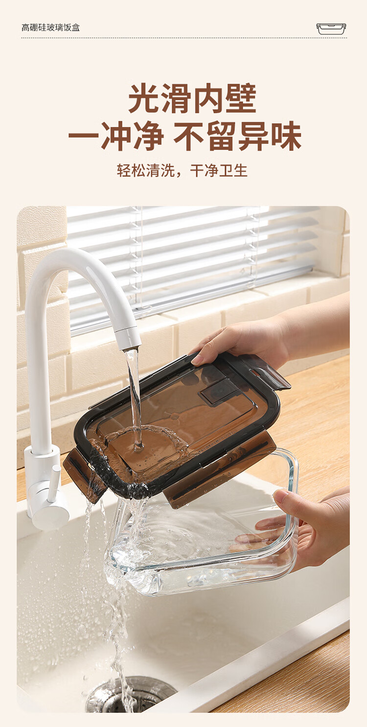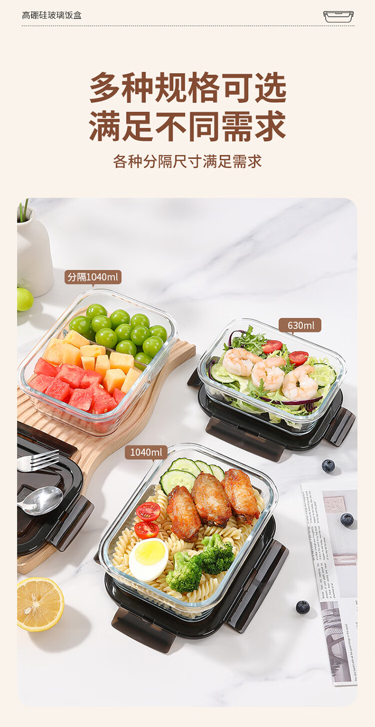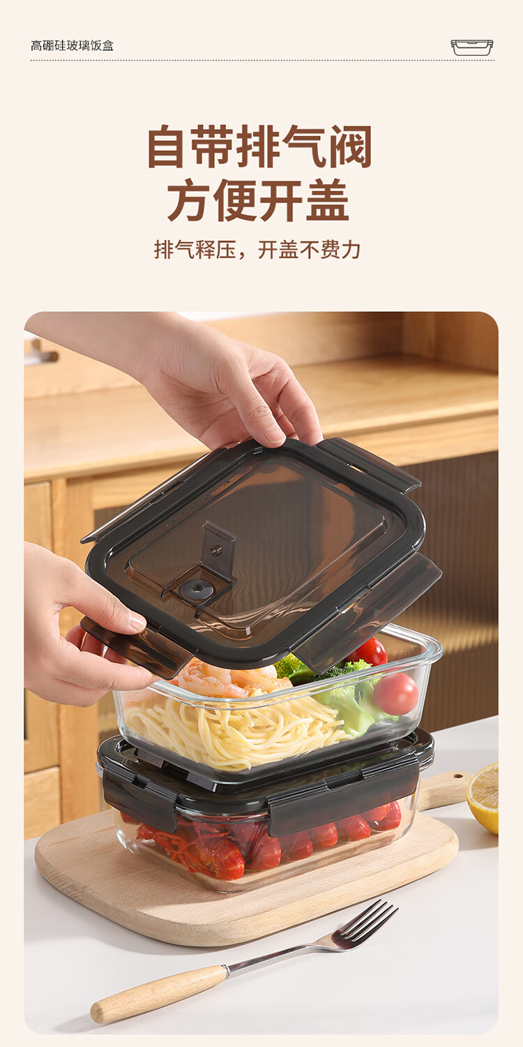 美丽雅 饭盒可微波炉 高硼硅玻璃上班族带饭大容量便当保鲜盒 长方形 630ml 单件装