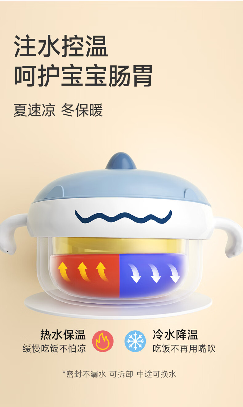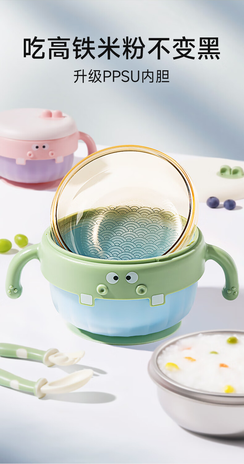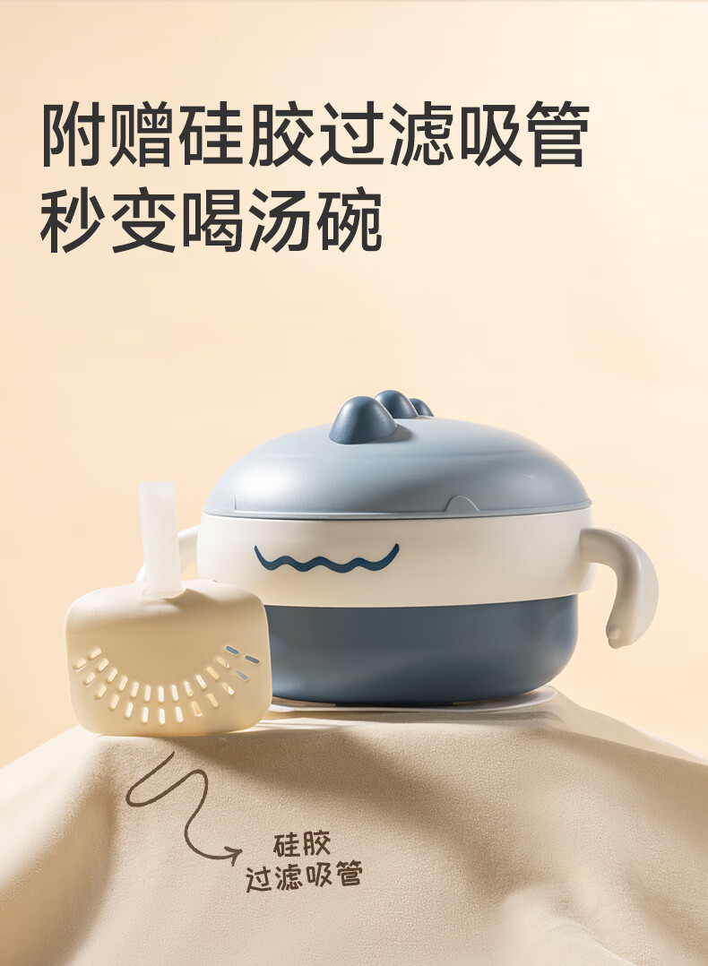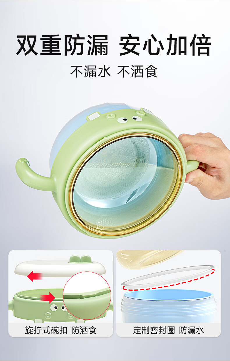 如山不锈钢宝宝辅食碗婴儿吃饭专用防摔防烫碗儿童餐具注水保温碗 恐龙米不锈钢内胆+过滤吸管