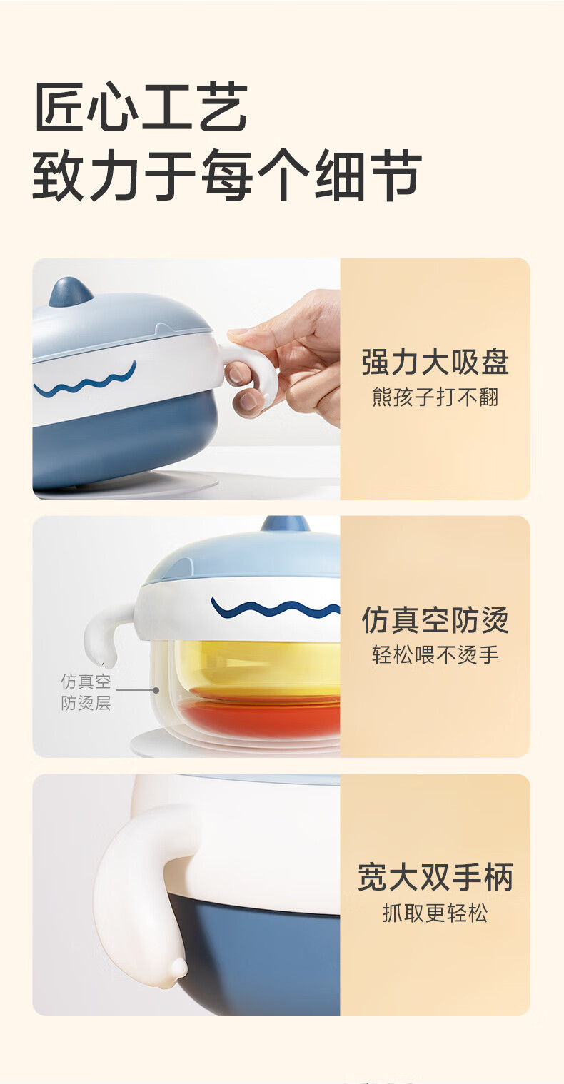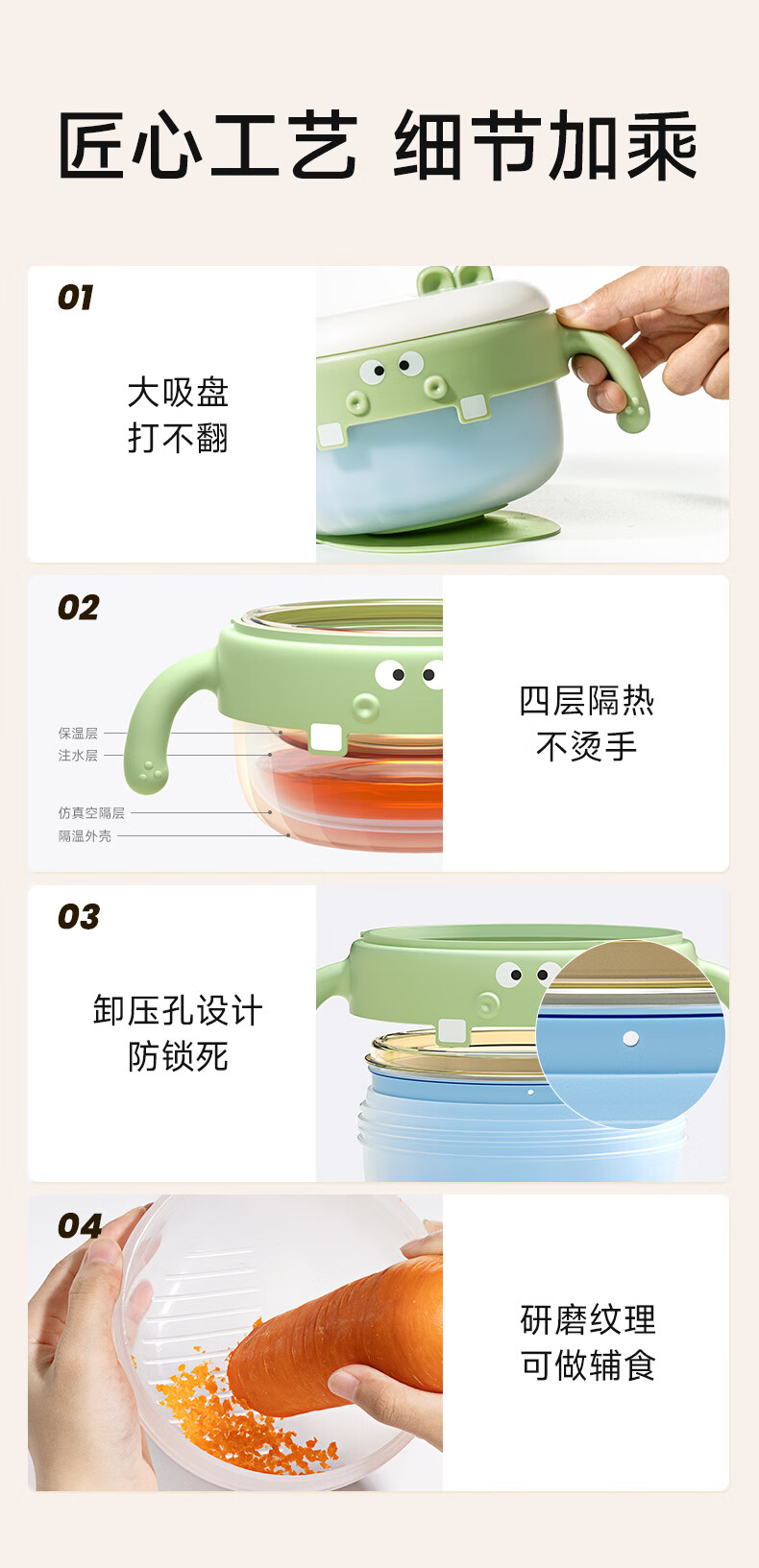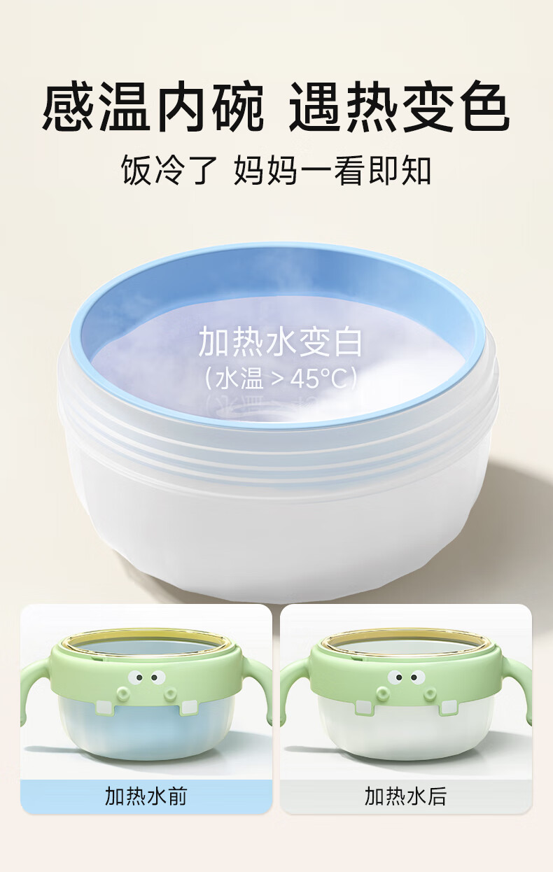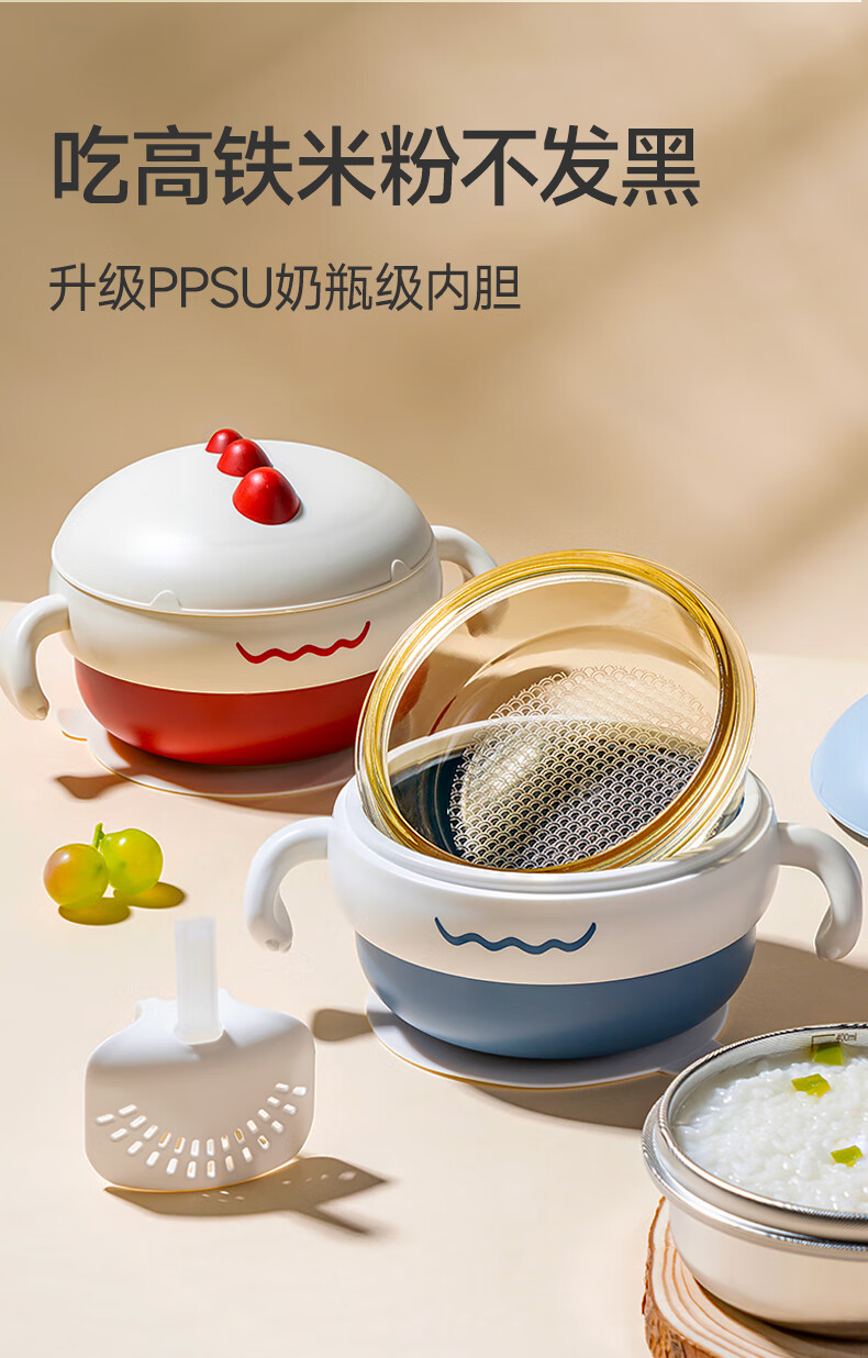 如山不锈钢宝宝辅食碗婴儿吃饭专用防摔防烫碗儿童餐具注水保温碗 恐龙米不锈钢内胆+过滤吸管