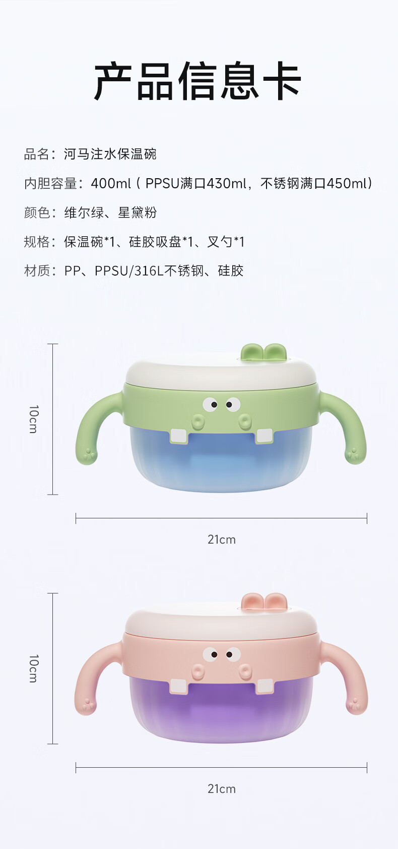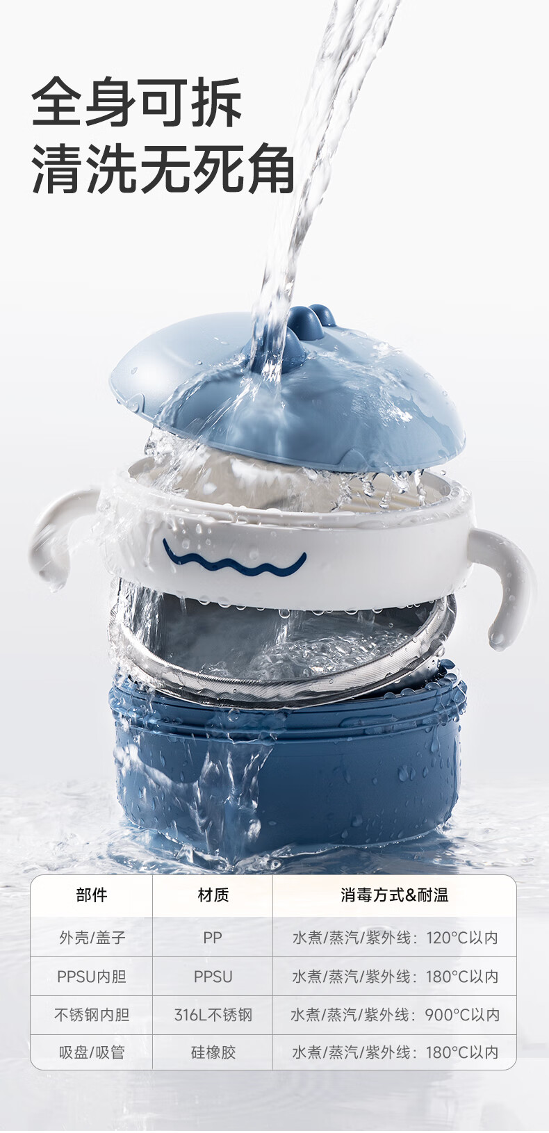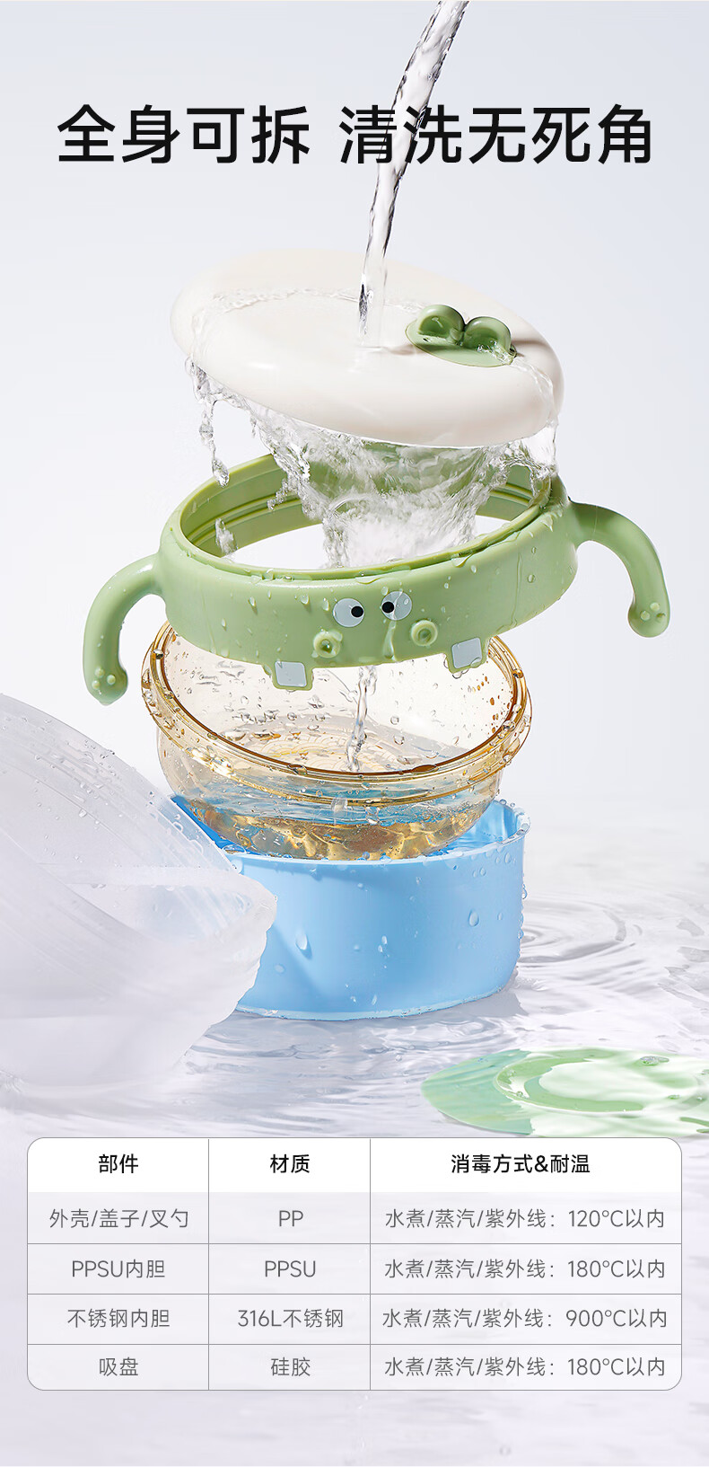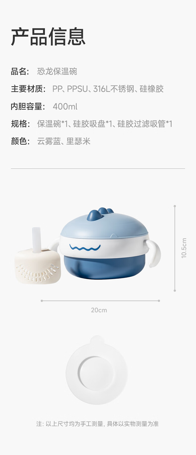 如山不锈钢宝宝辅食碗婴儿吃饭专用防摔防烫碗儿童餐具注水保温碗 恐龙米不锈钢内胆+过滤吸管
