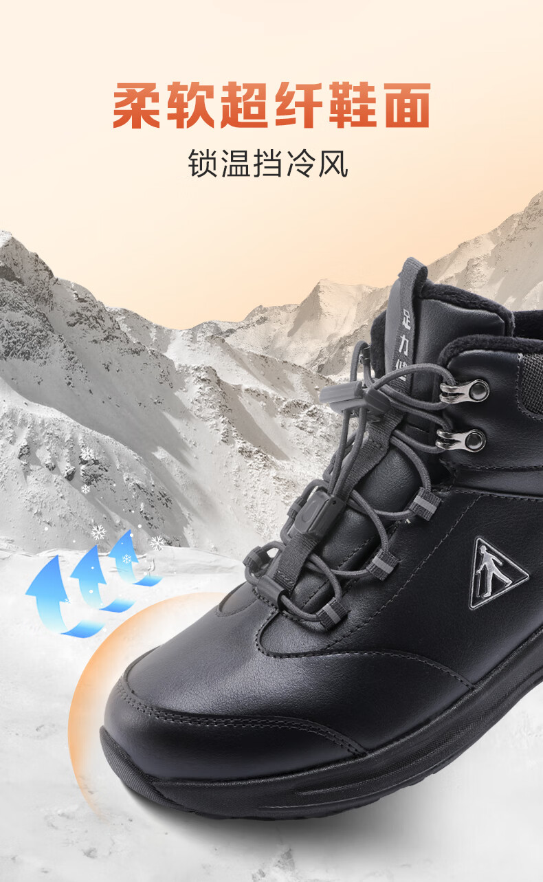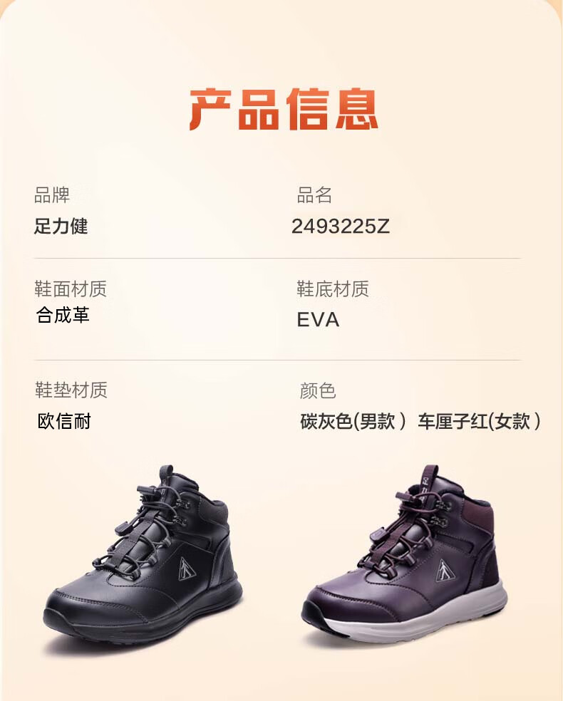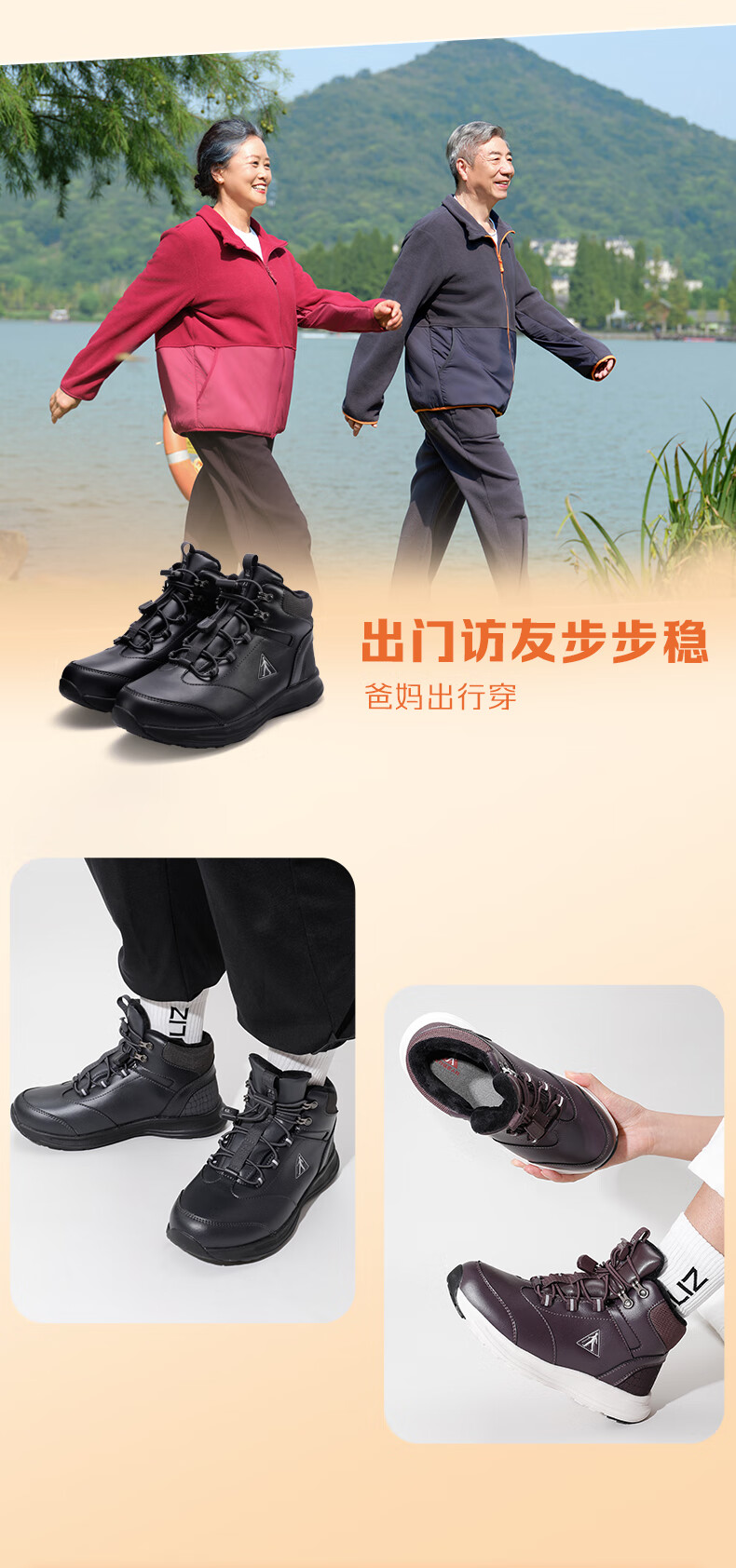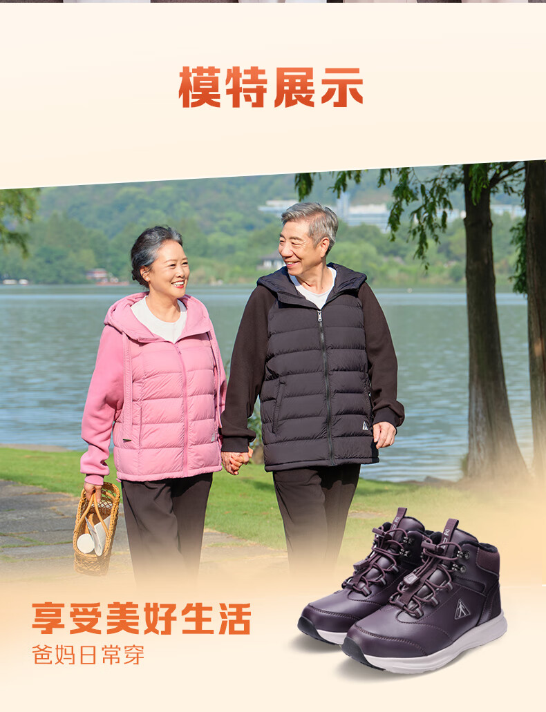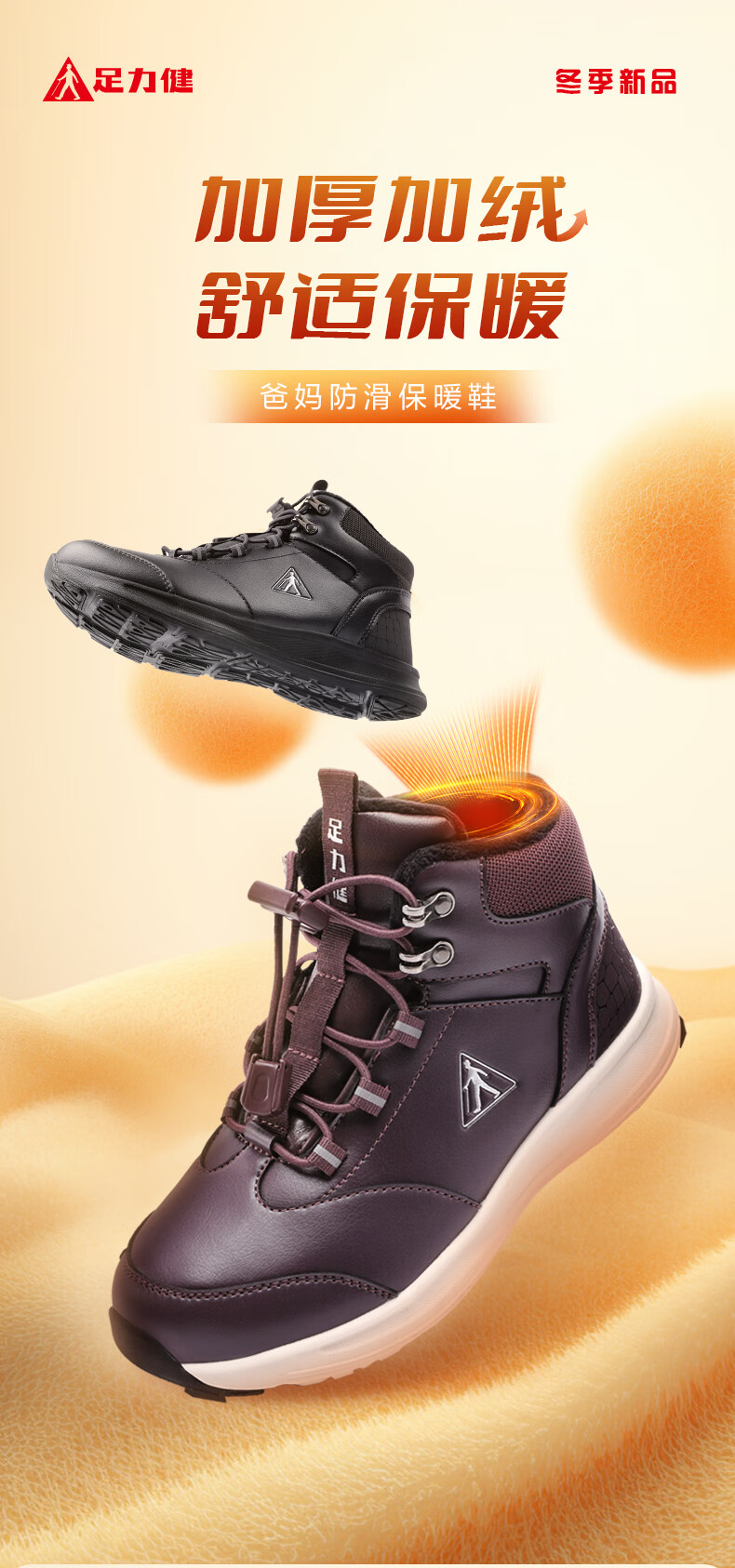 足力健防水防滑加绒加厚保暖鞋老人鞋冬季散步运动鞋 2493225Z女紫红 37