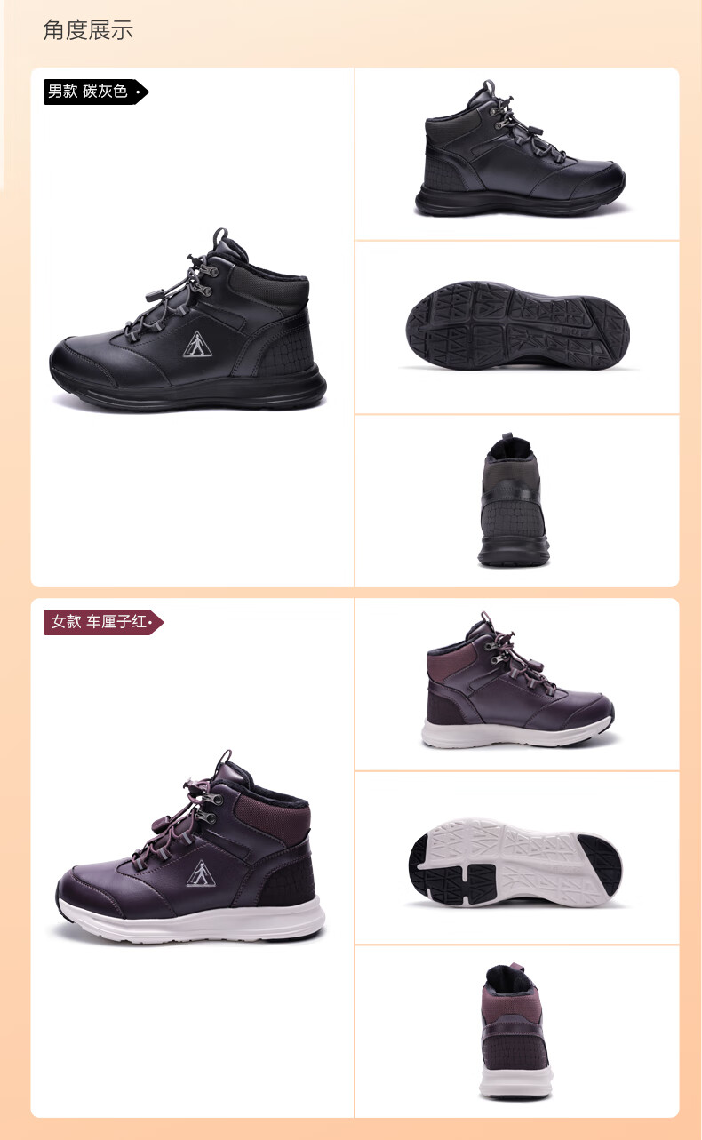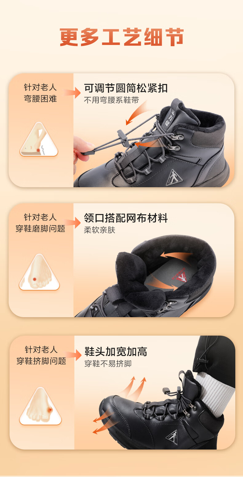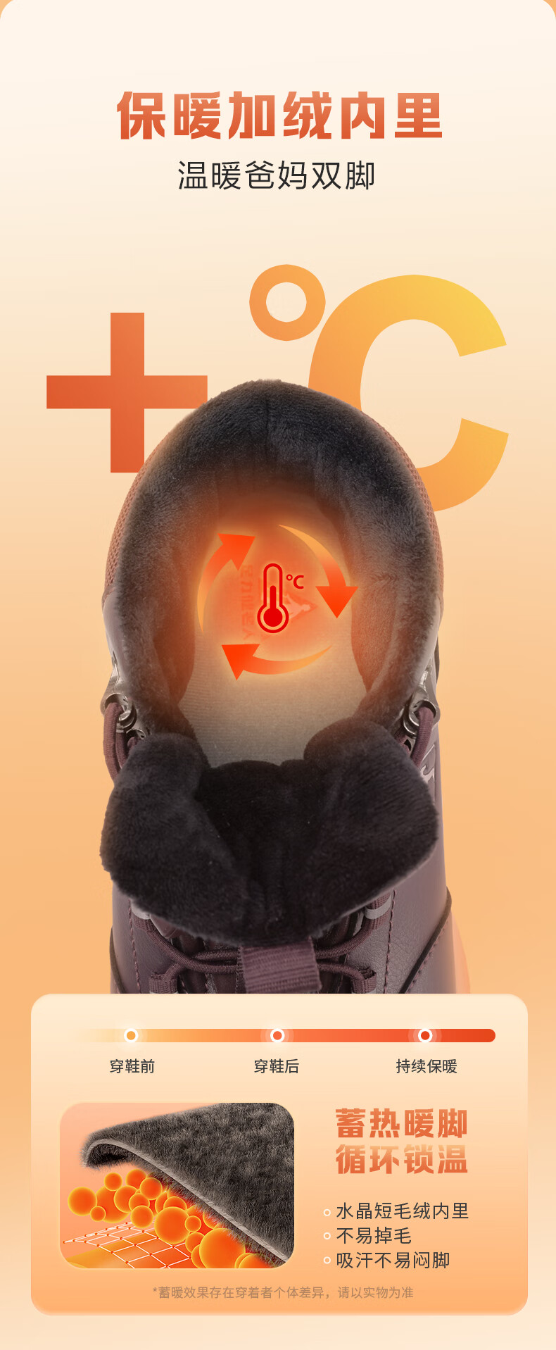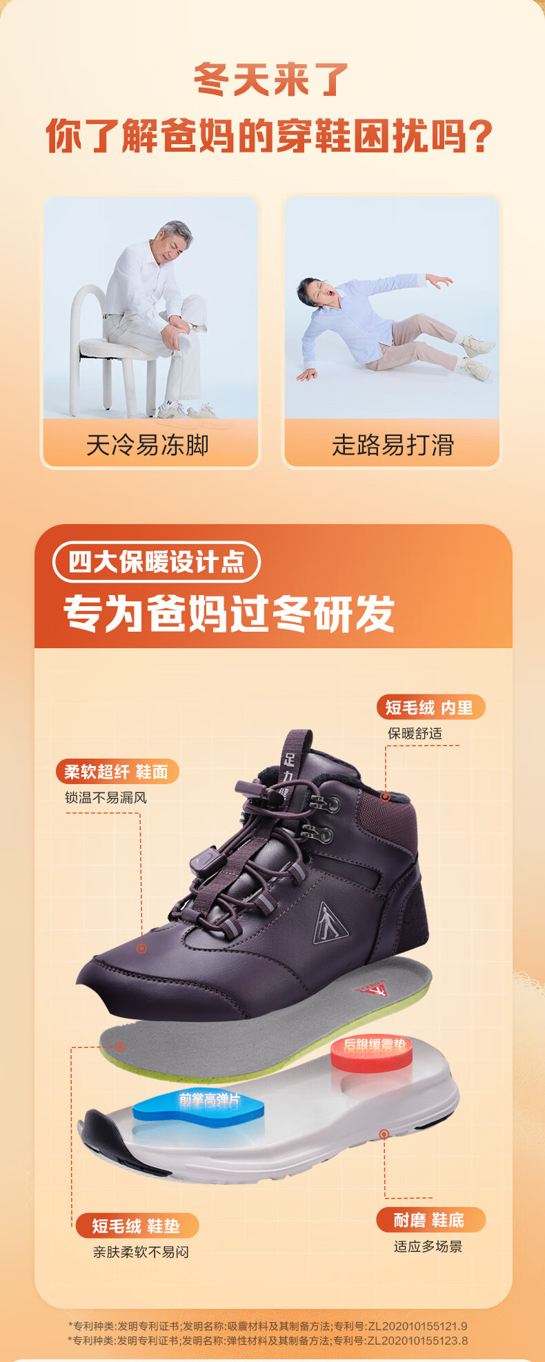 足力健防水防滑加绒加厚保暖鞋老人鞋冬季散步运动鞋 2493225Z女紫红 37