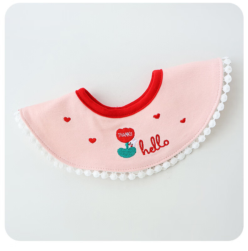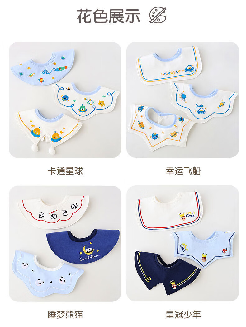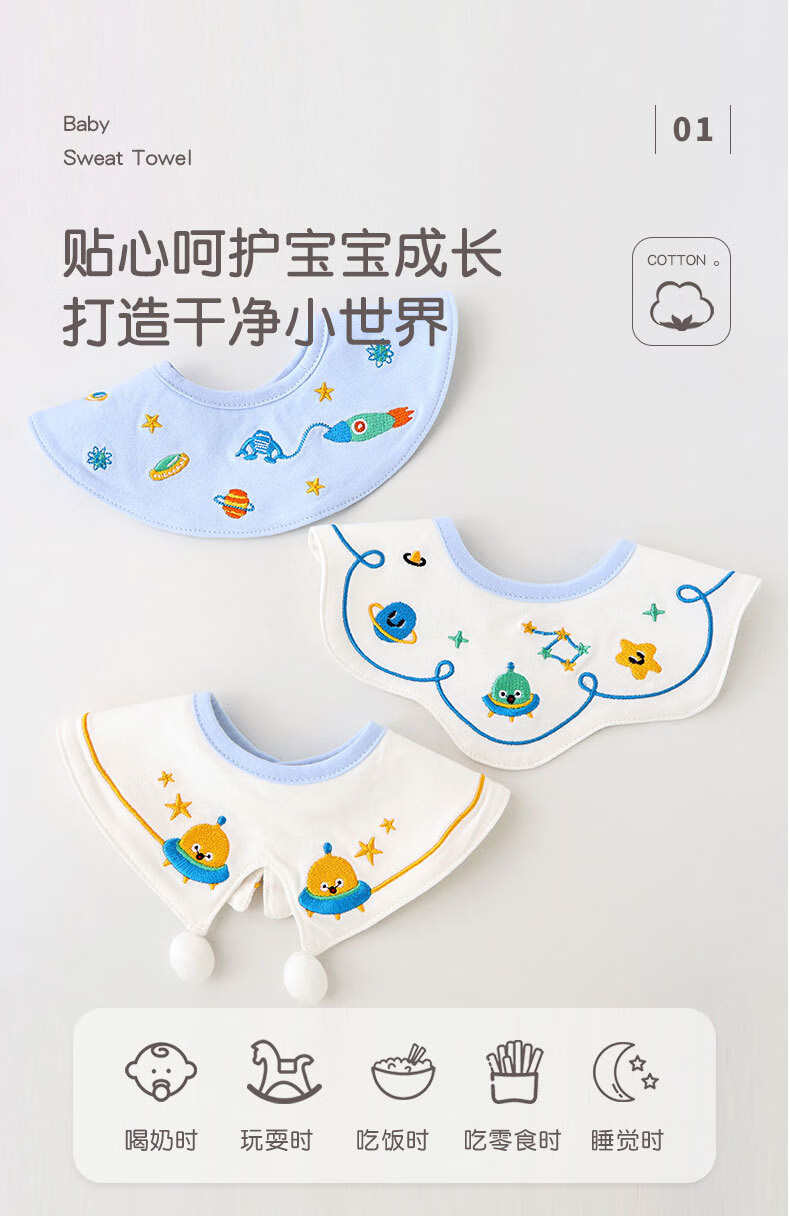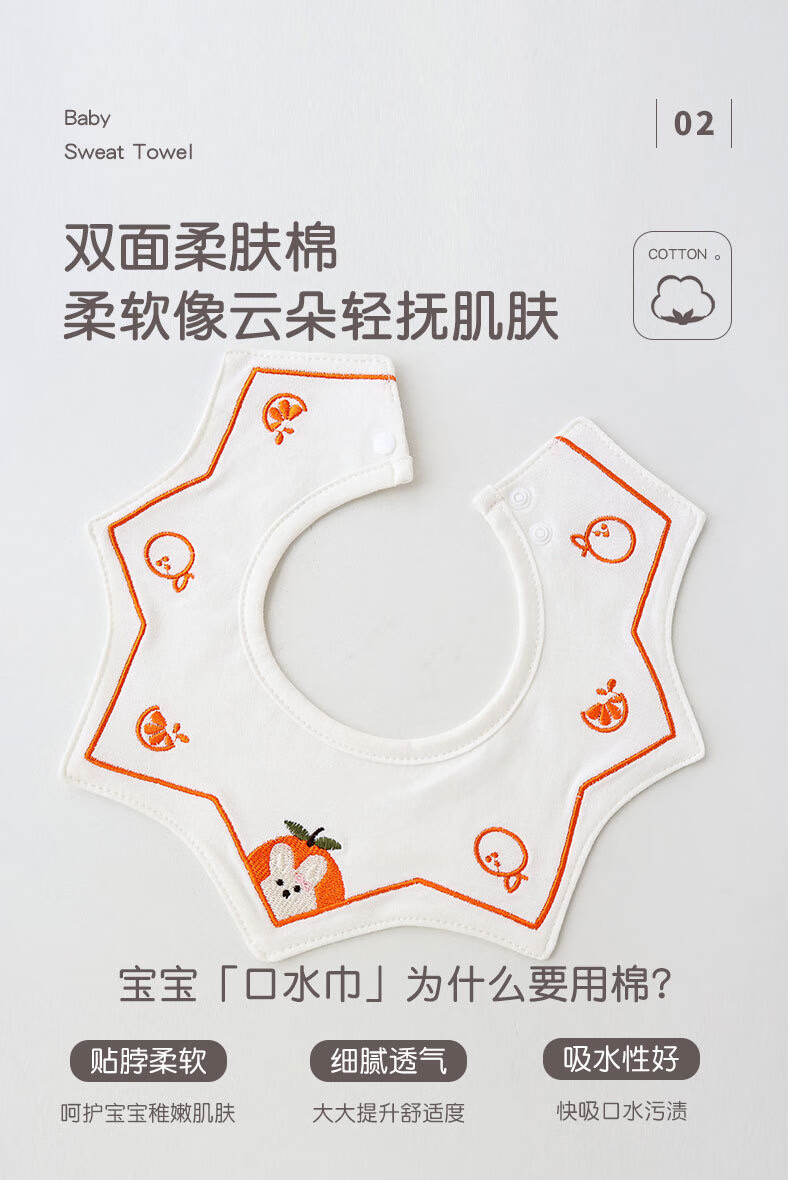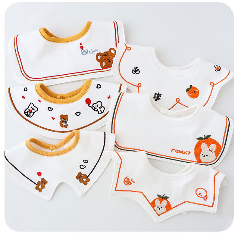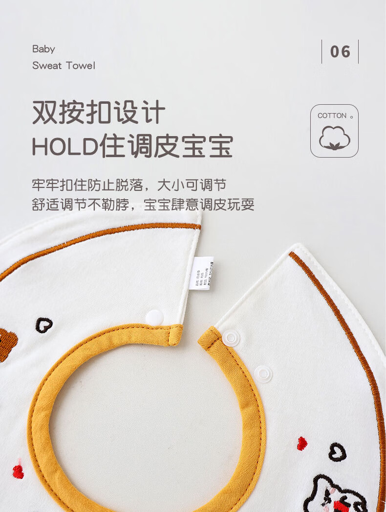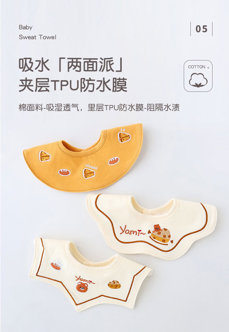 婴儿围嘴a类纯棉防吐奶口水巾TPU防水可旋转使用吃饭宝宝围兜卡通 薯条汉堡
