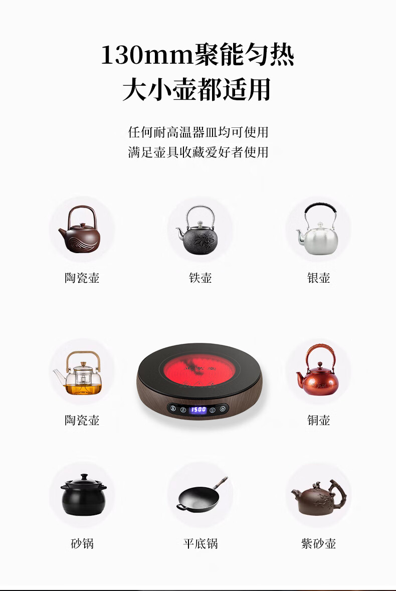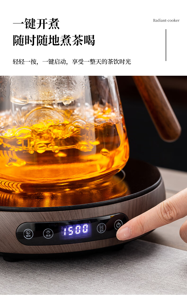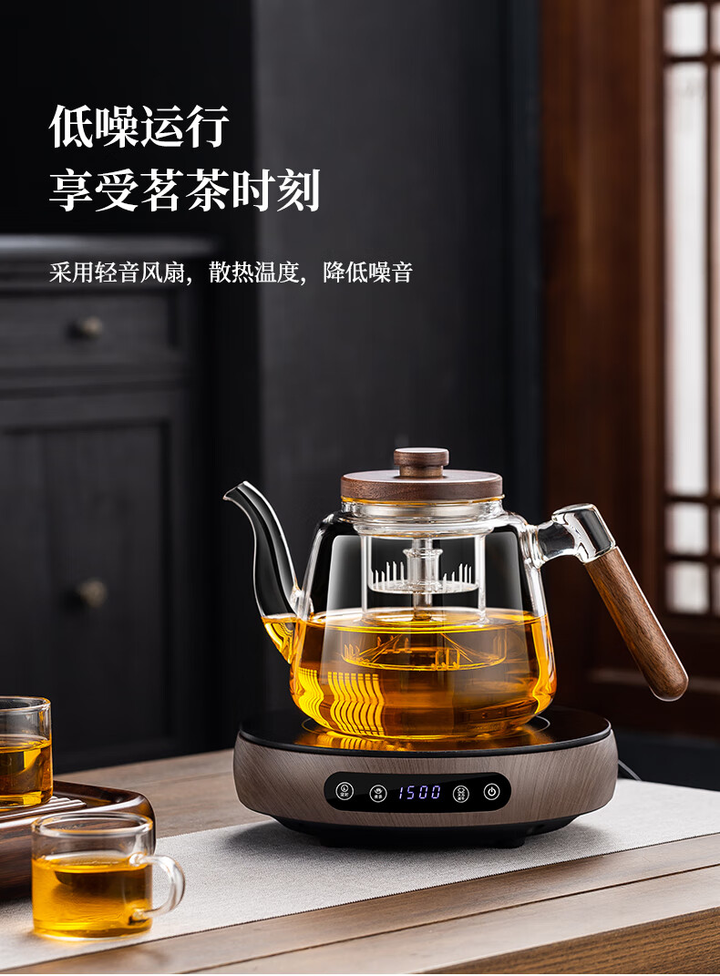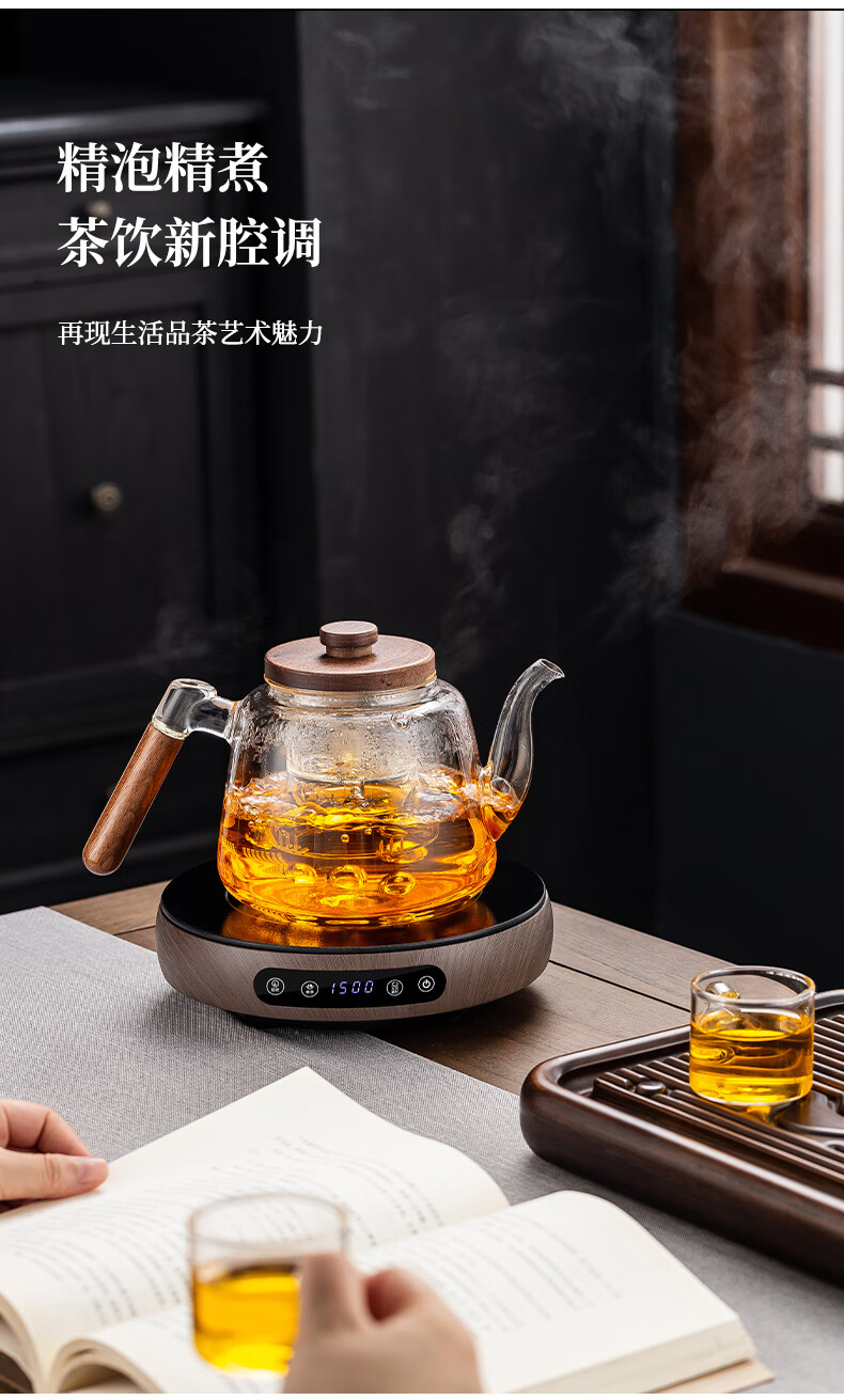 Count Qiabei日本进口品质高硼硅玻璃蒸煮茶壶胡桃木泡茶壶电陶炉养生壶家用小 烟灰胡桃木把壶+智能木纹炉 1500 901mL(含)-1L(含)