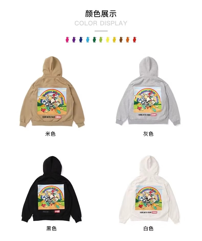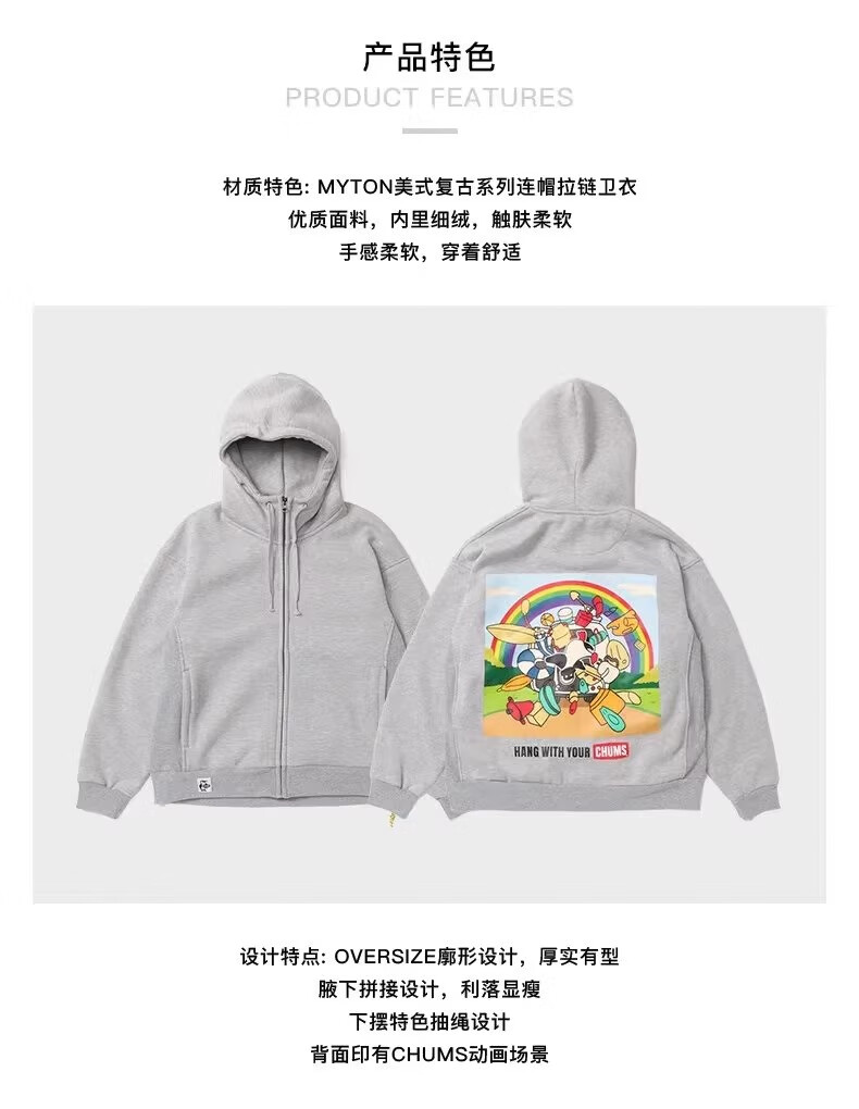 CHUMS洽洽鸟美式复古情侣连帽印花宽松加绒卫衣开衫CH00-1357 白色W001 XL