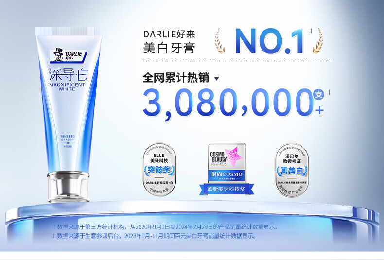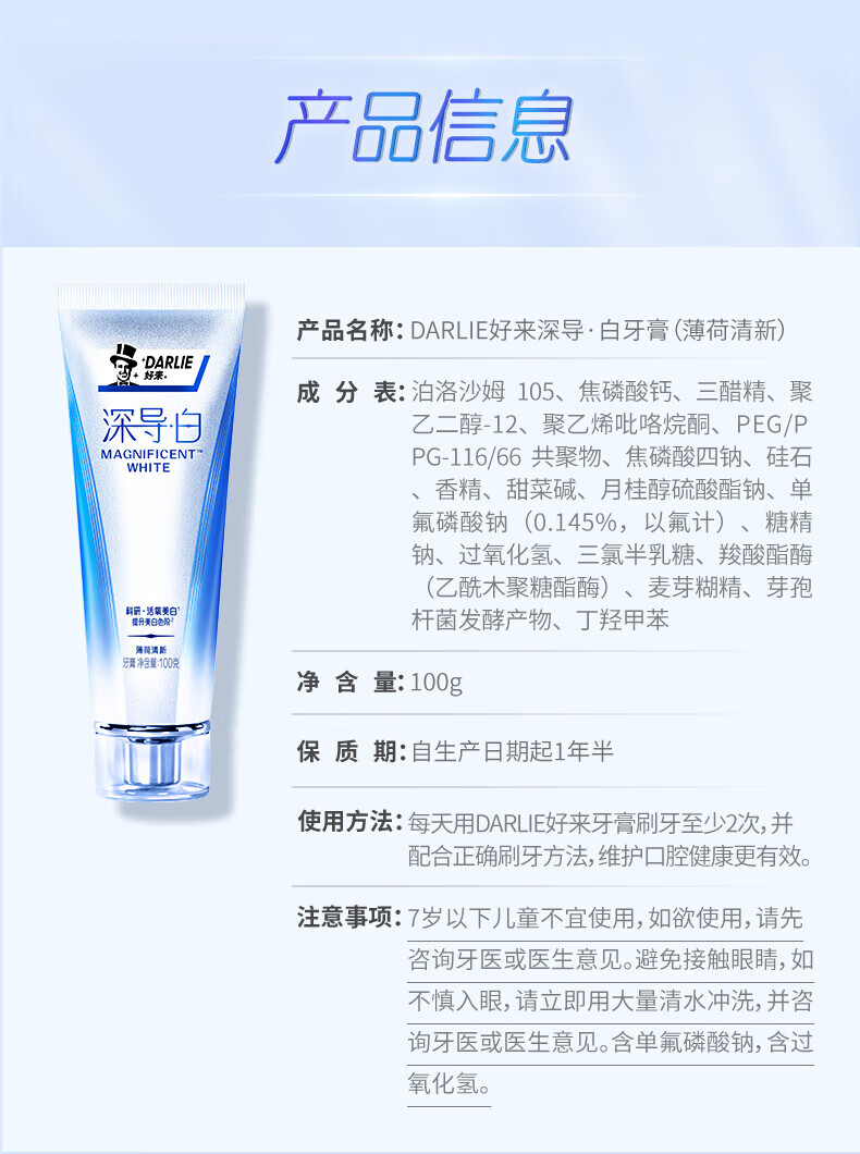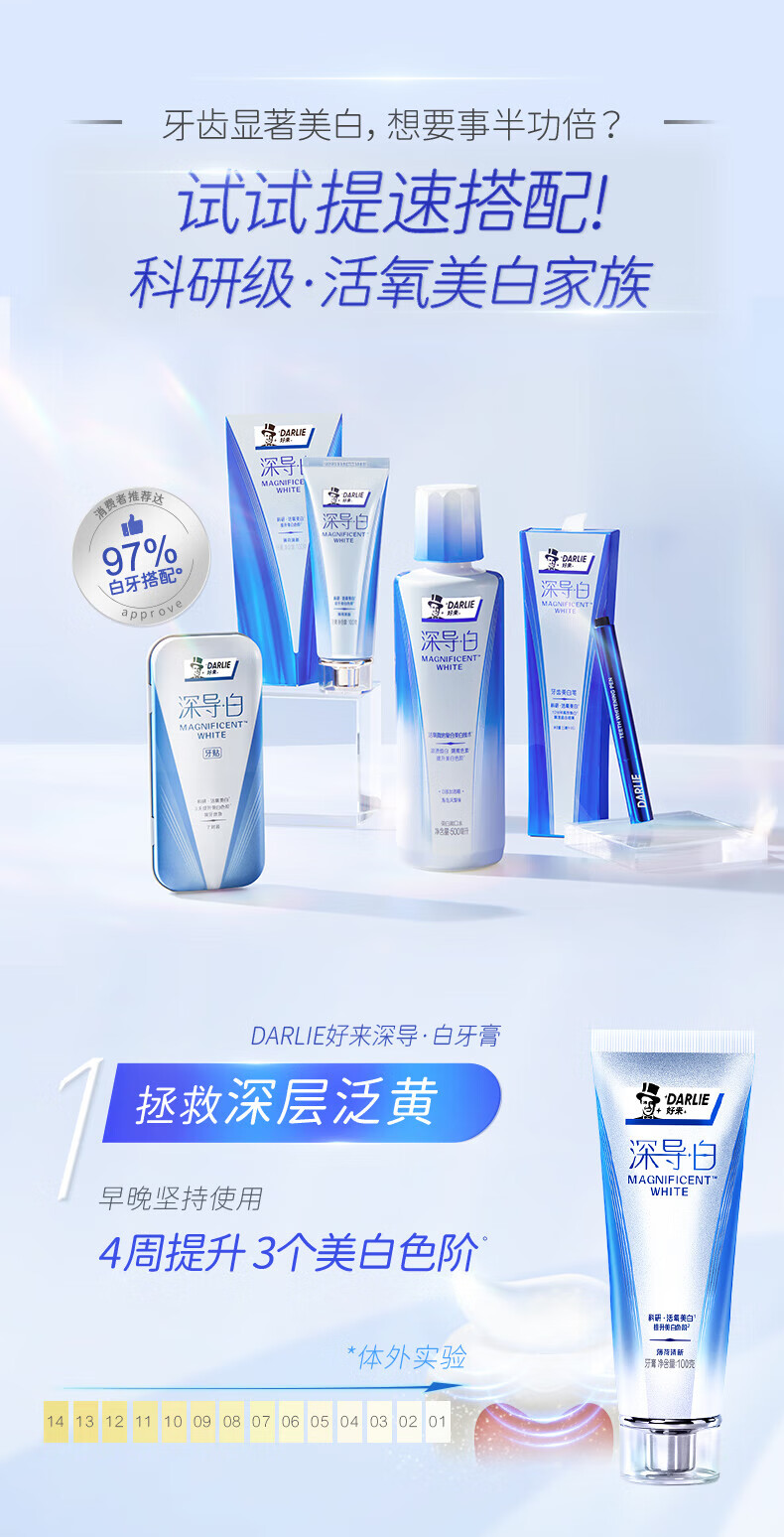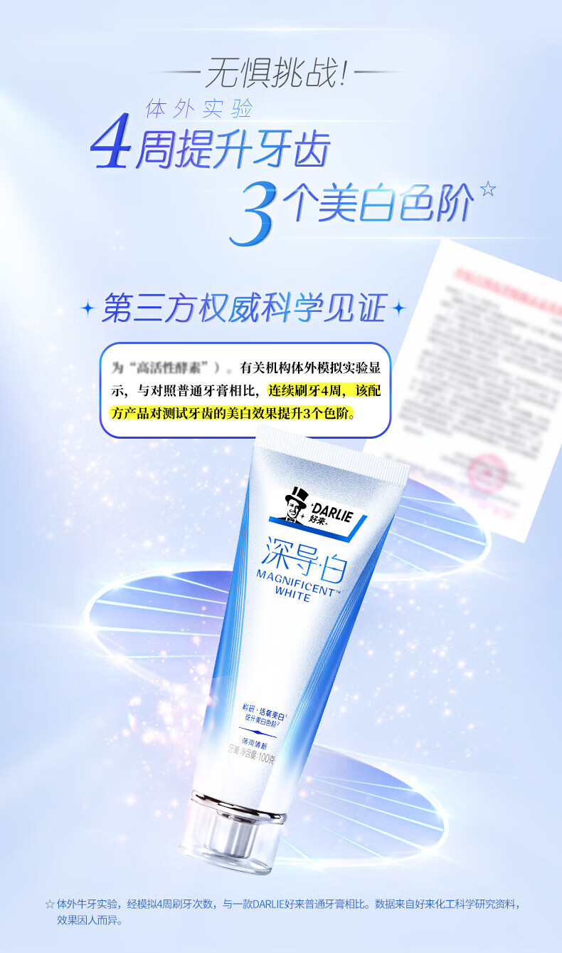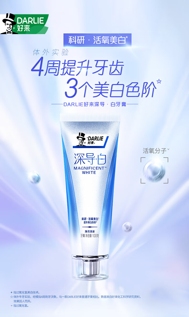 好来(DARLIE)(原黑人)深导白牙膏亮白牙齿含氟防蛀清新口气品牌 深导白 100g*1支