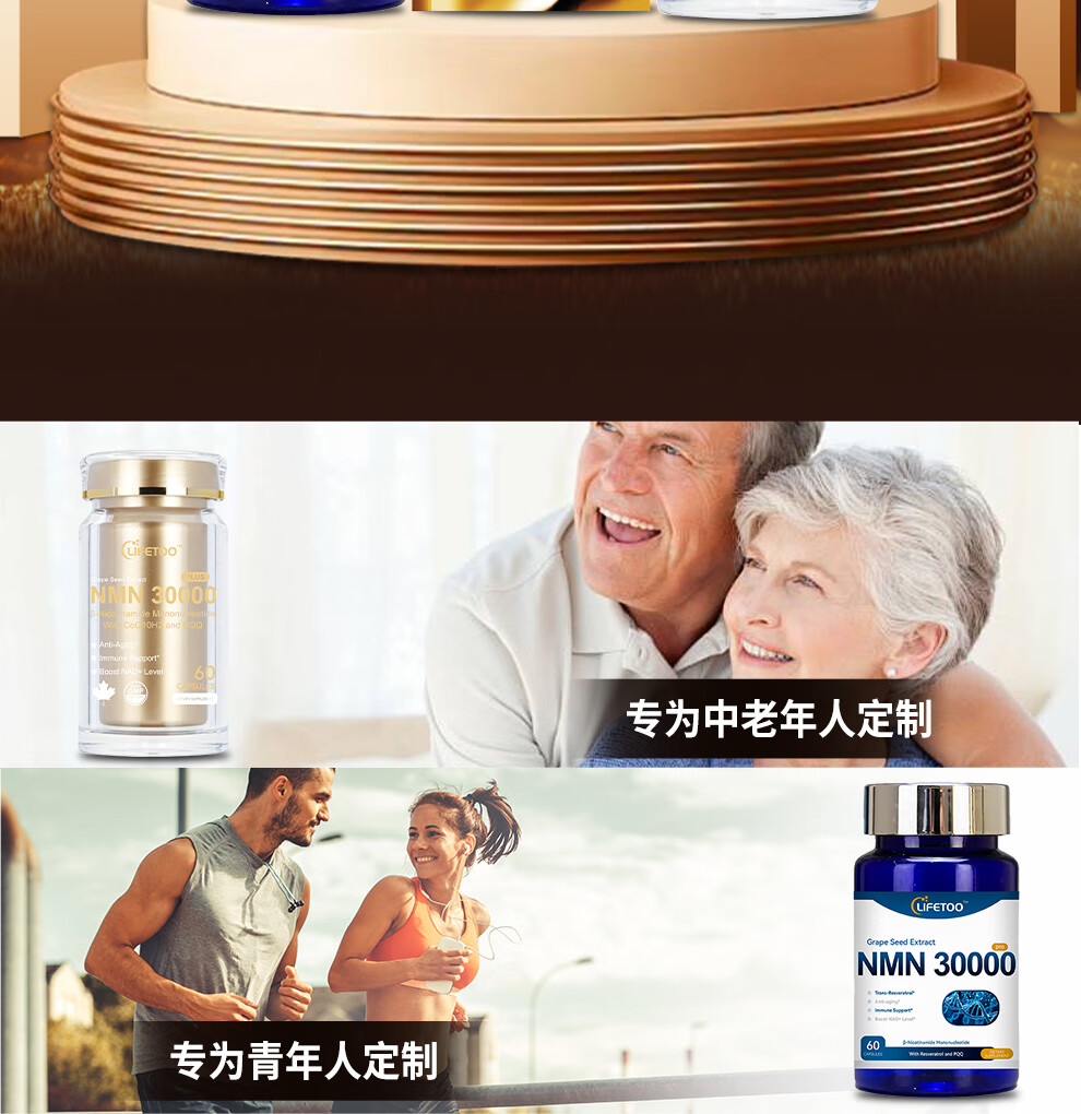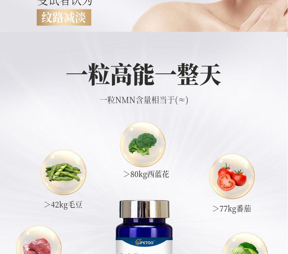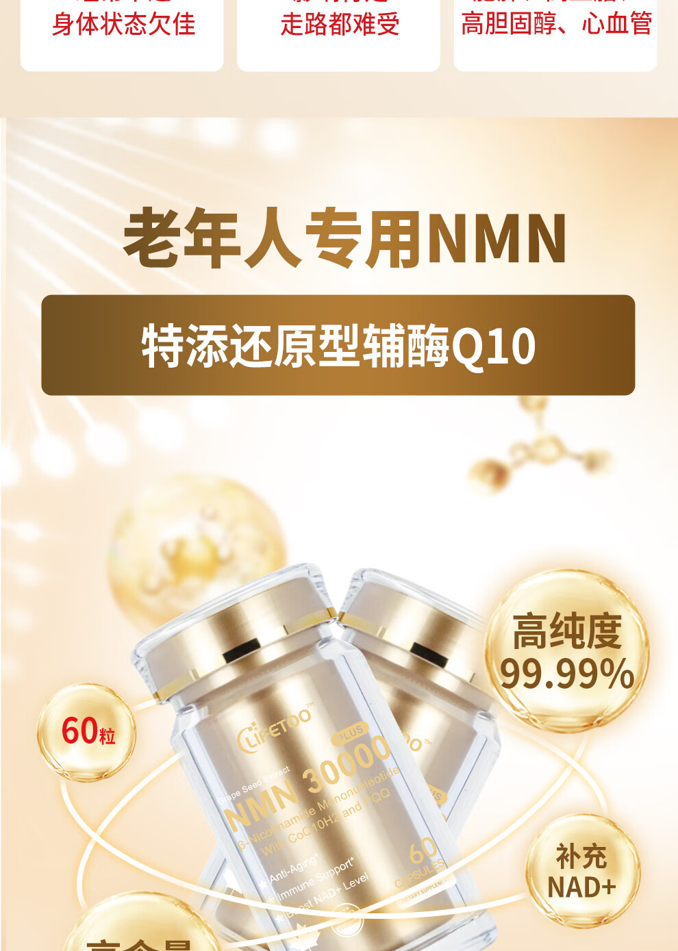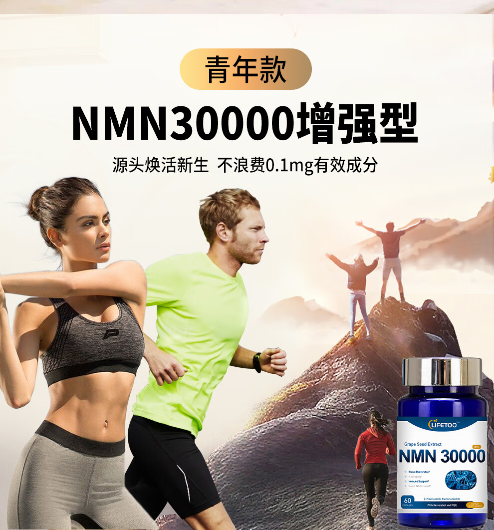 lifetoo增强型β-nmn30000激活细胞长寿因子补充nad+抗衰老pqq还原年轻态 6粒*1盒 NMNPLUS*金纯