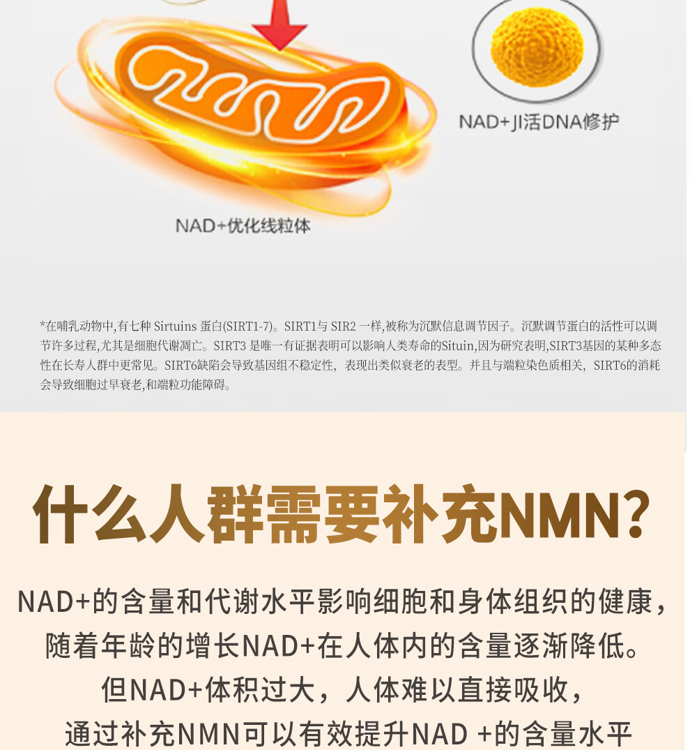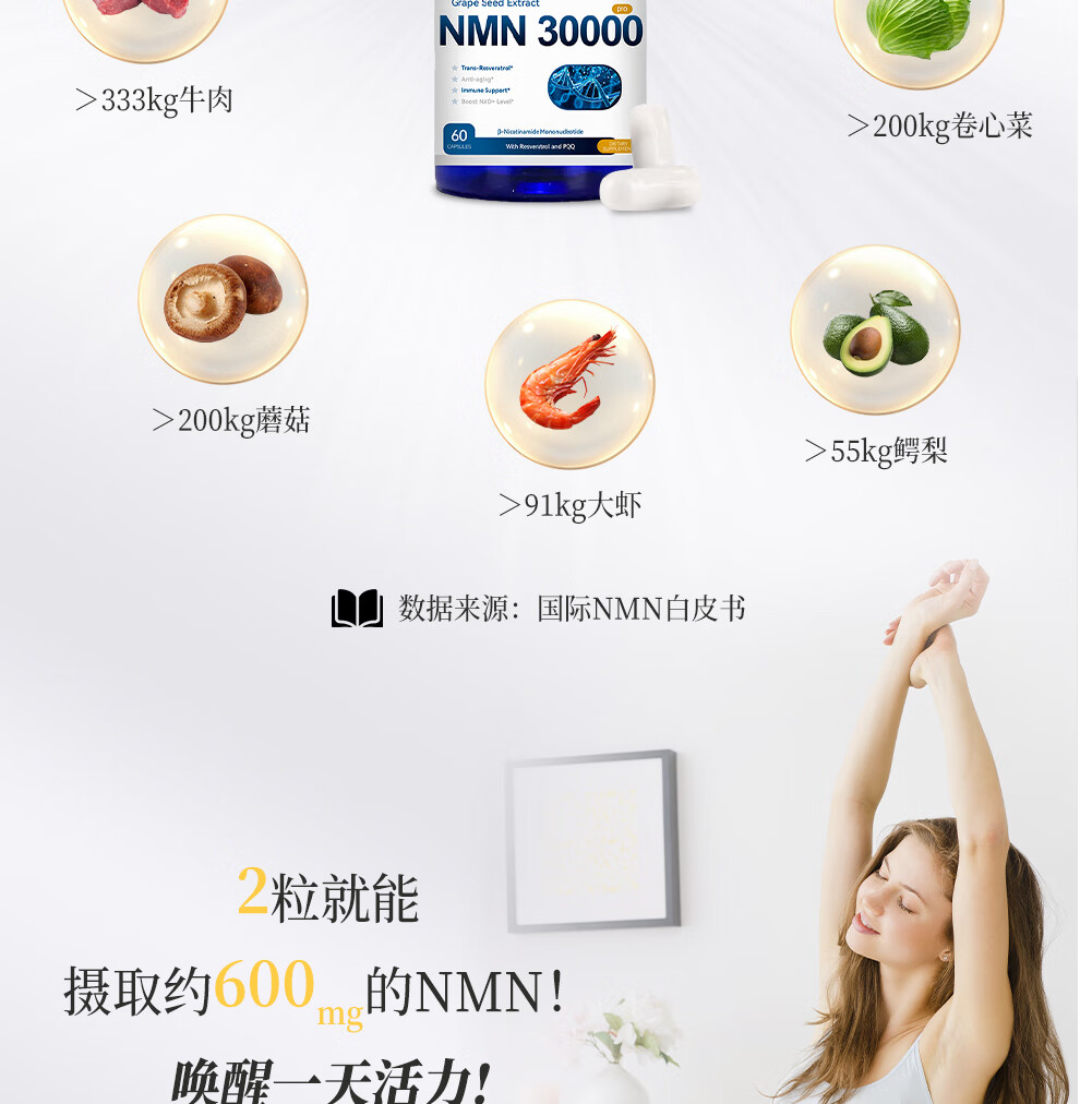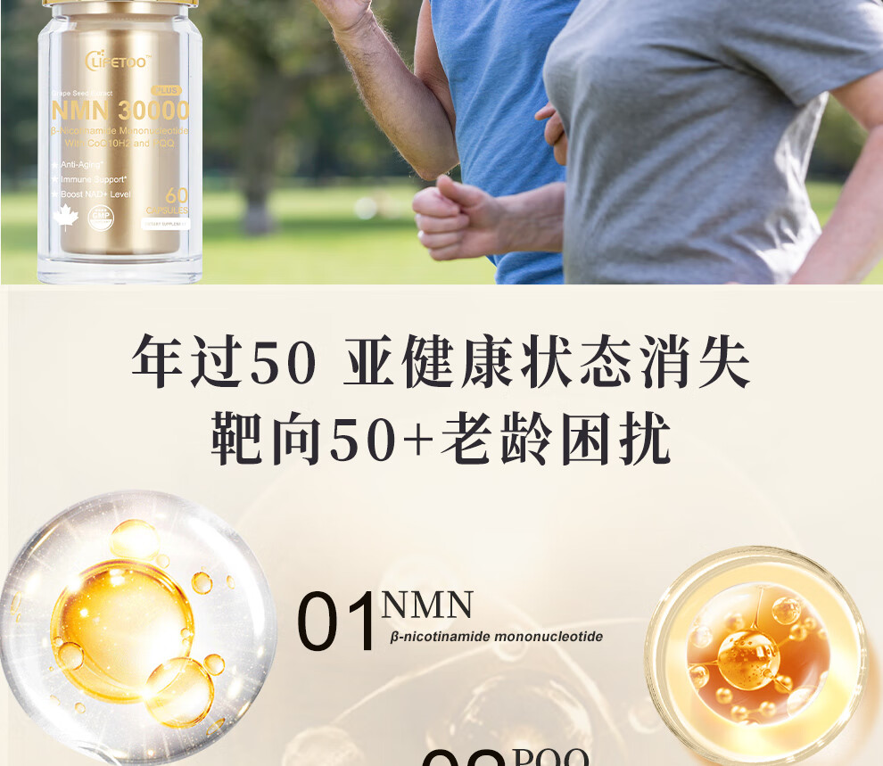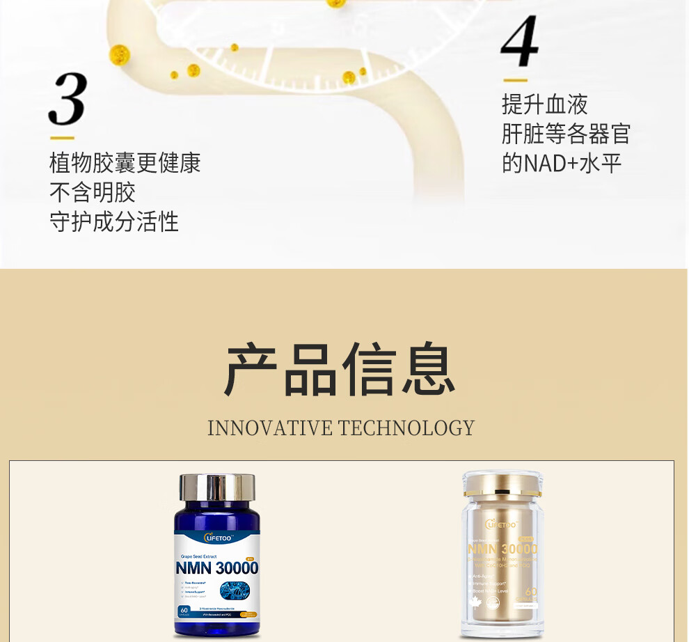 lifetoo增强型β-nmn30000激活细胞长寿因子补充nad+抗衰老pqq还原年轻态 6粒*1盒 NMNPLUS*金纯