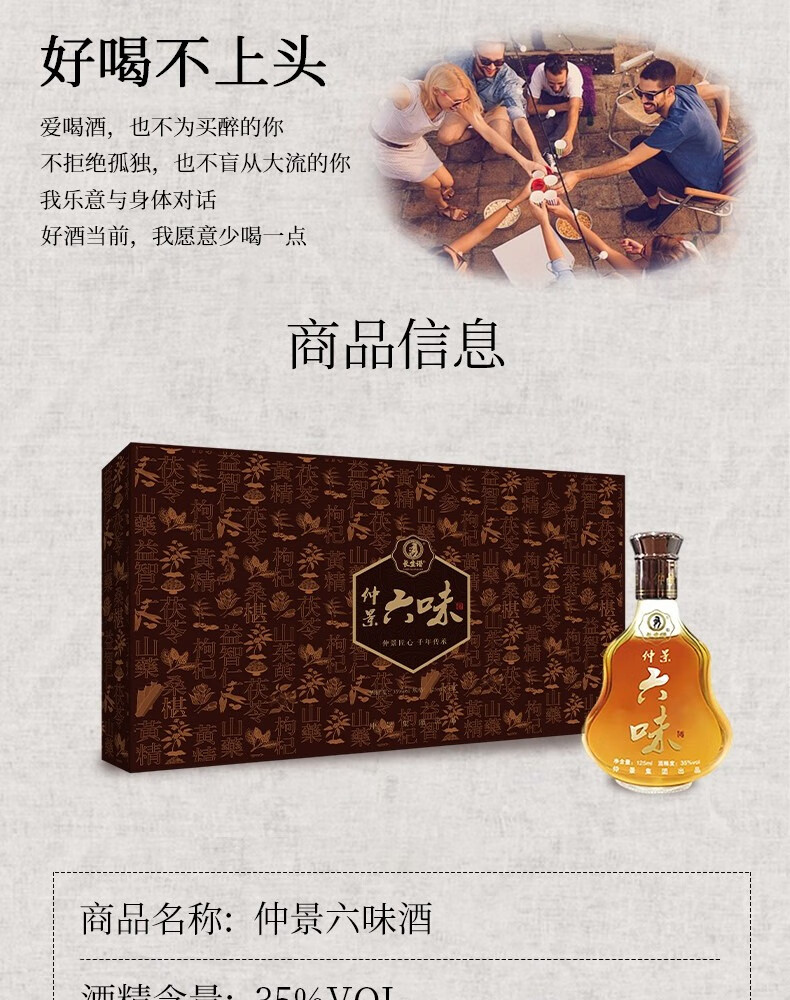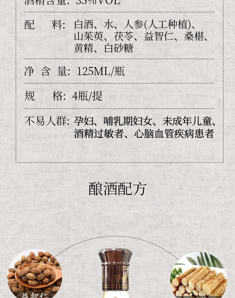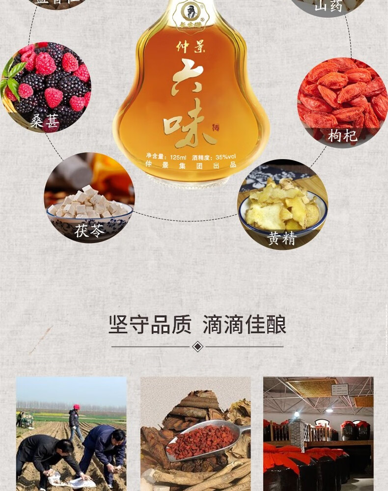 长生谱仲景六味 仲景集团出品 黄精人参酒125*4 礼盒装 35度 500mL 4瓶