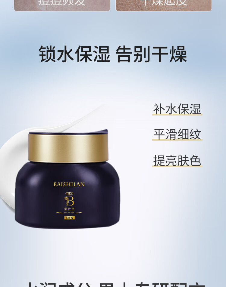 佰仕兰(baishilan) 男士面霜乳液素颜高保湿霜补水保湿倍润护肤品擦脸油男生专用50g