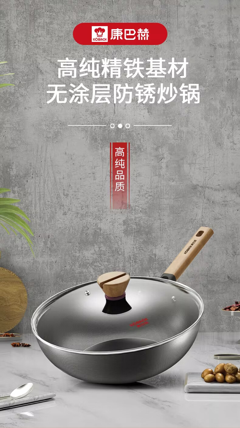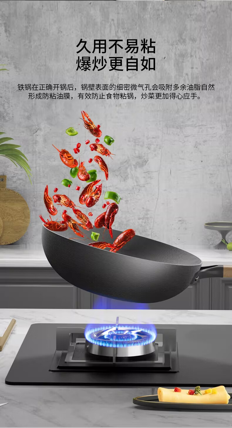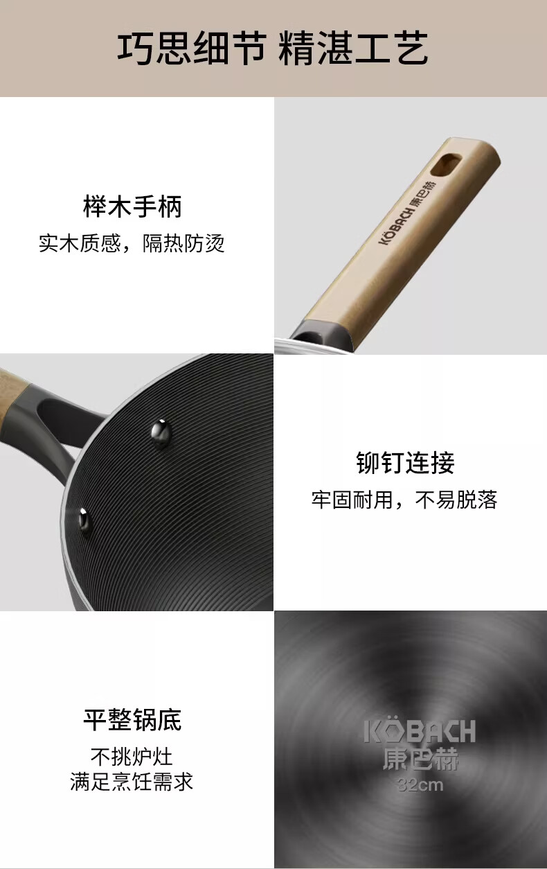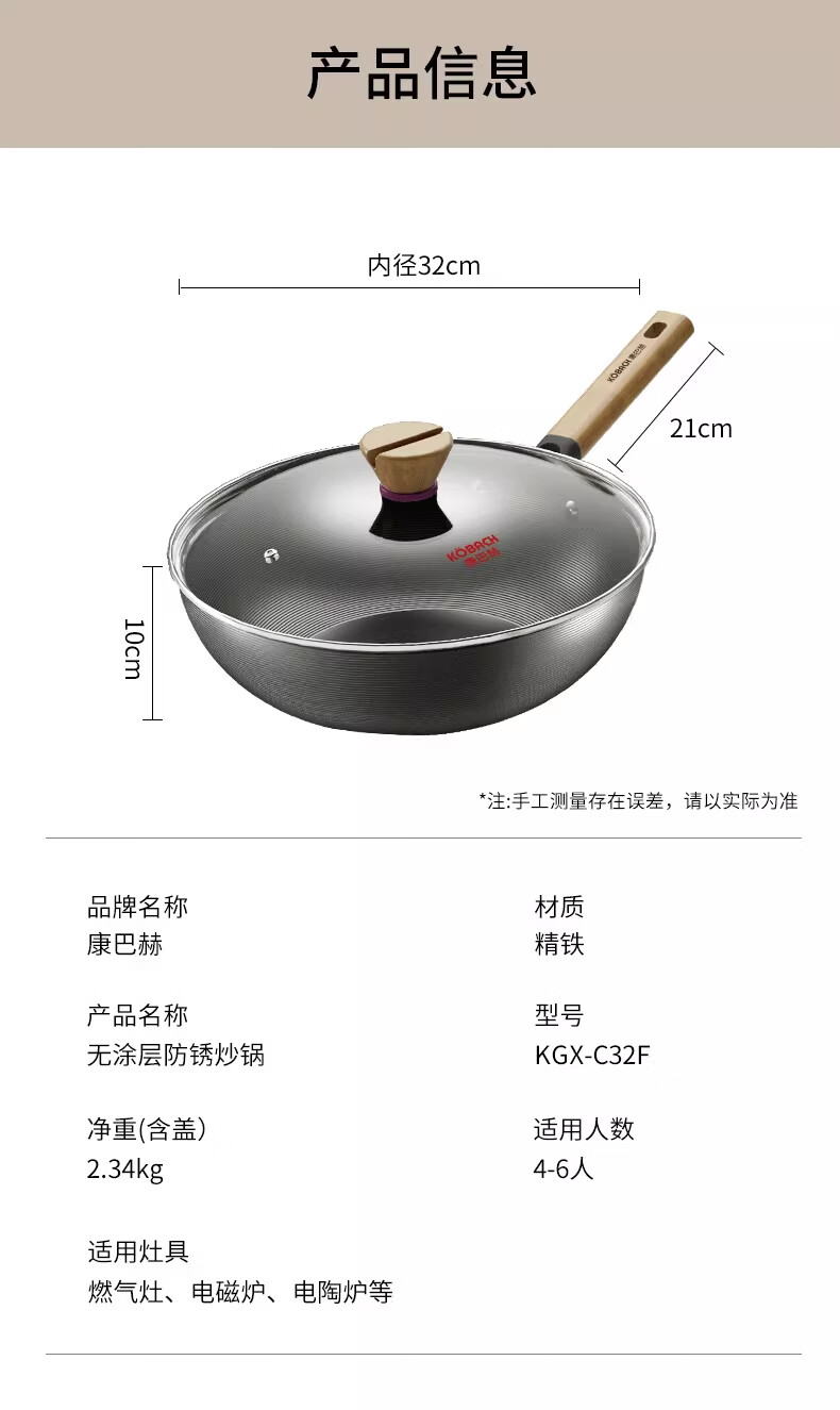 康巴赫炒锅含钛不粘锅精铁无涂层家用煎炒一体平底锅电磁炉燃气炉灶通用 【100%精铁】适合3-5人 32cm 【三次开锅发货|不粘不锈|好养锅】