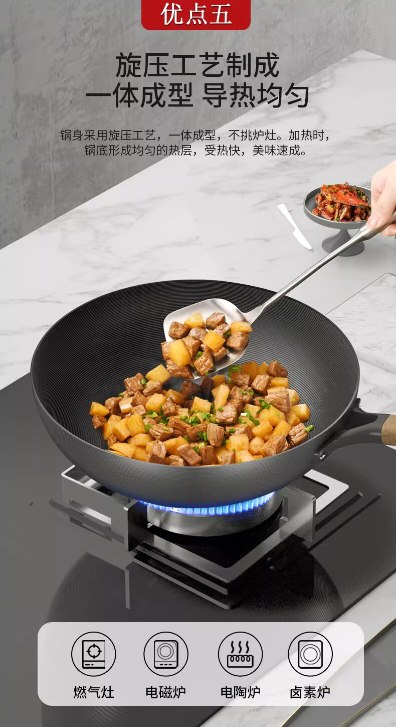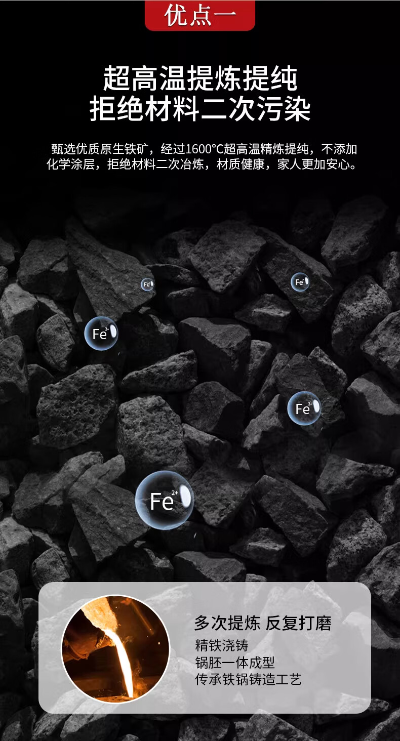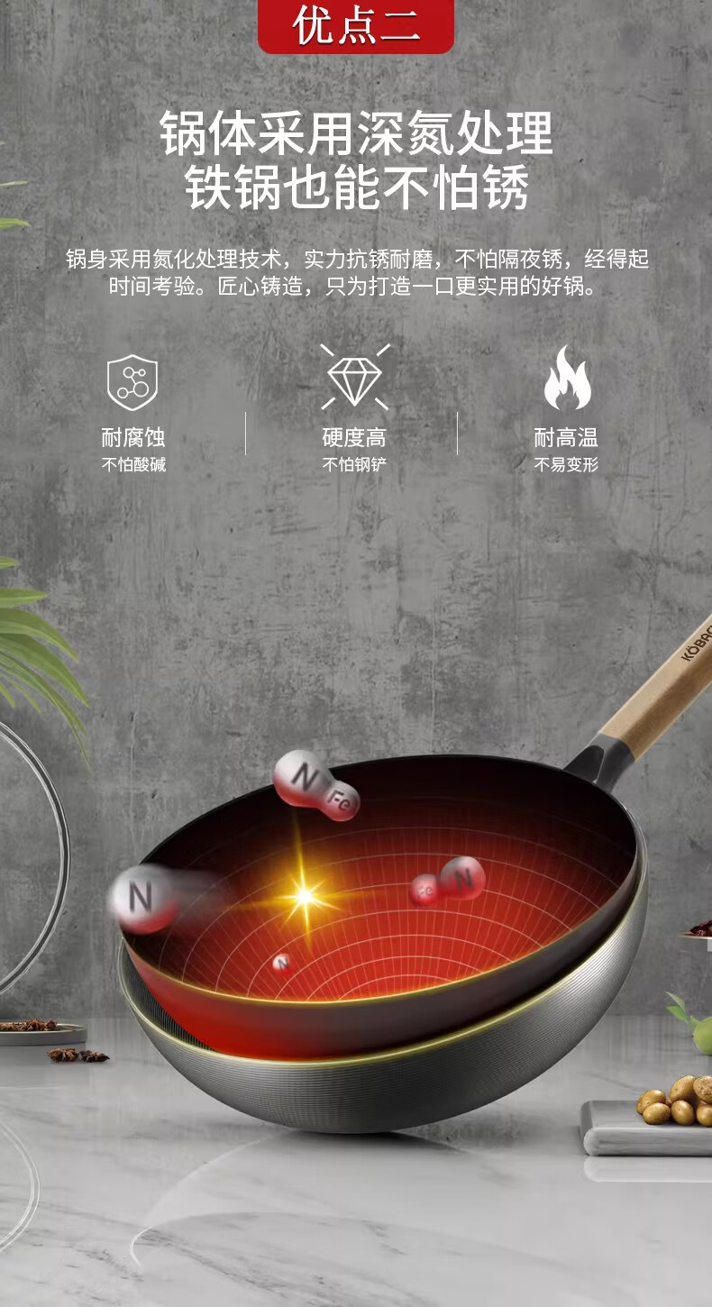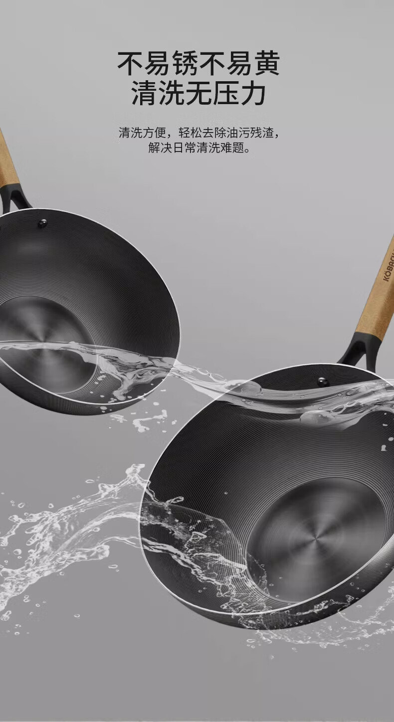康巴赫炒锅含钛不粘锅精铁无涂层家用煎炒一体平底锅电磁炉燃气炉灶通用 【100%精铁】适合3-5人 32cm 【三次开锅发货|不粘不锈|好养锅】