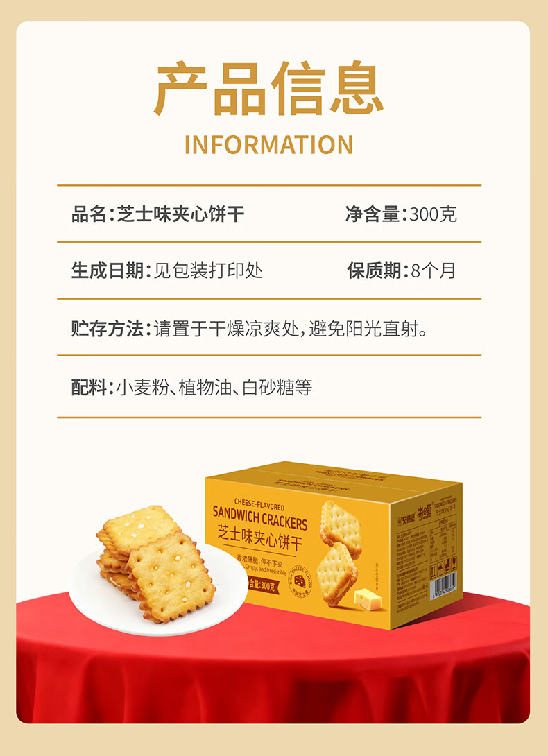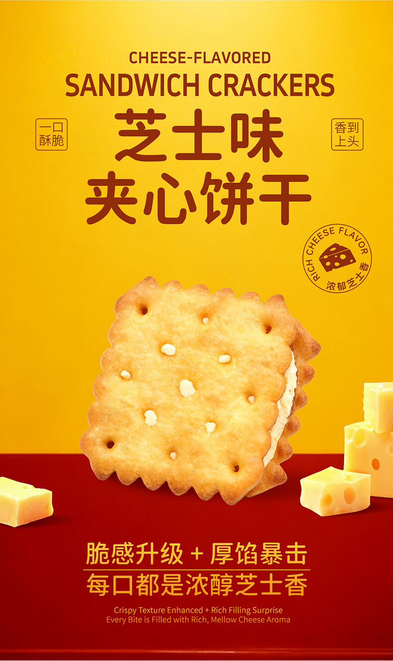 每日赞芝士味夹心饼干咸香酥脆零食独立小包装办公室休闲食品整盒装300g 芝士味夹心饼干 300g*2盒 (约54包)