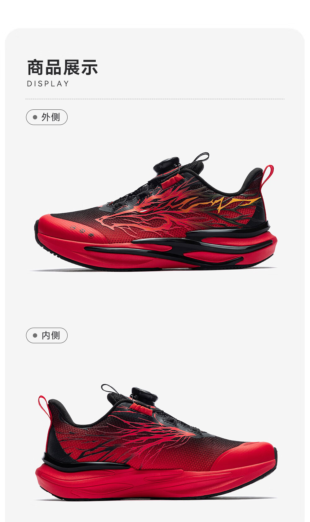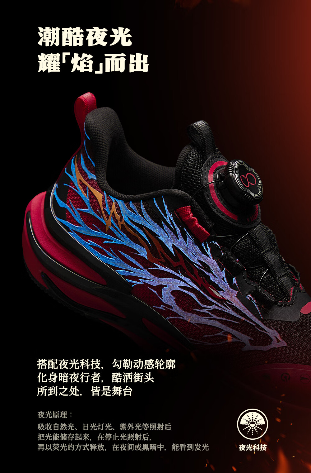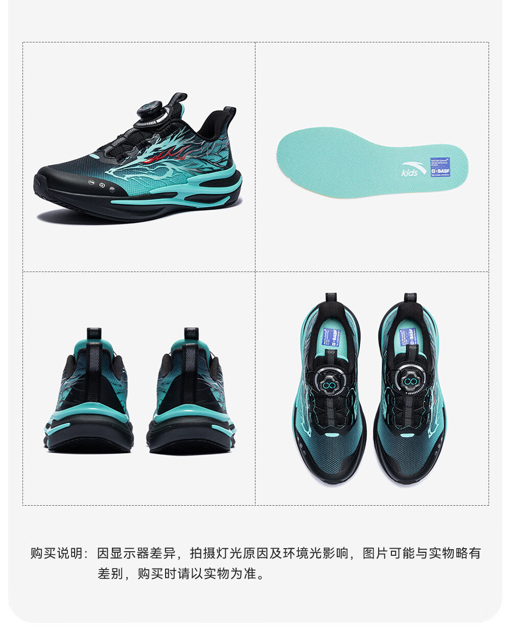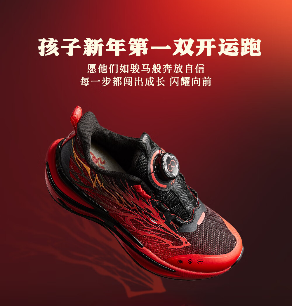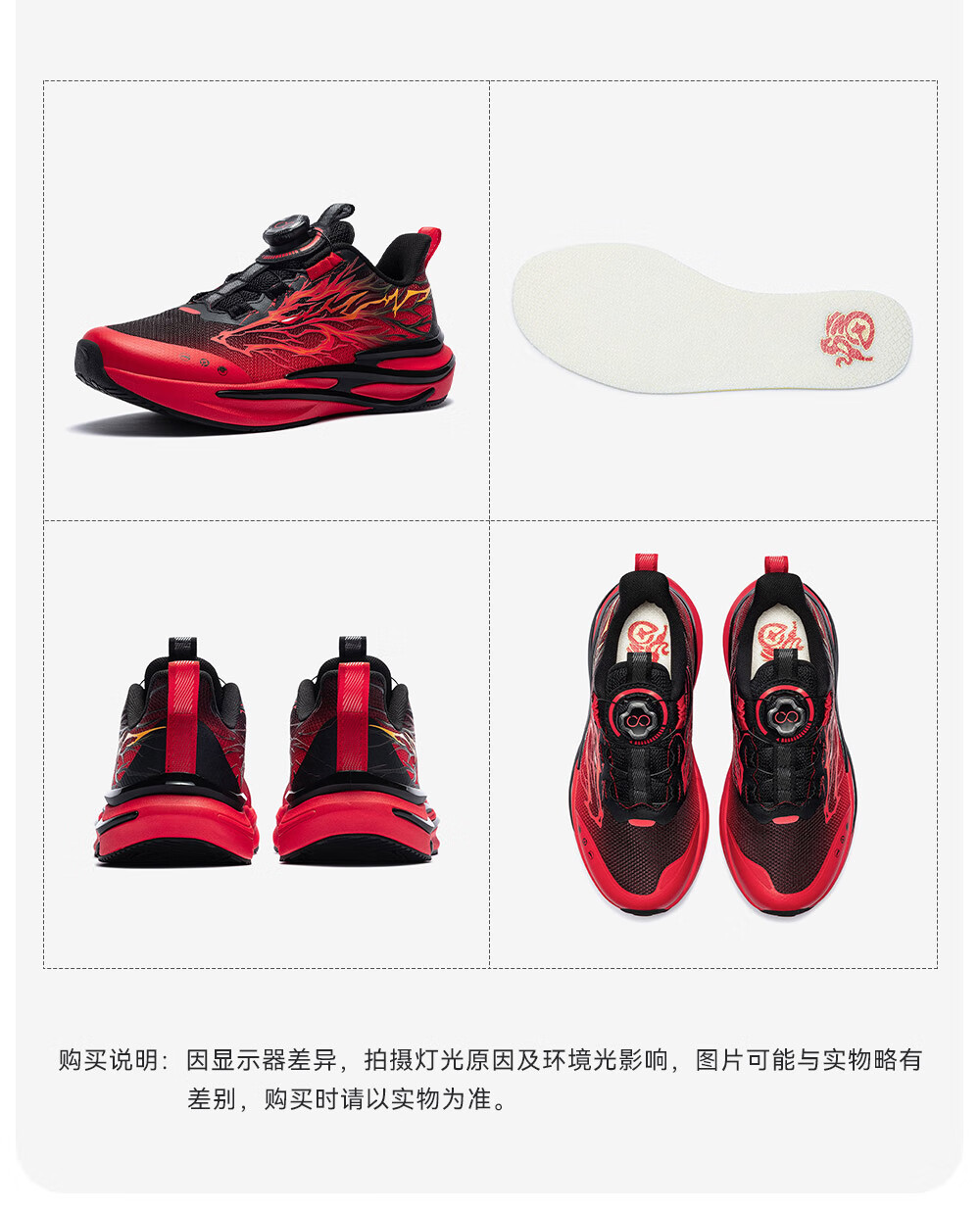 安踏(ANTA)儿童运动鞋男女大童赤焰6跑步鞋26春季新年款旋钮扣潮酷夜光跑鞋 【男密网夜光版】黑/热力红-8 35 鞋内长22cm