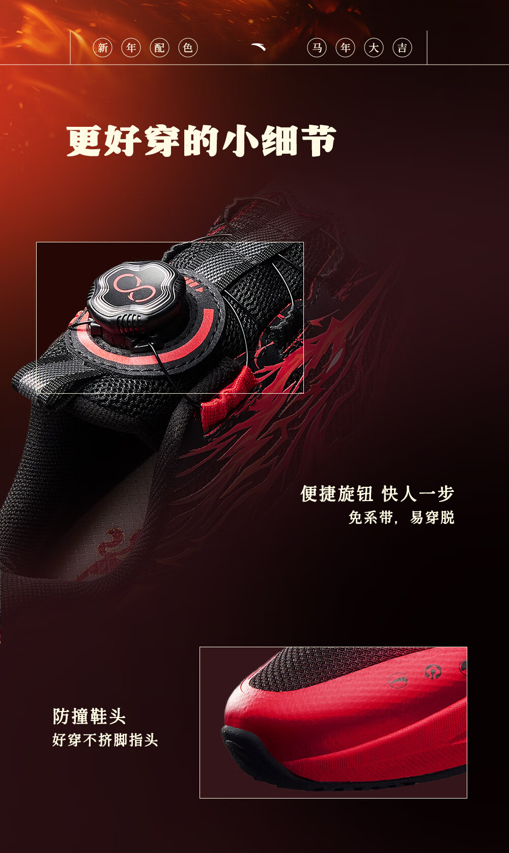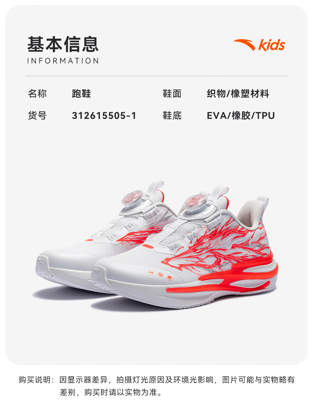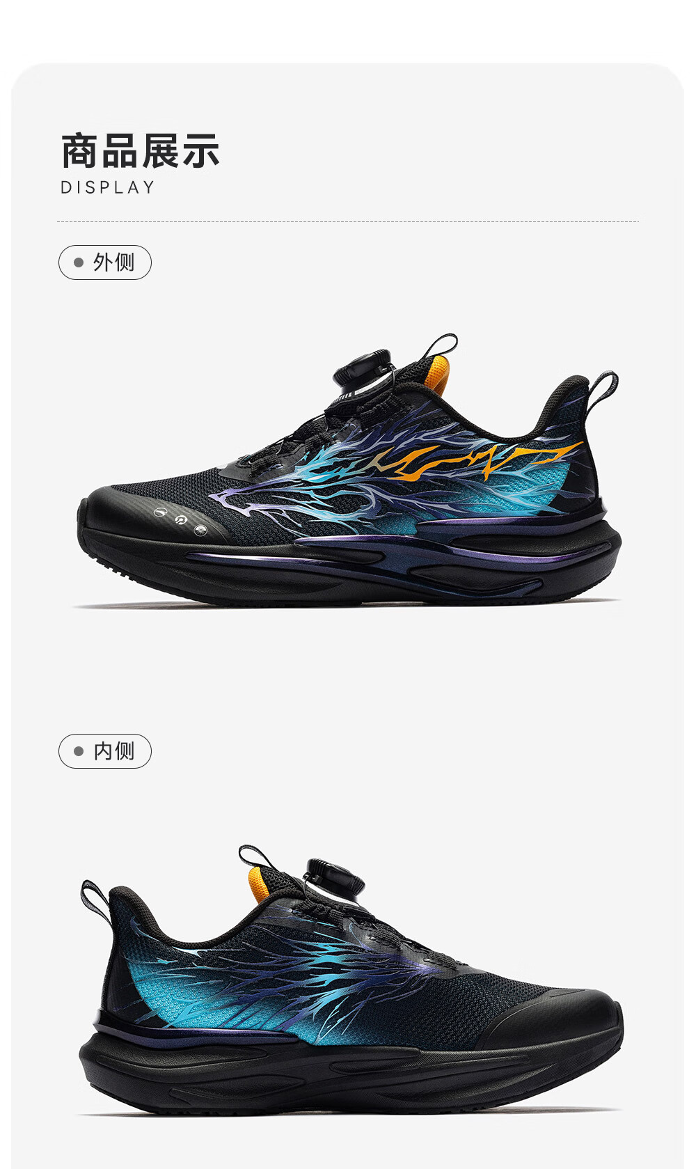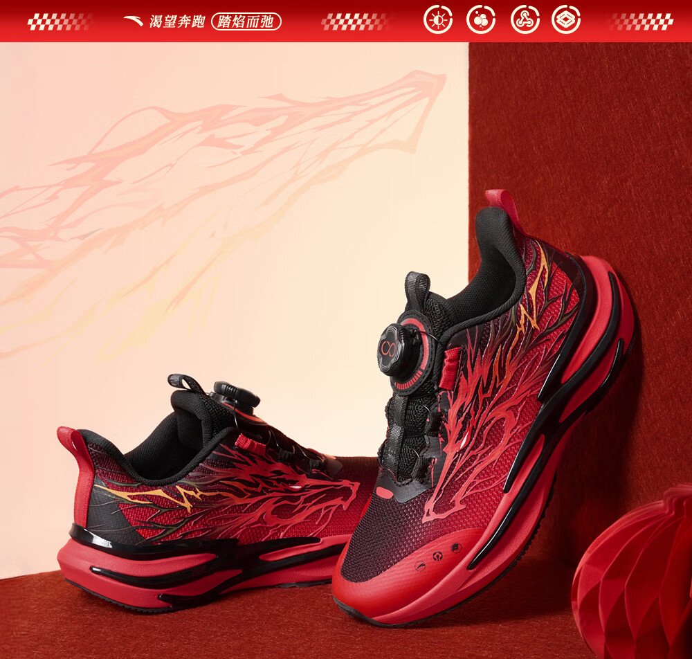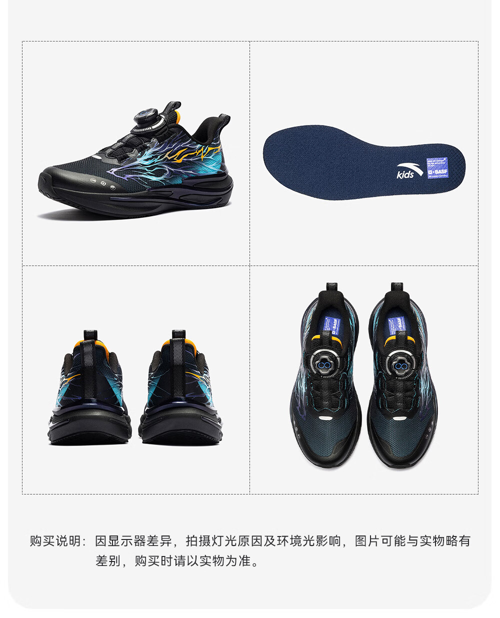 安踏(ANTA)儿童运动鞋男女大童赤焰6跑步鞋26春季新年款旋钮扣潮酷夜光跑鞋 【男密网夜光版】黑/热力红-8 35 鞋内长22cm