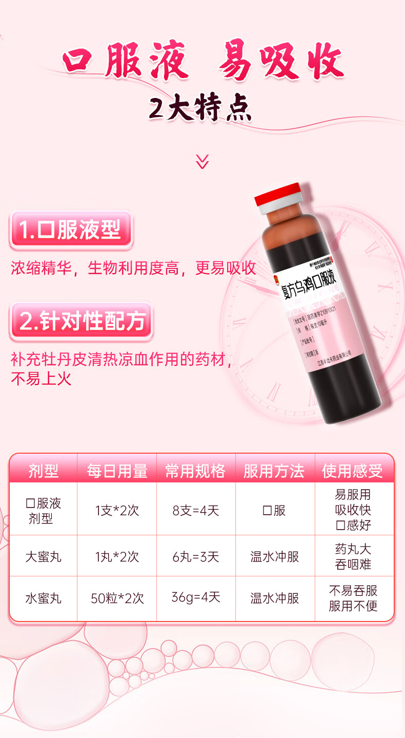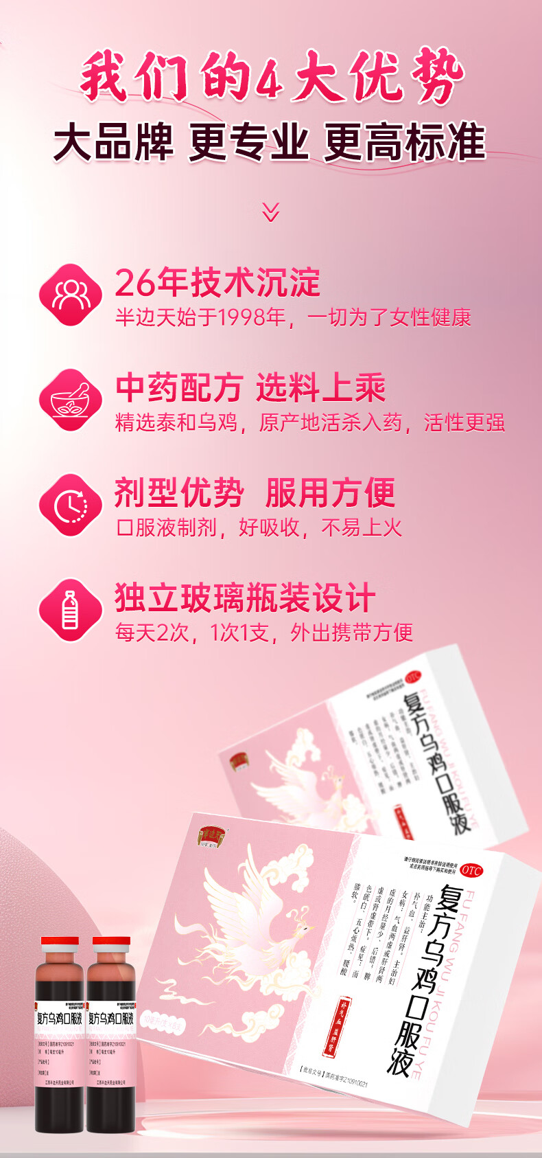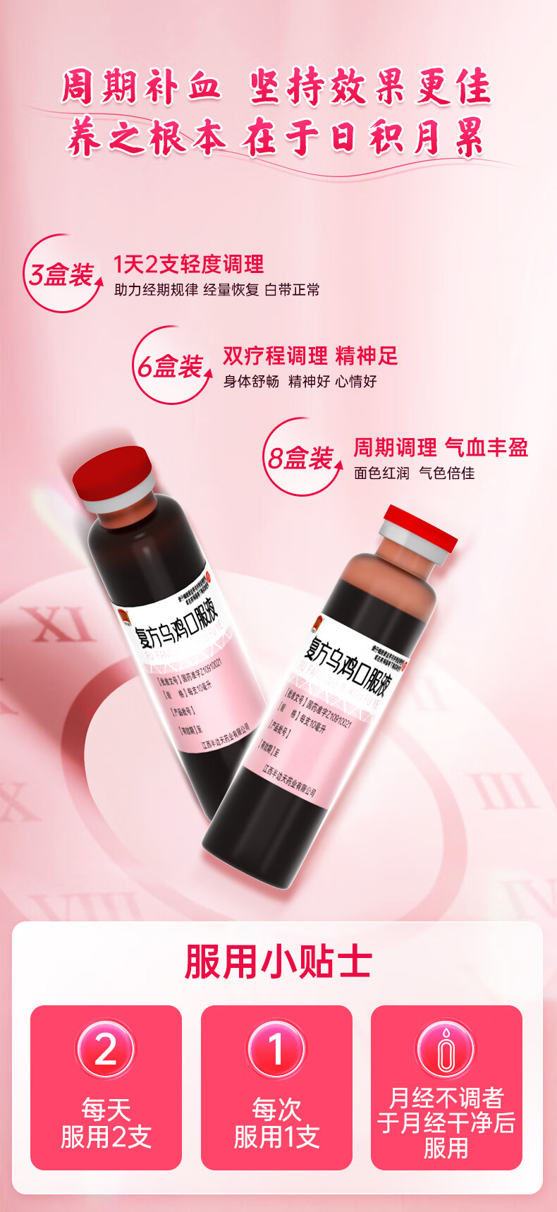 半边天 复方乌鸡口服液 10ml*8支 正品补气血益肝肾月经不调月经量少调经白凤丸气血不足脾虚肾虚 3盒疗程装【气色好姨妈顺,女性月经不调60%优选】