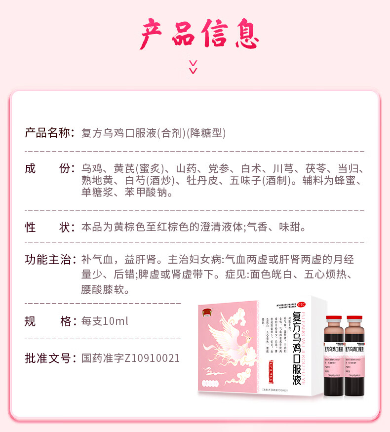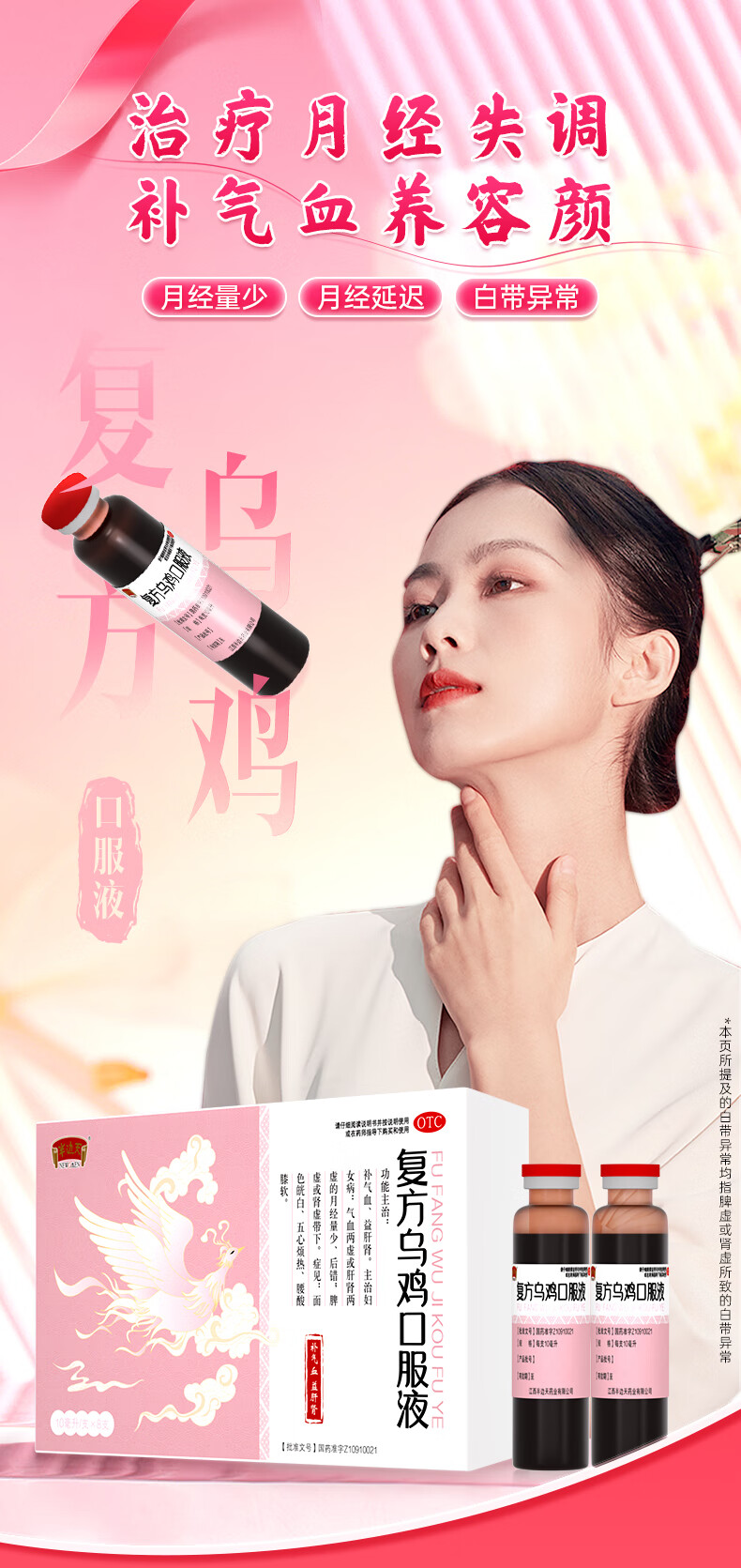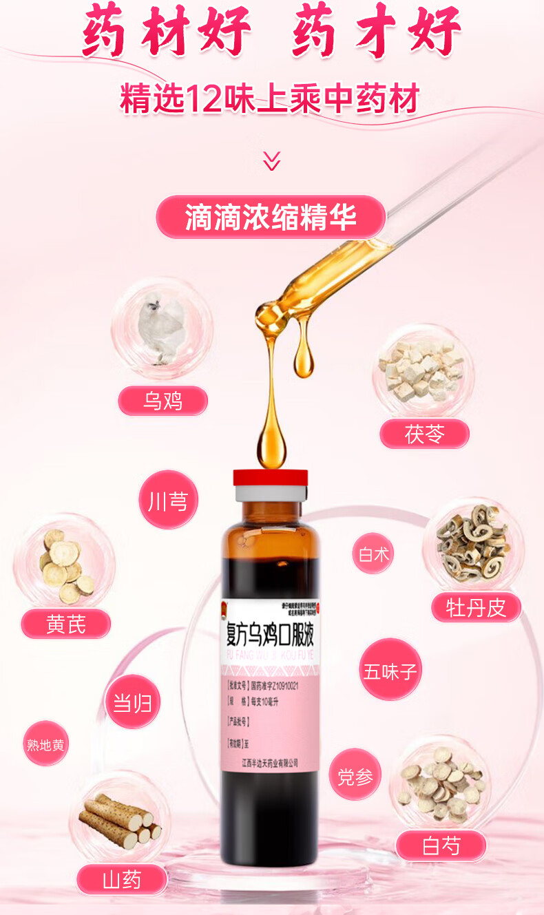 半边天 复方乌鸡口服液 10ml*8支 正品补气血益肝肾月经不调月经量少调经白凤丸气血不足脾虚肾虚 3盒疗程装【气色好姨妈顺,女性月经不调60%优选】