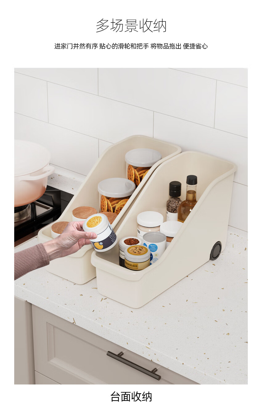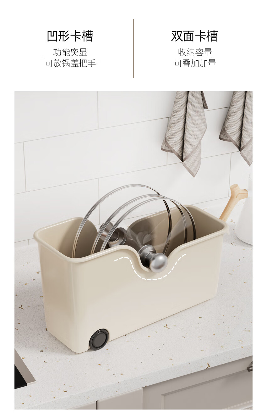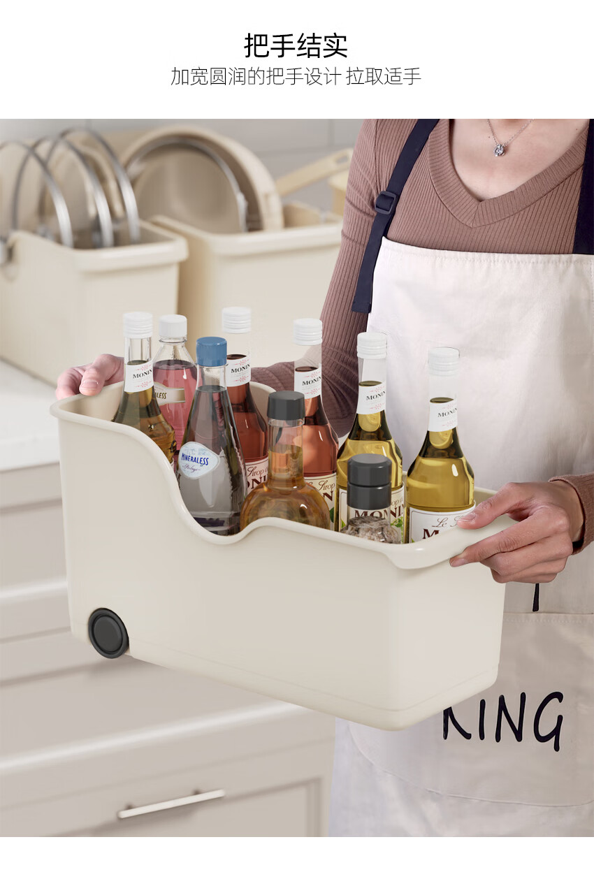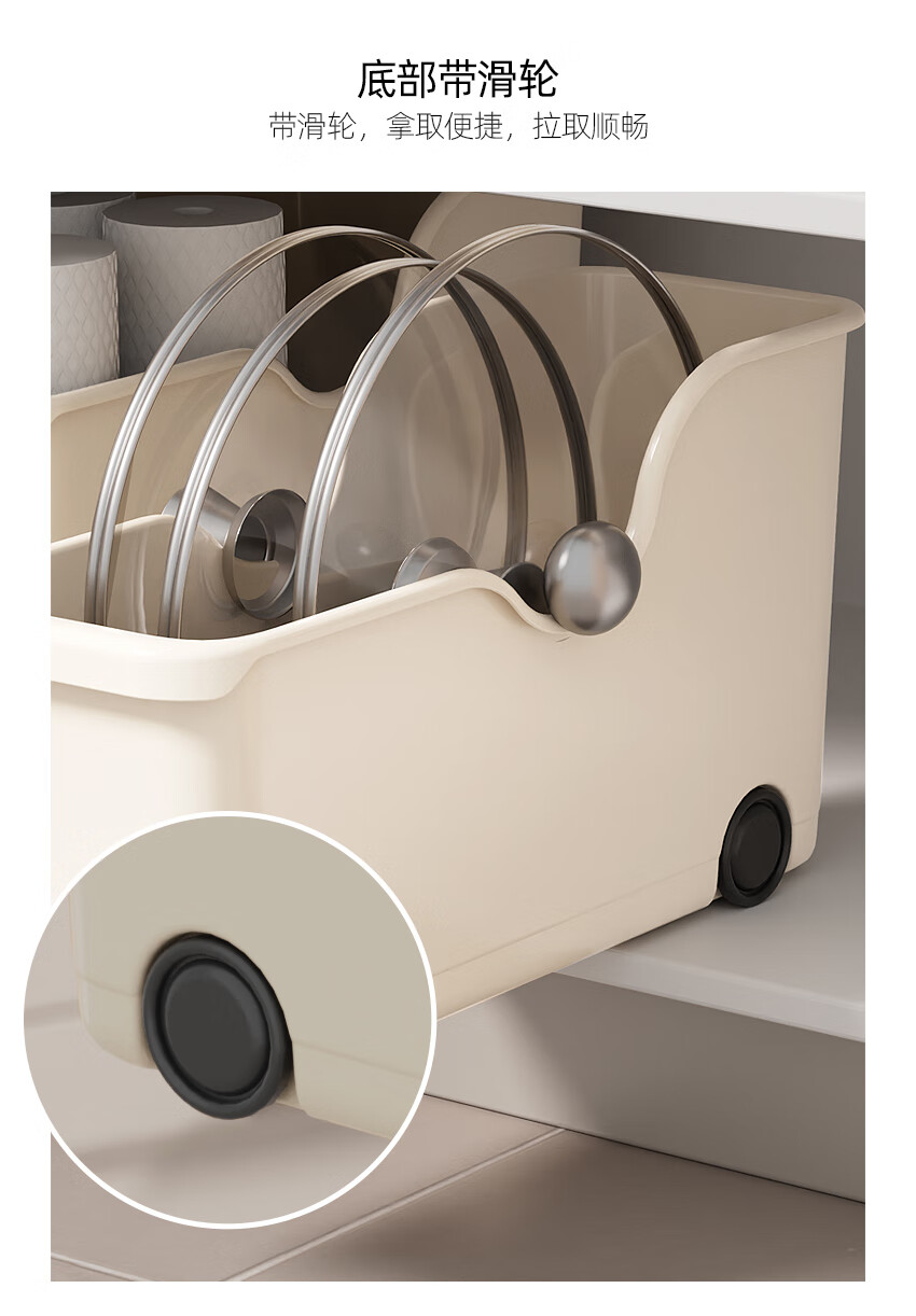 京东物流 厨房收纳整理盒锅盖调料带滑轮下水槽橱柜多功能收纳架 【升级款】特大号1个装 40*19*22cm