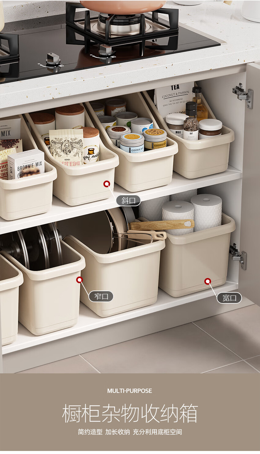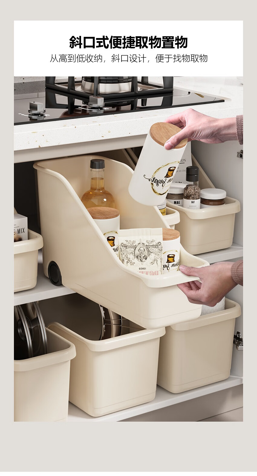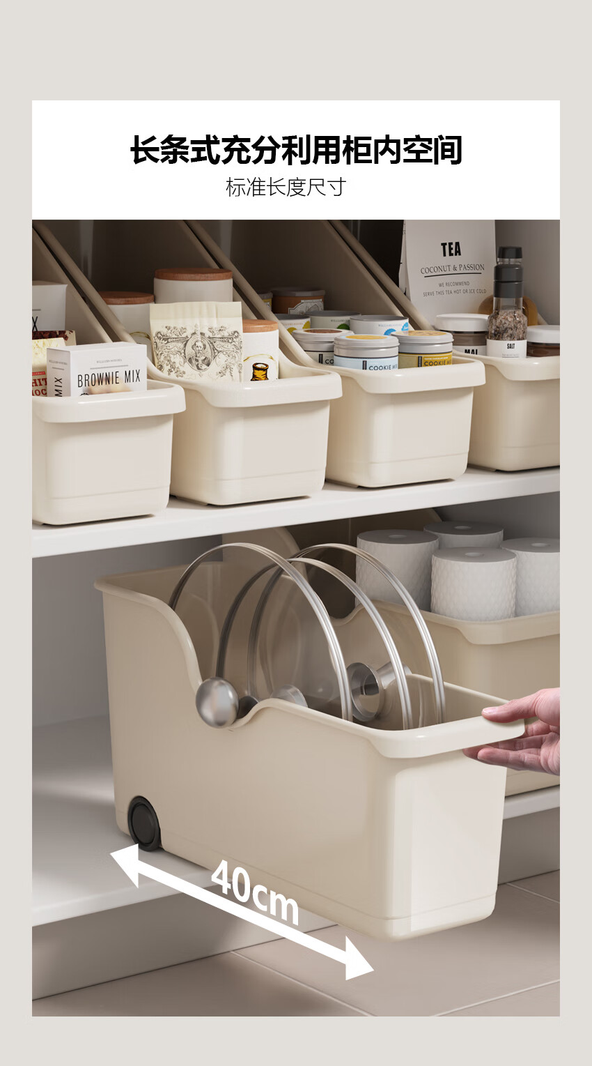 京东物流 厨房收纳整理盒锅盖调料带滑轮下水槽橱柜多功能收纳架 【升级款】特大号1个装 40*19*22cm