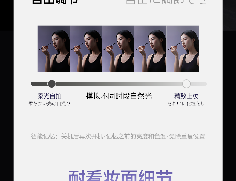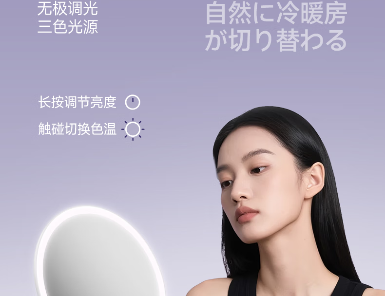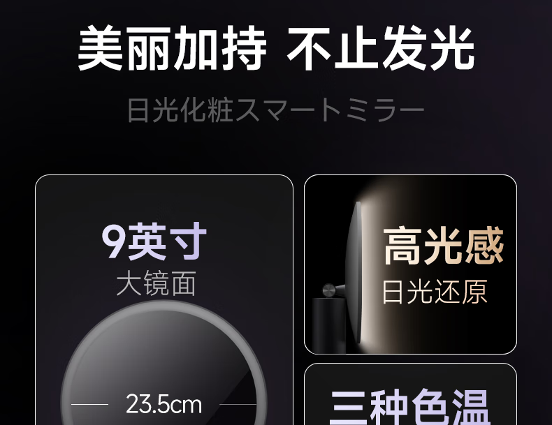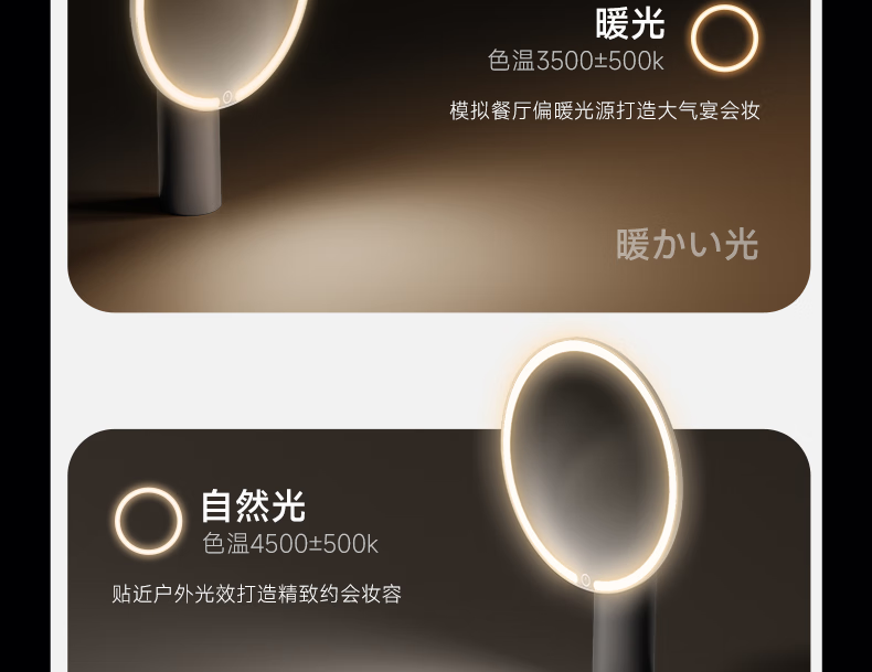MAGITECH化妆镜带灯梳妆镜网红款三色智能补光led高清镜子卧室桌面大尺寸便携 圣诞节礼物情人节送女友礼物